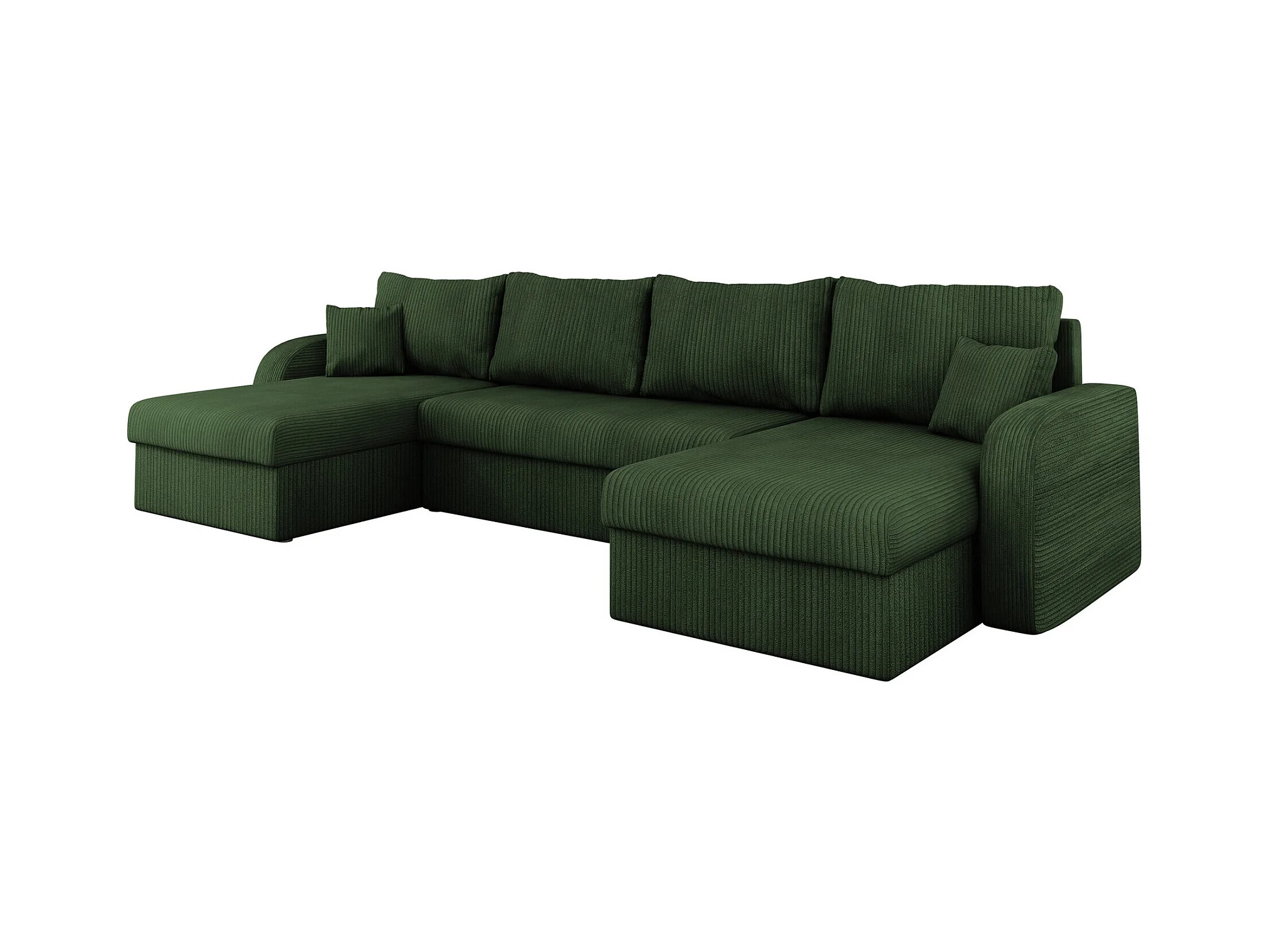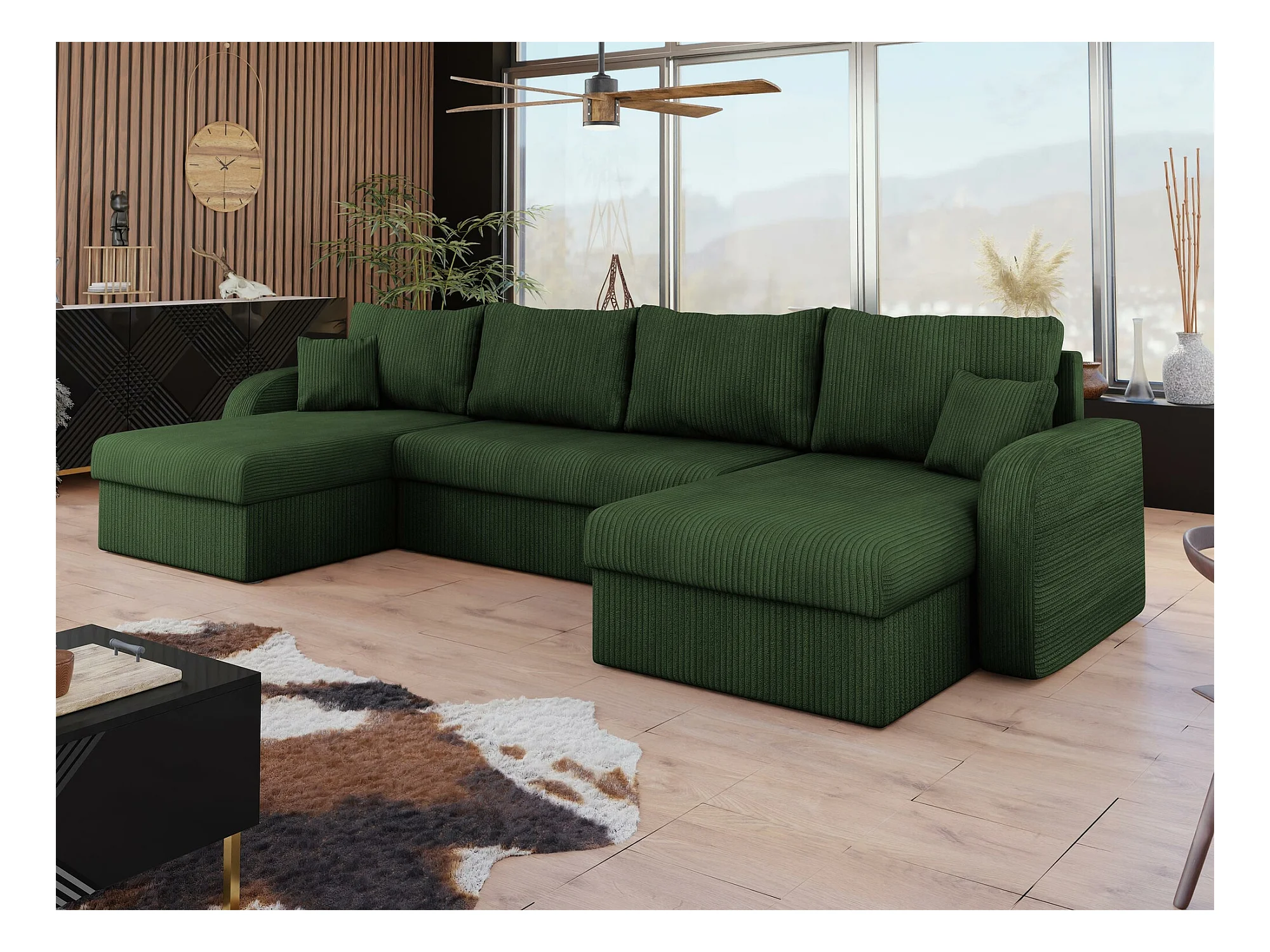 Canapé d'angle Comfivo 233, Vert, Fonction de couchage, Boîte de literie, 304x140x80cm