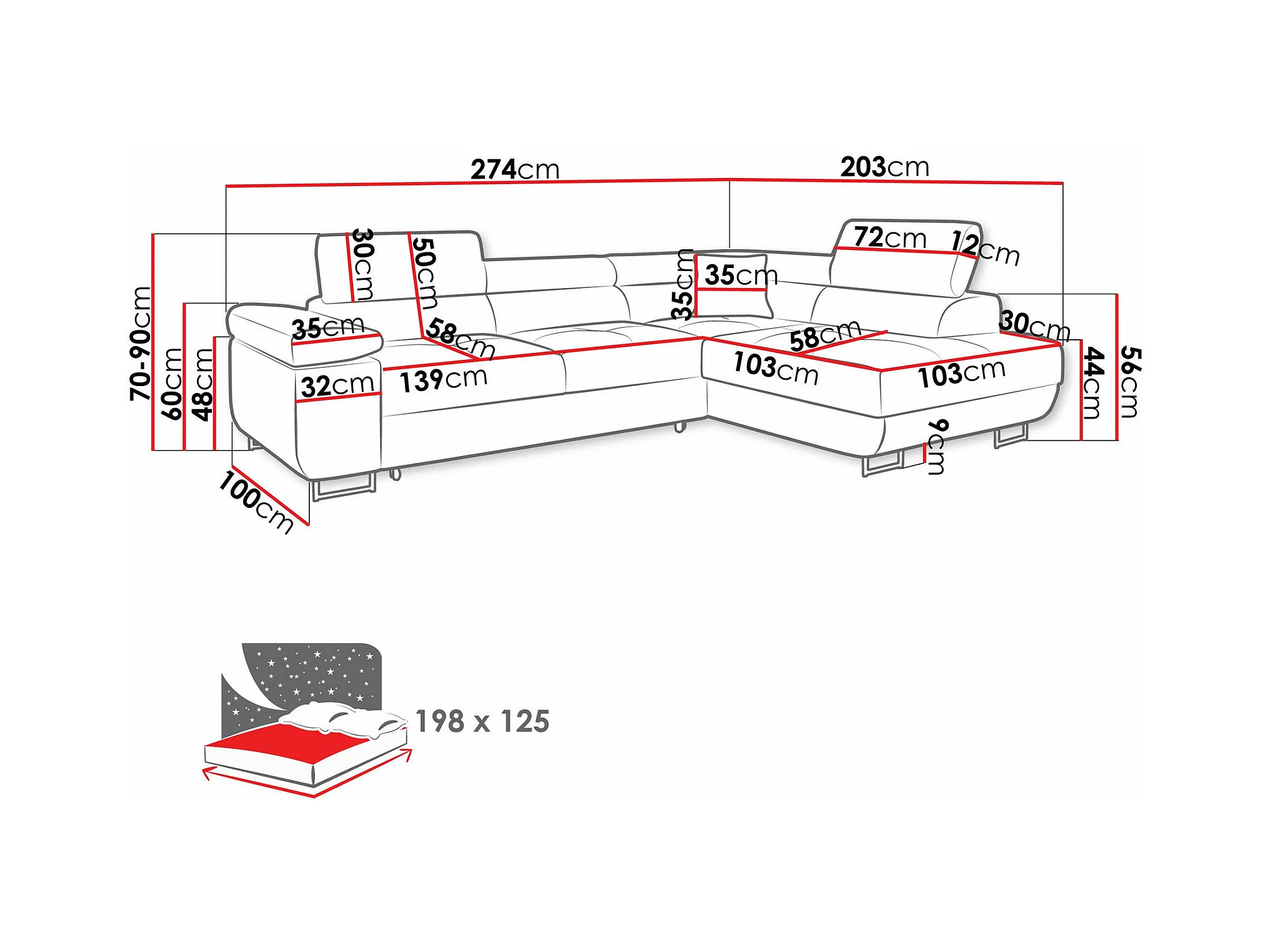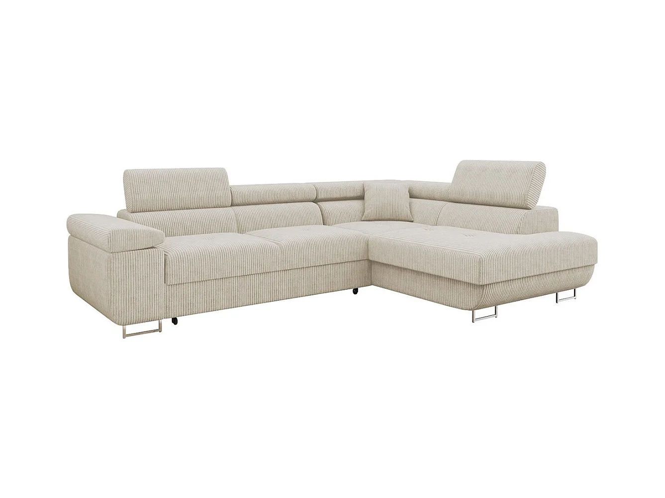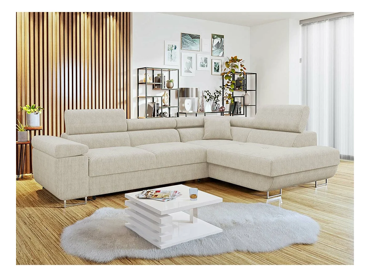 Canapé d'angle Comfivo Eliferu 100, Brun clair, Fonction de couchage, Boîte de literie,
