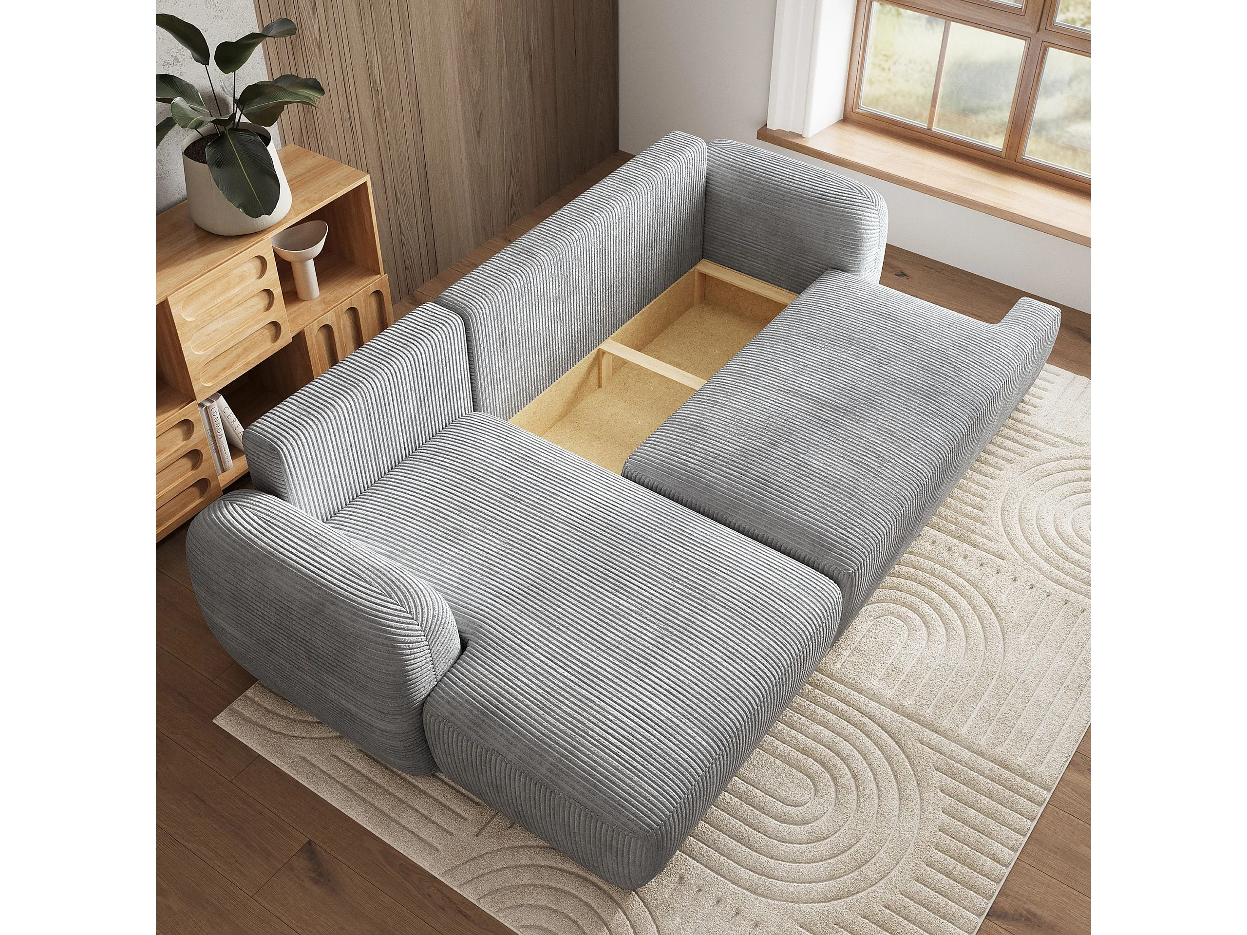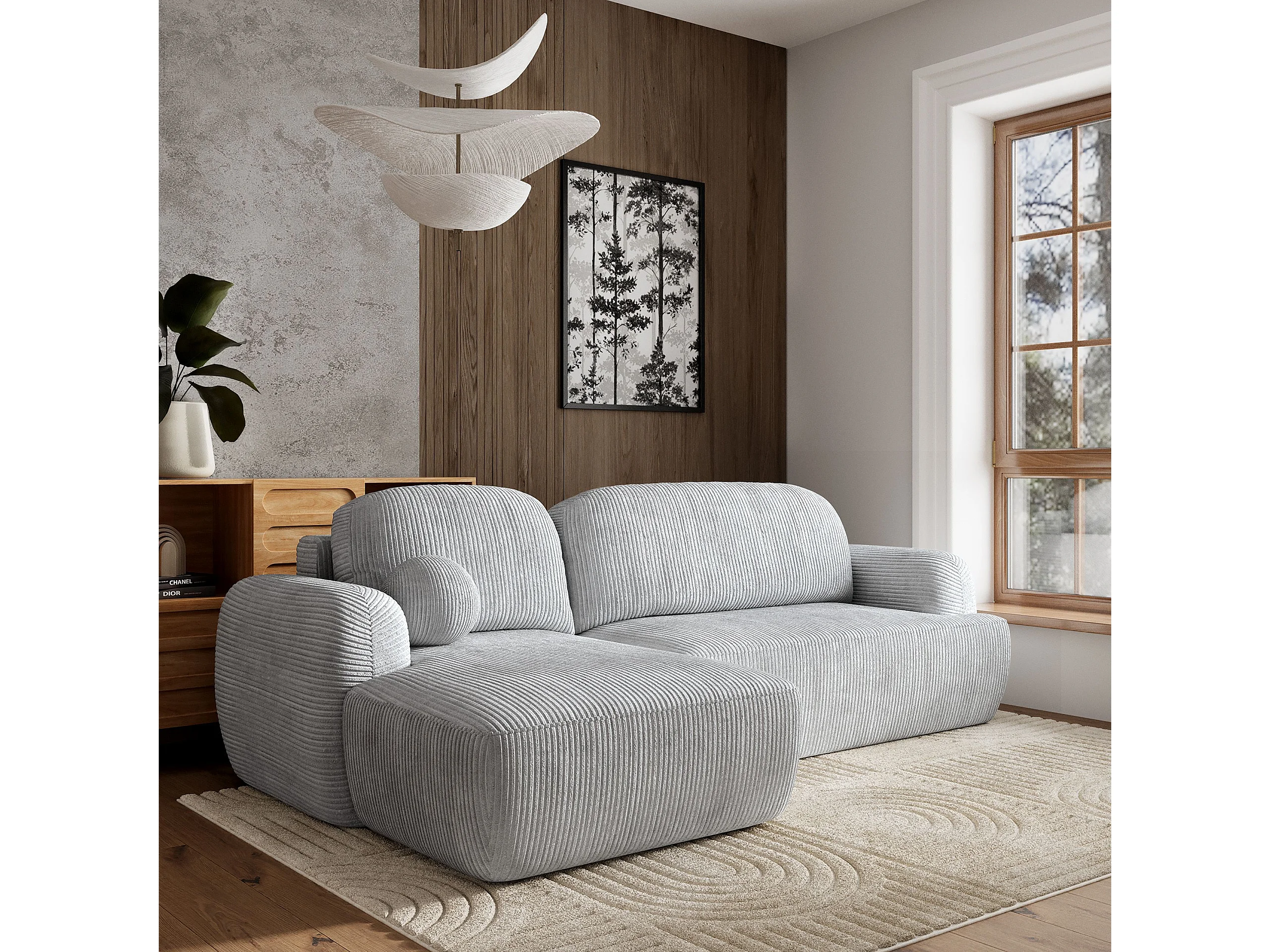 Canapé d'angle MODENZA Gris clair en velours côtelé avec fonction de couchage