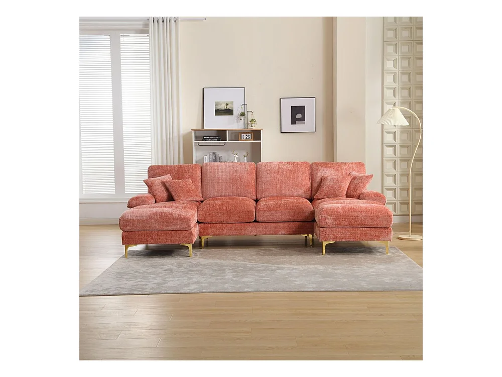 Canapé d'angle moderne en chenille 4 places canapé avec double assise convertible rose