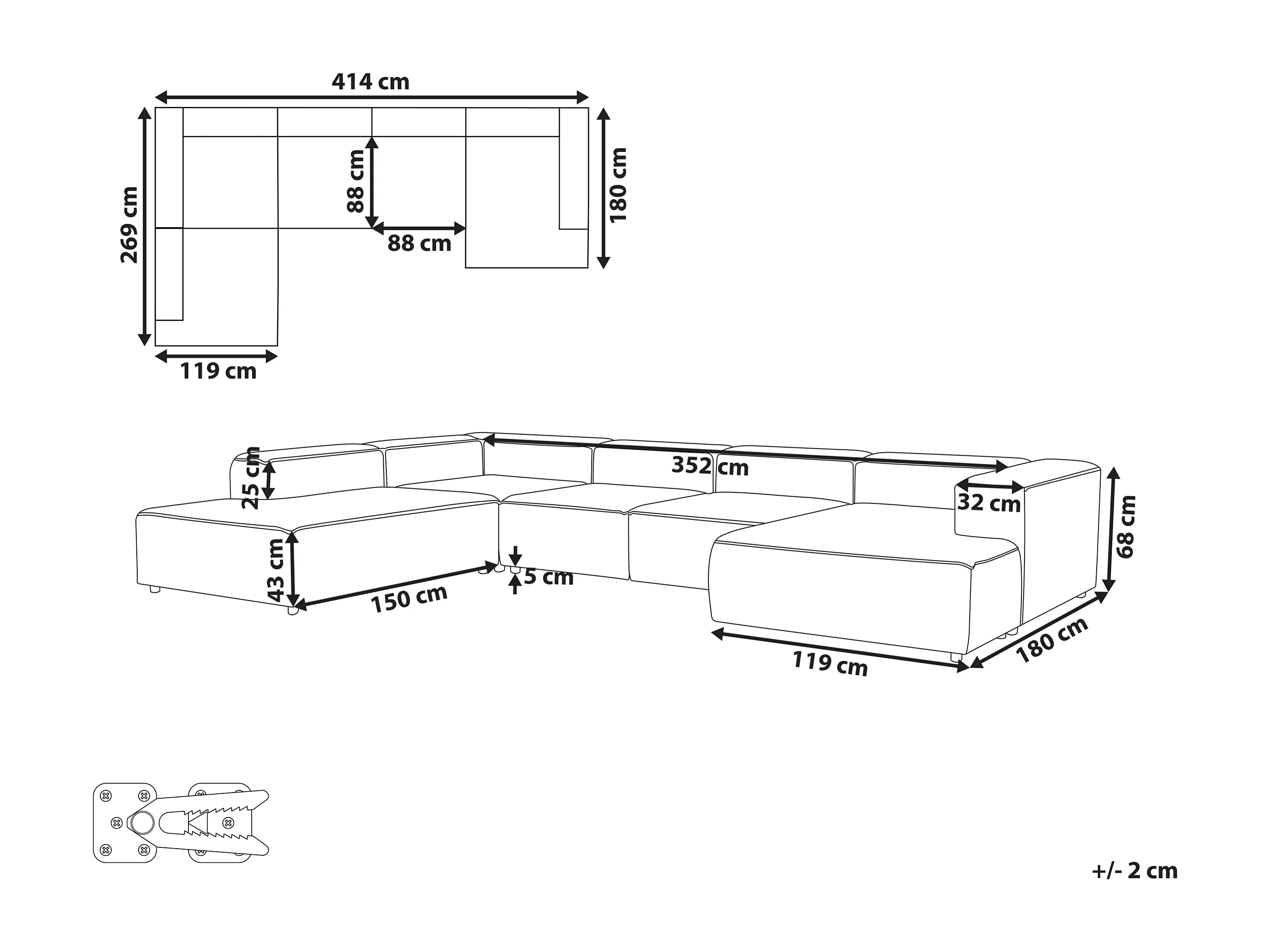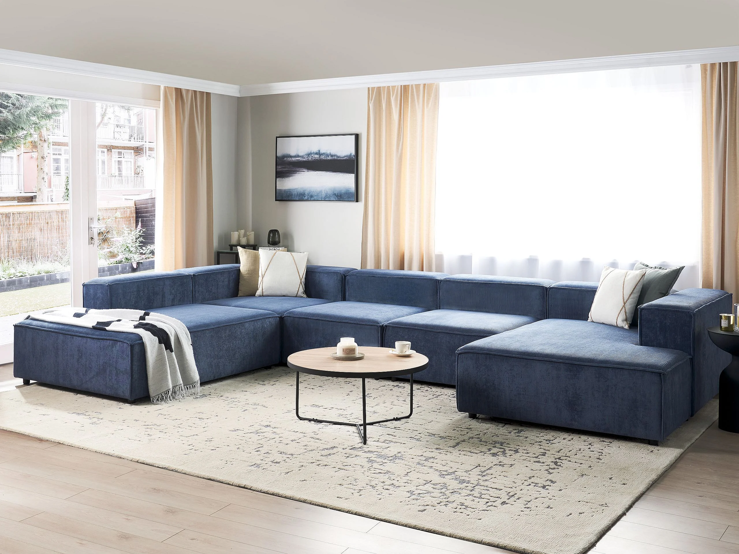 Canapé d'angle modulable 5 places ARDAL Velours côtelé Bleu foncé Côté droit
