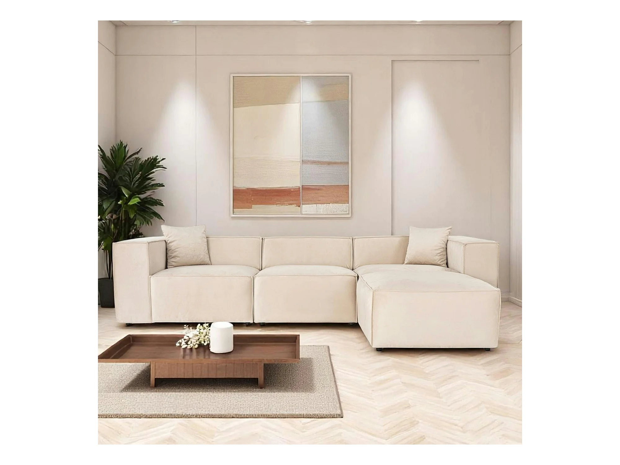 Canapé d'angle modulable beige, tissu lin OSTUNI