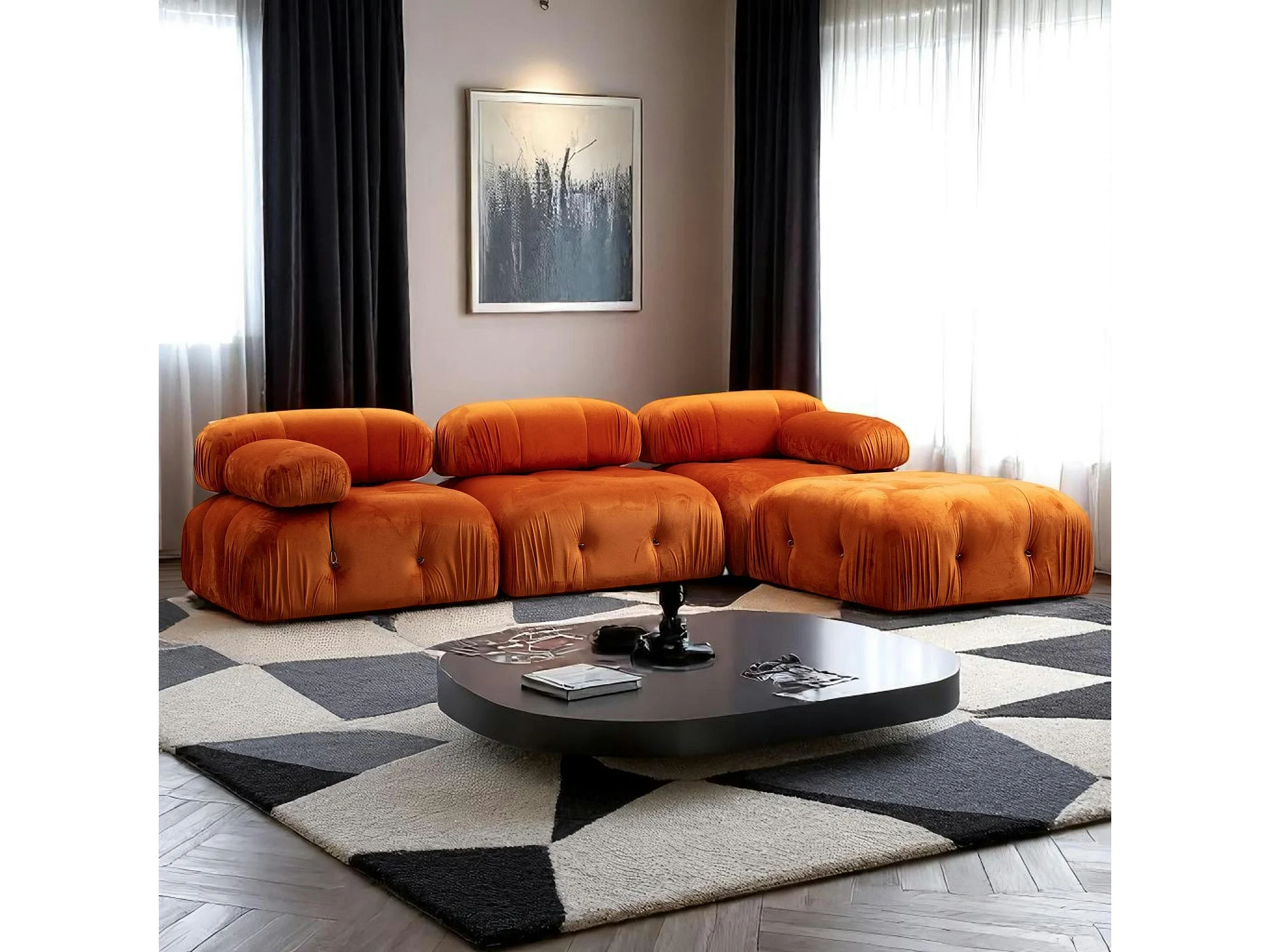 Canapé d'angle modulable orange - tissu velours RONDA