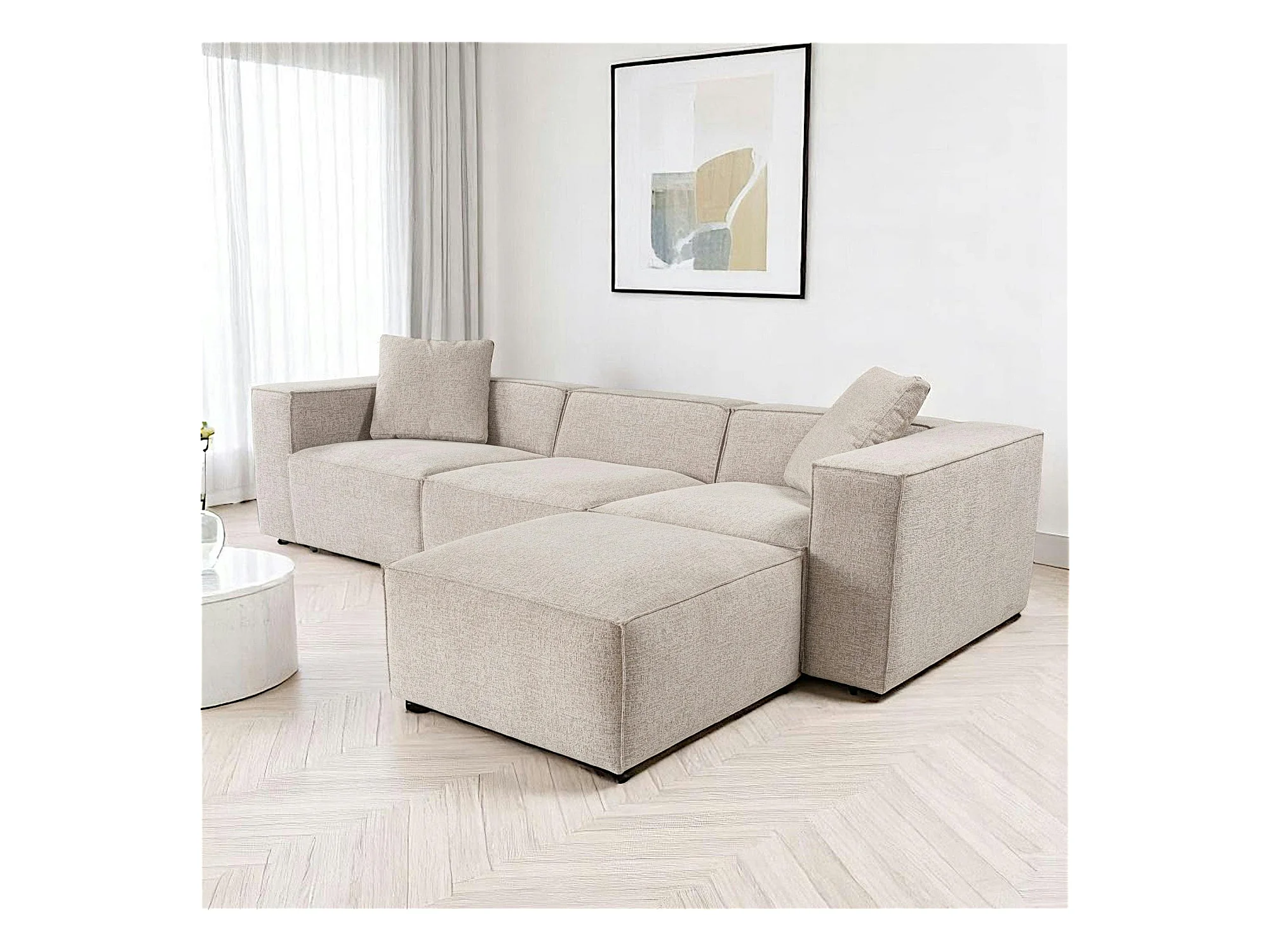 Canapé d'angle modulable taupe - tissu lin OSTUNI