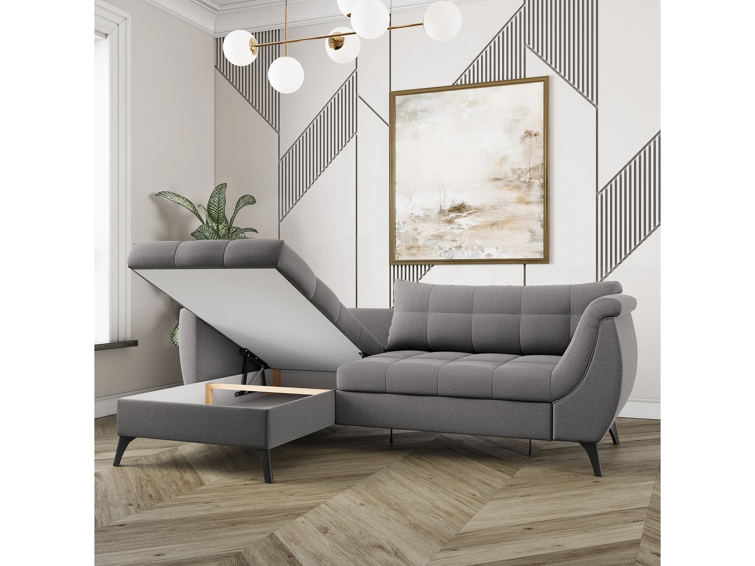 Canapé d'angle MOLLIS Bleu en tissu texturé avec fonction de couchage