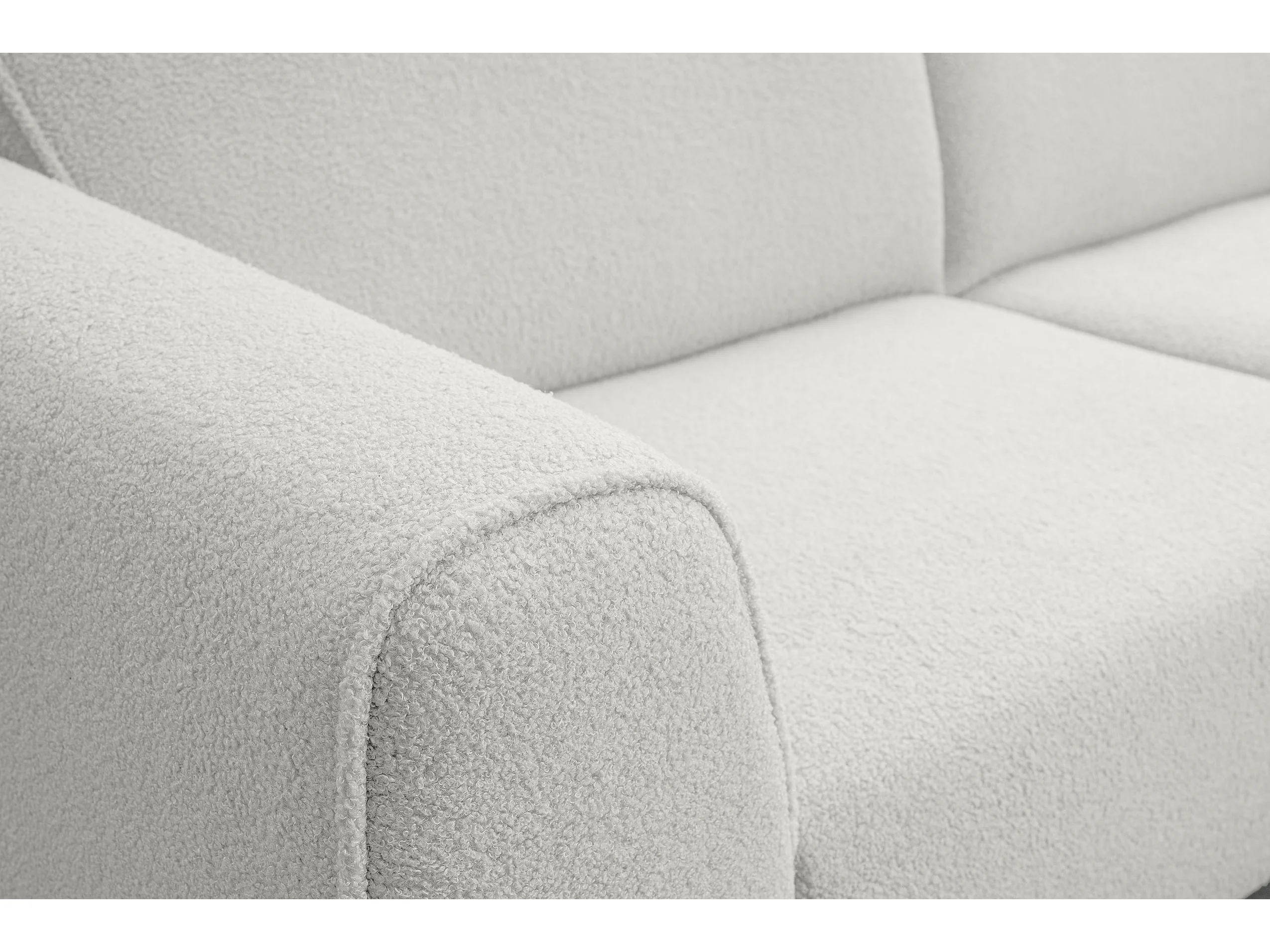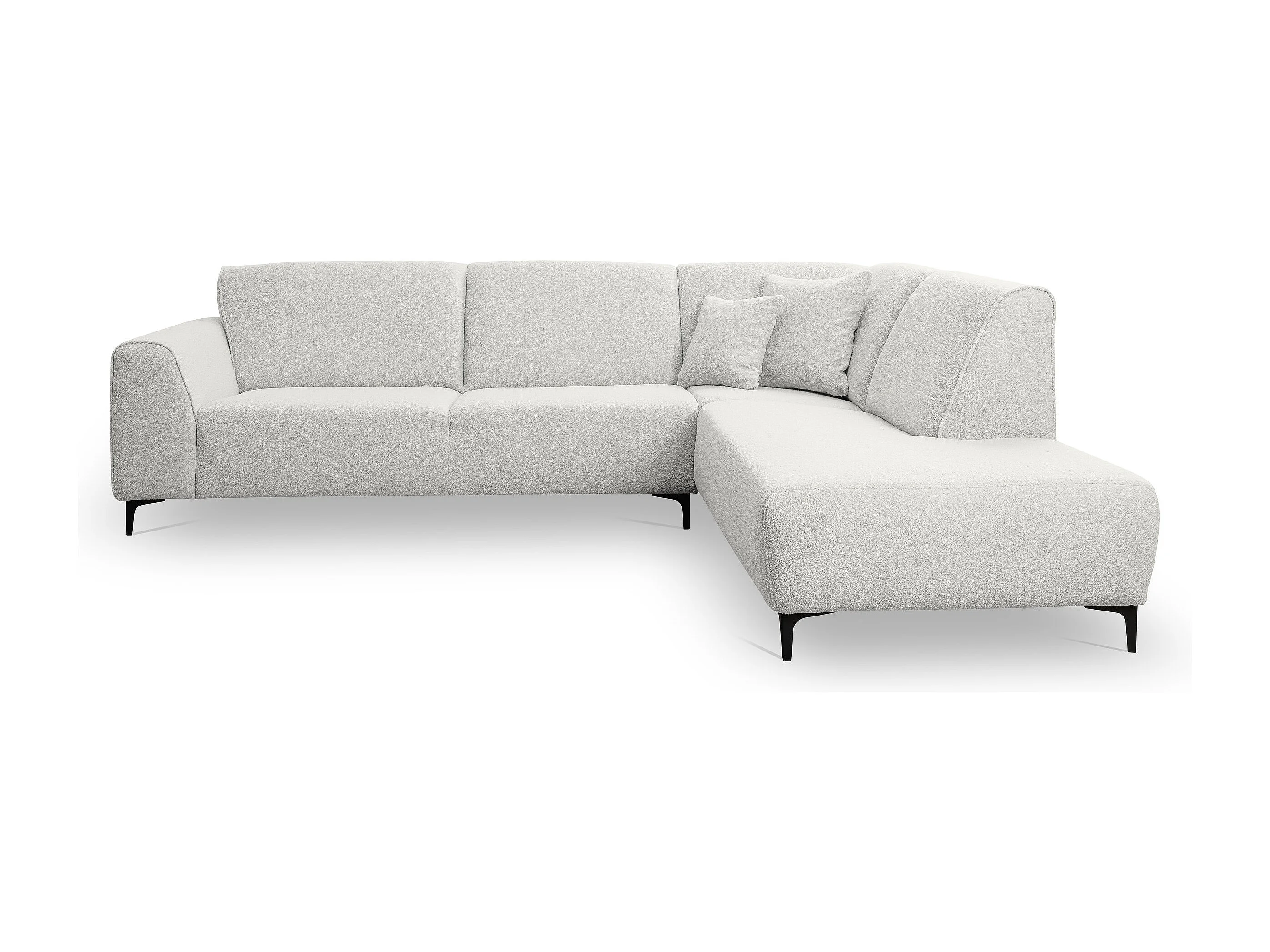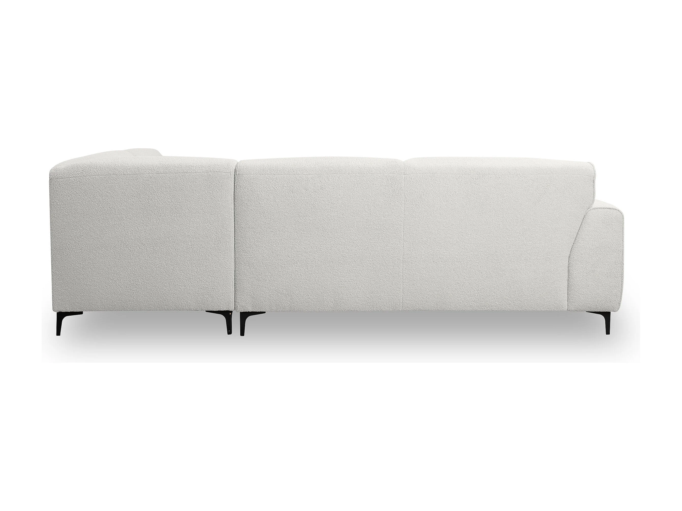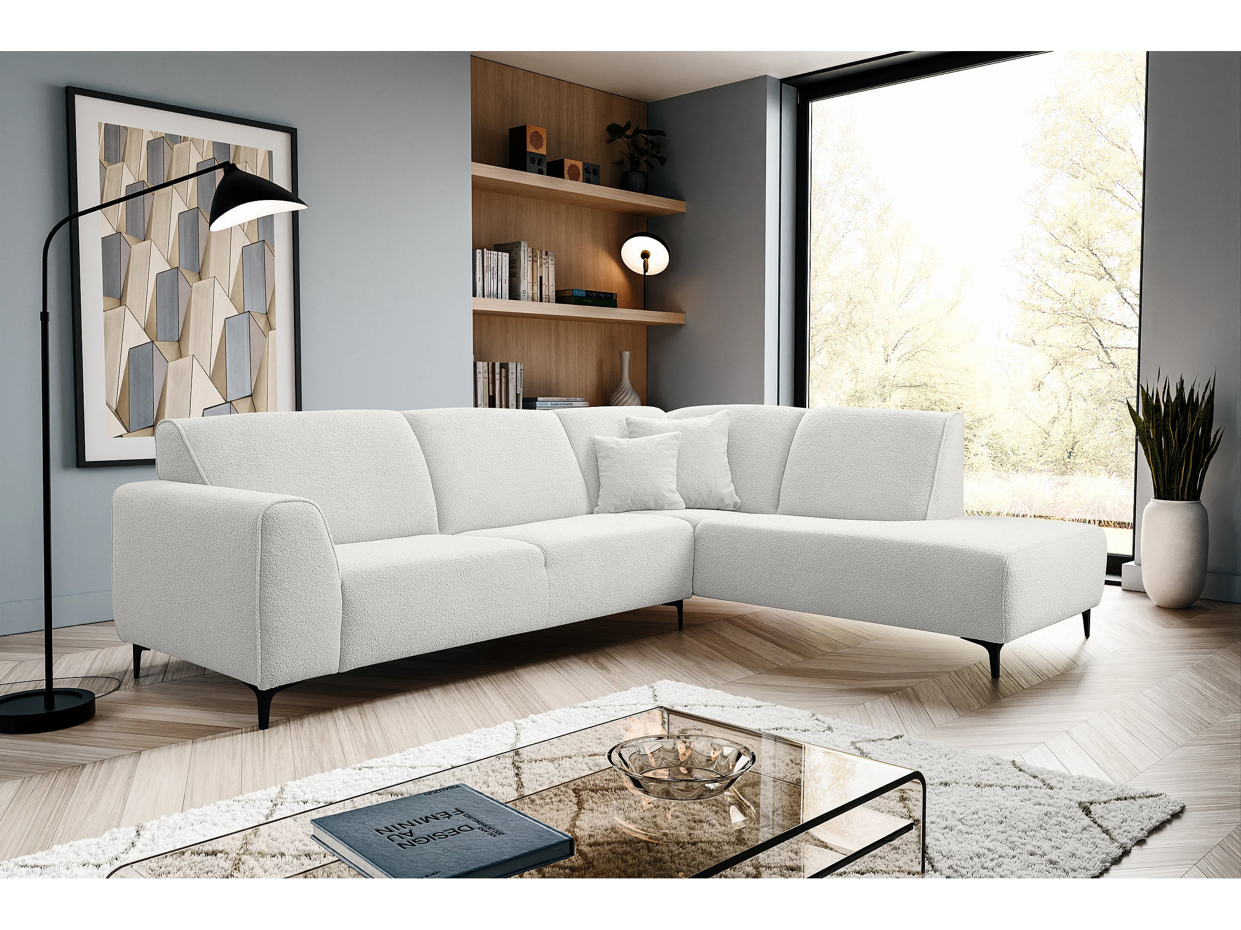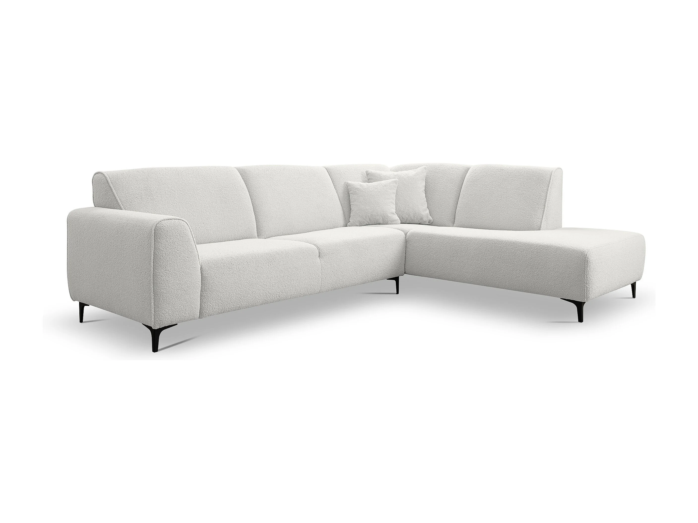 Canapé d'angle Mula, couleur Coach : blanc, tissu bouclé, pouf à droite
