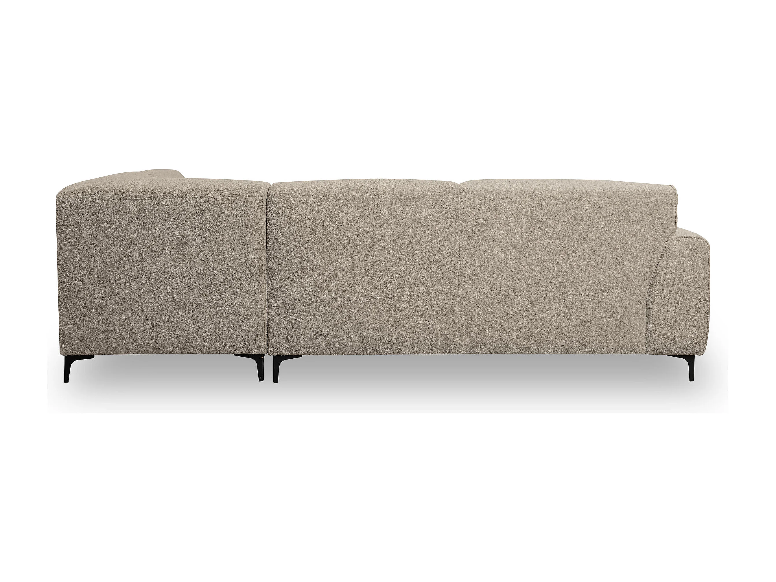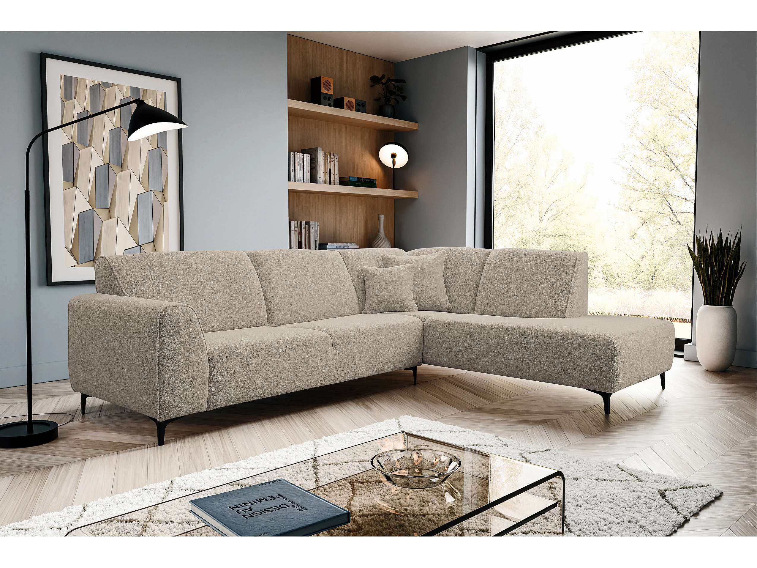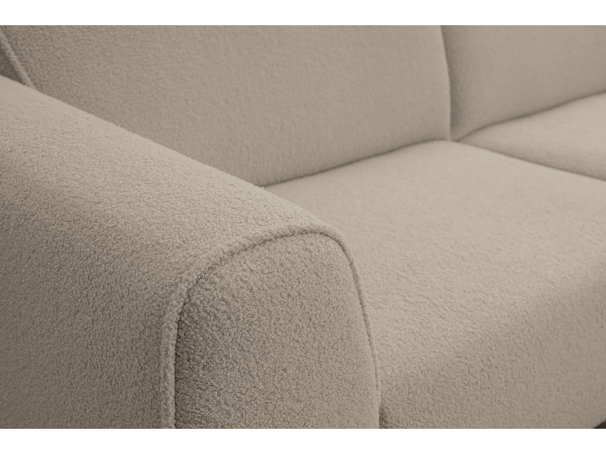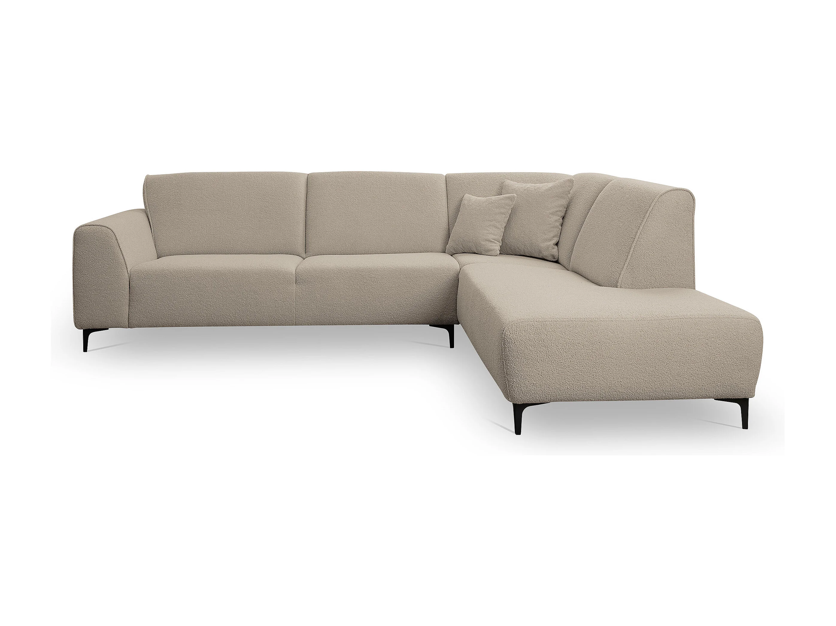 Canapé d'angle Mula, couleur du canapé : beige, tissu bouclé, pouf à droite