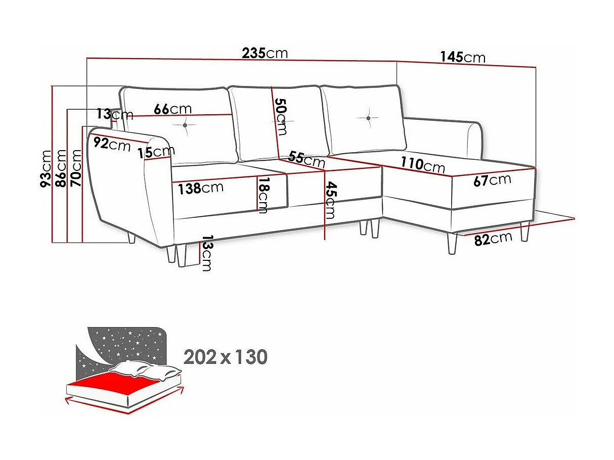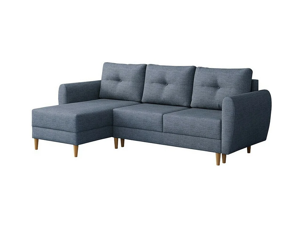 Canapé d'angle Muncie 105, Bleu, Fonction de couchage, Boîte de literie, 235x145x93cm