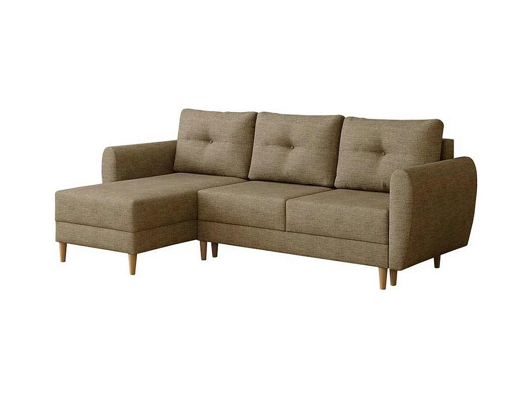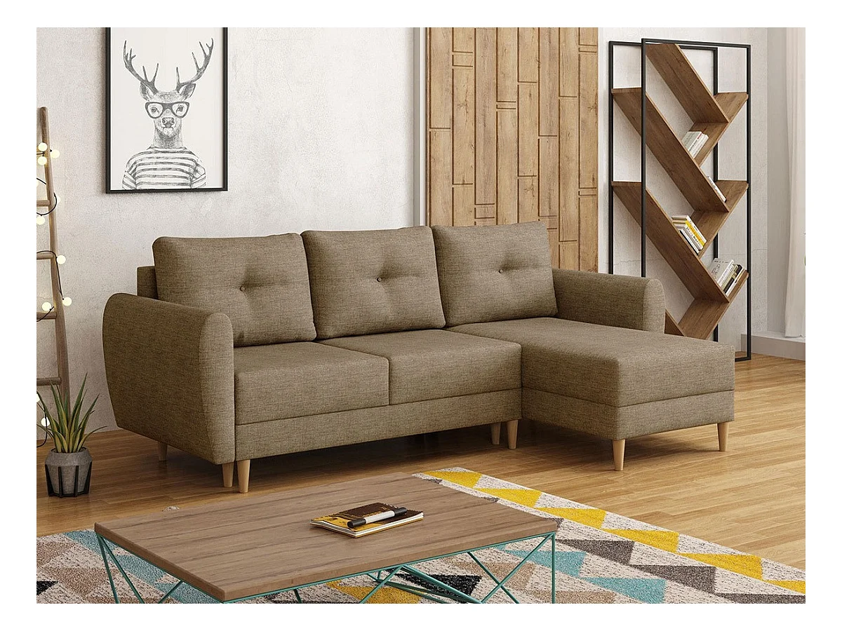 Canapé d'angle Muncie 105, Brun clair, Fonction de couchage, Boîte de literie, 235x145cm