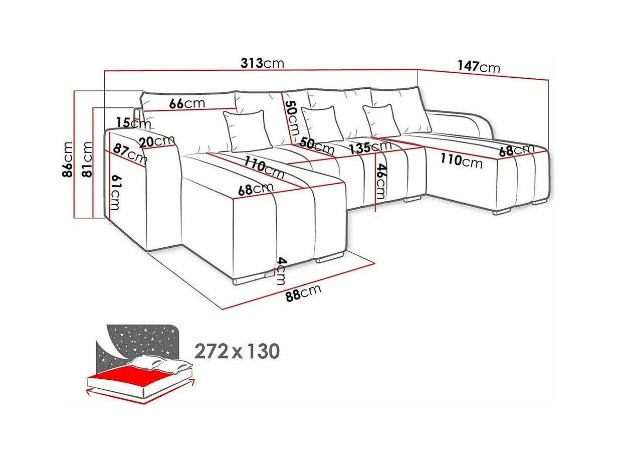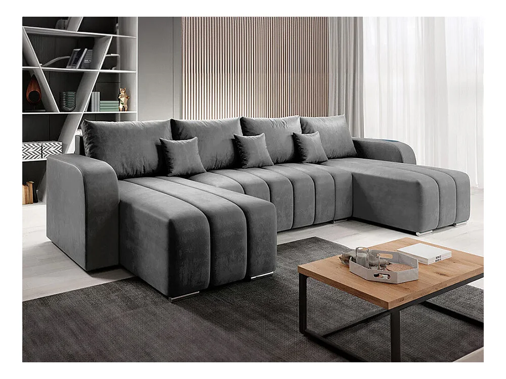 Canapé d'angle Muncie 108, Gris, Fonction de couchage, Boîte de literie, 313x147x86cm