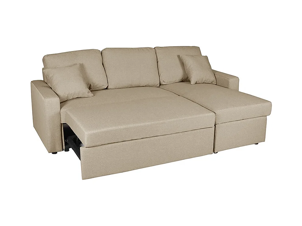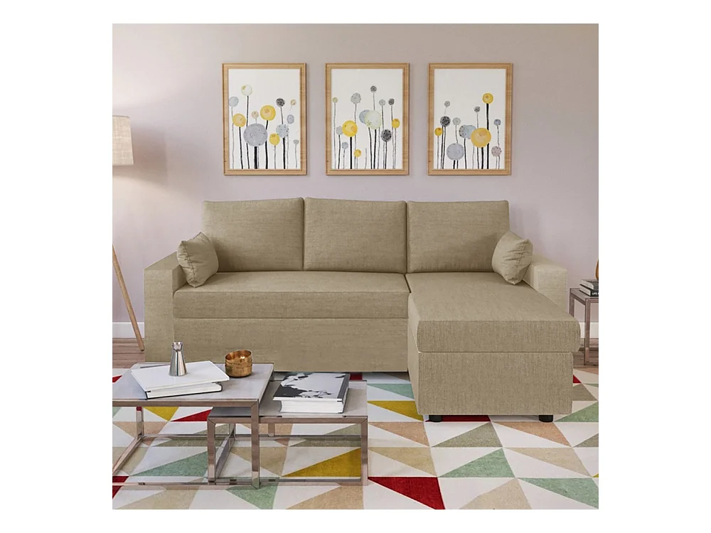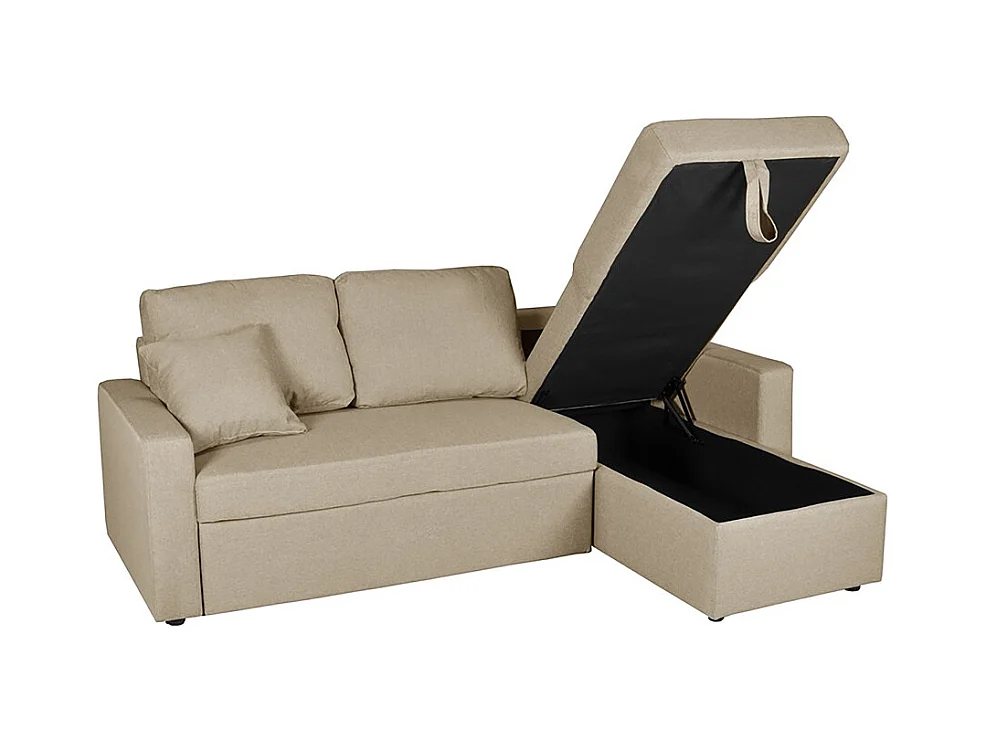 Canapé d'angle ODEON convertible, coffre et réversible / Beige
