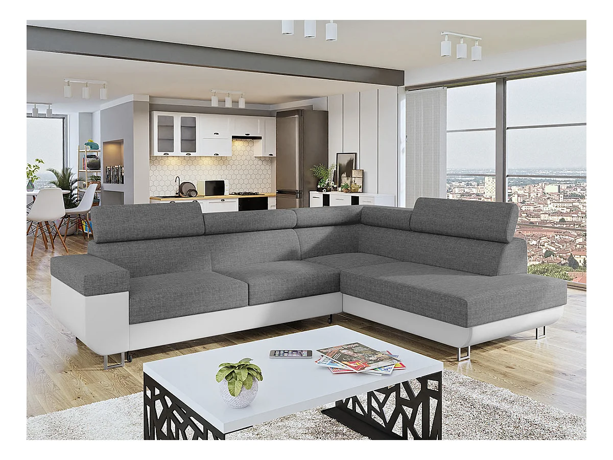 Canapé d'angle Comfivo 306, Gris, Fonction de couchage, Boîte de literie, 253x188x71cm