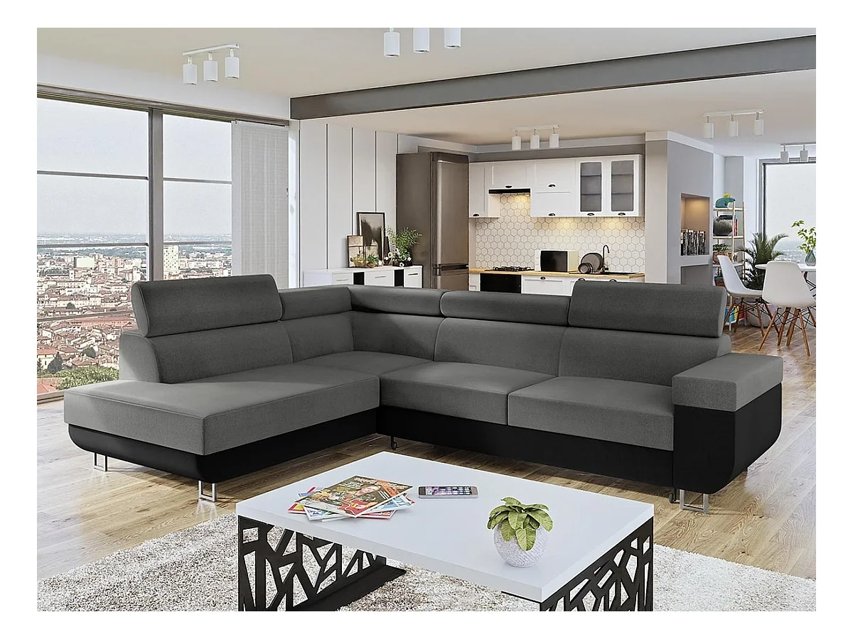 Canapé d'angle Comfivo 306, Gris, Fonction de couchage, Boîte de literie, 253x188x71cm