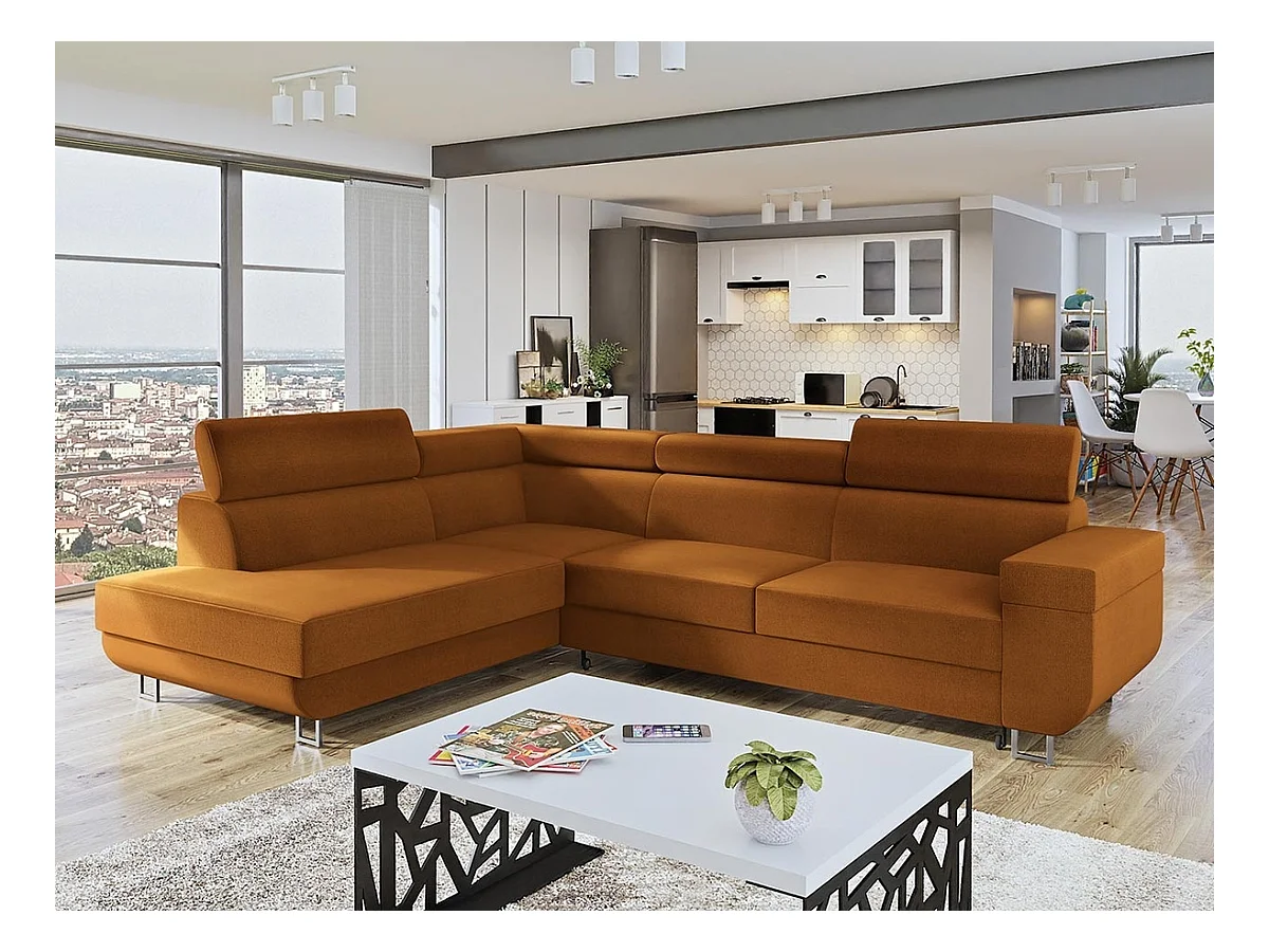 Canapé d'angle Comfivo 306, Rouge, Fonction de couchage, Boîte de literie, 253x188x71cm