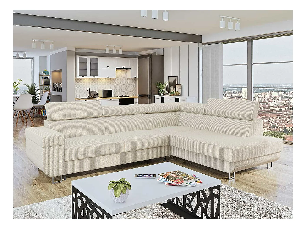 Canapé d'angle Comfivo 306, Brun clair, Fonction de couchage, Boîte de literie, 253x188cm