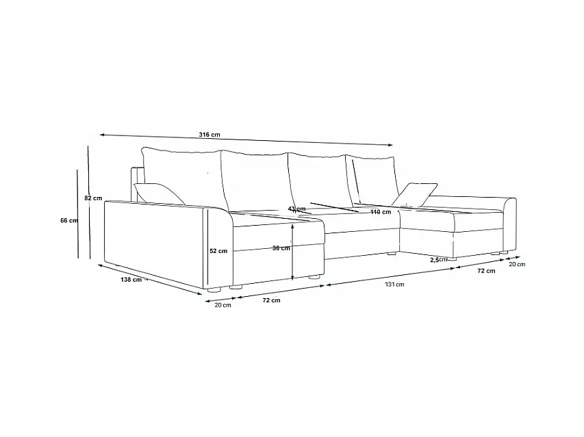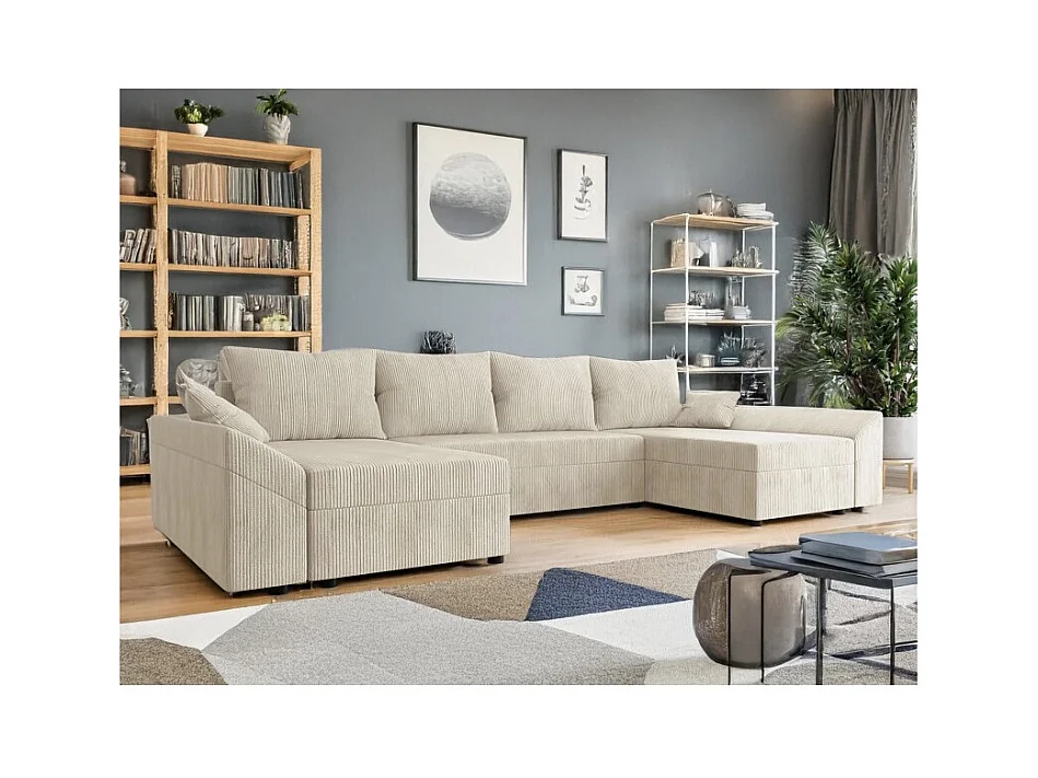 Canapé d'angle panoramique DENVI en U en velours côtelé