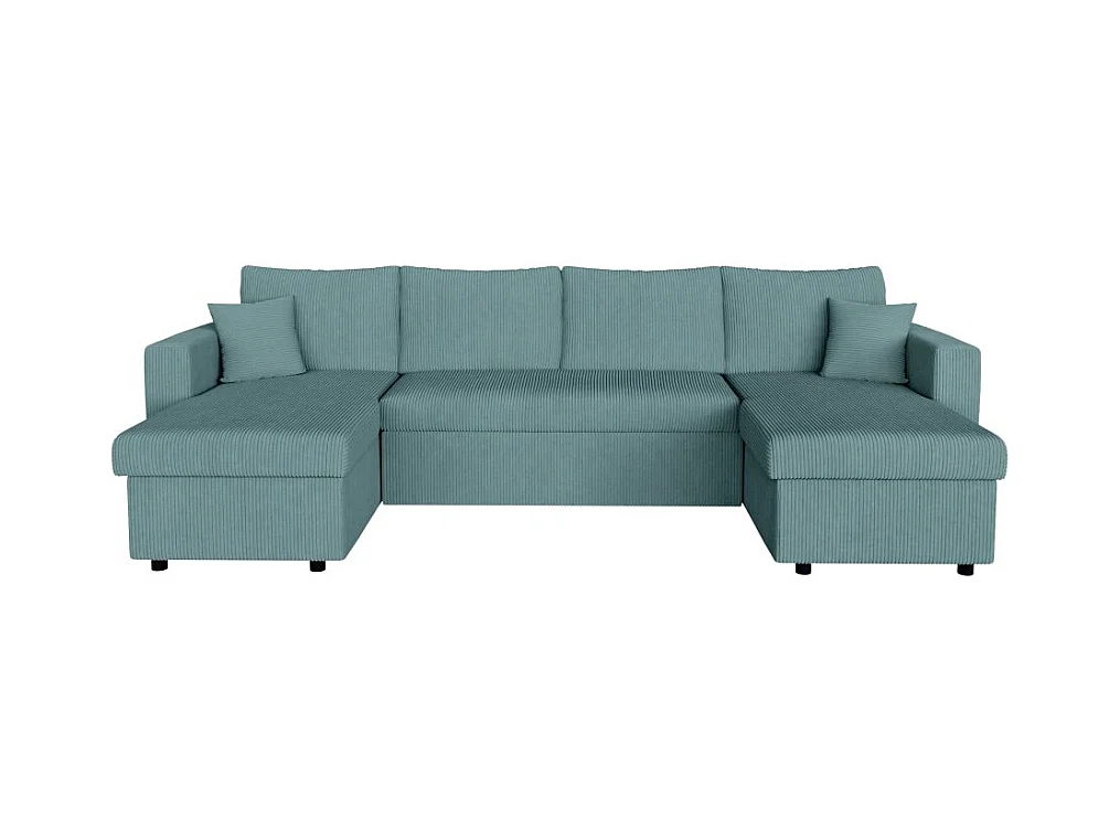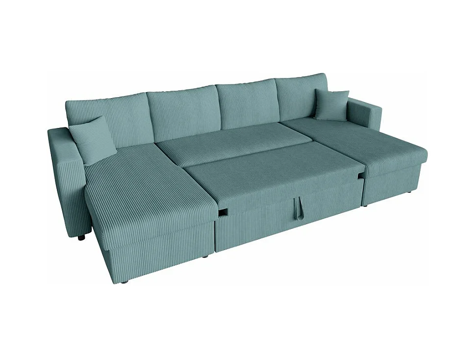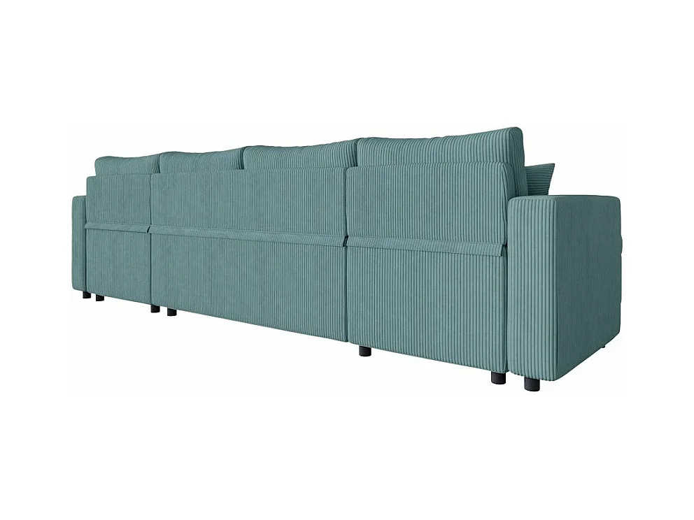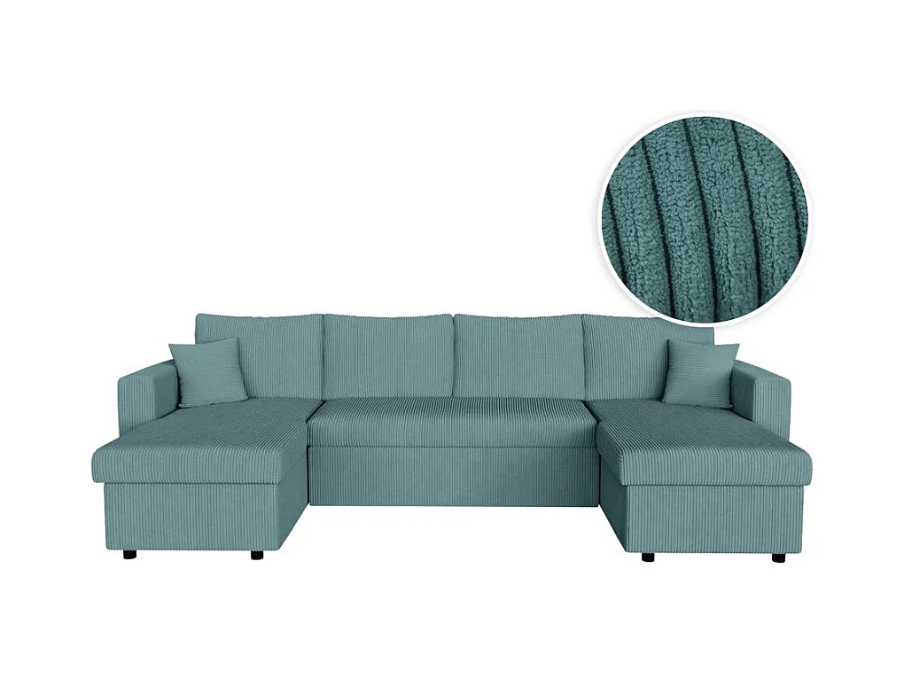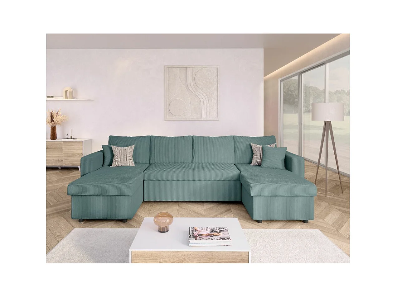 Canapé panoramique 6 places Maria convertible avec 2 coffres en velours côtelé - Bleu clair - L295 x P146 x H81cm - Loungitude