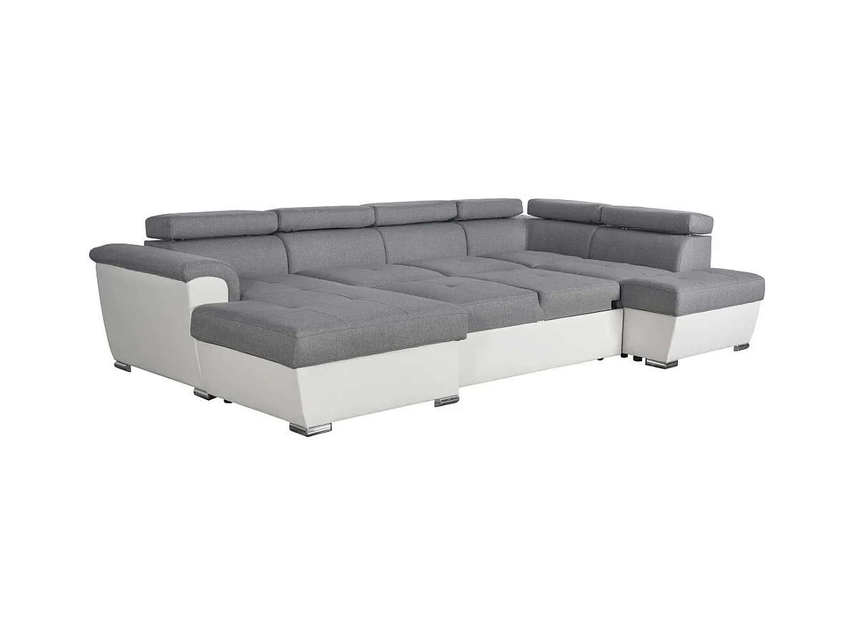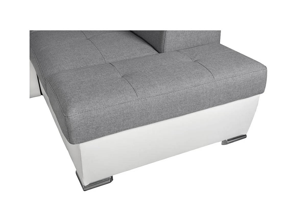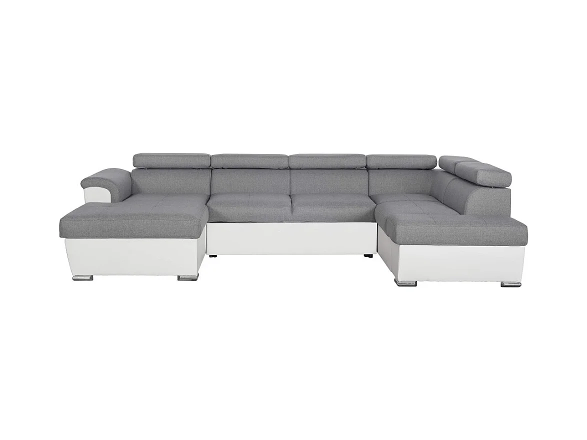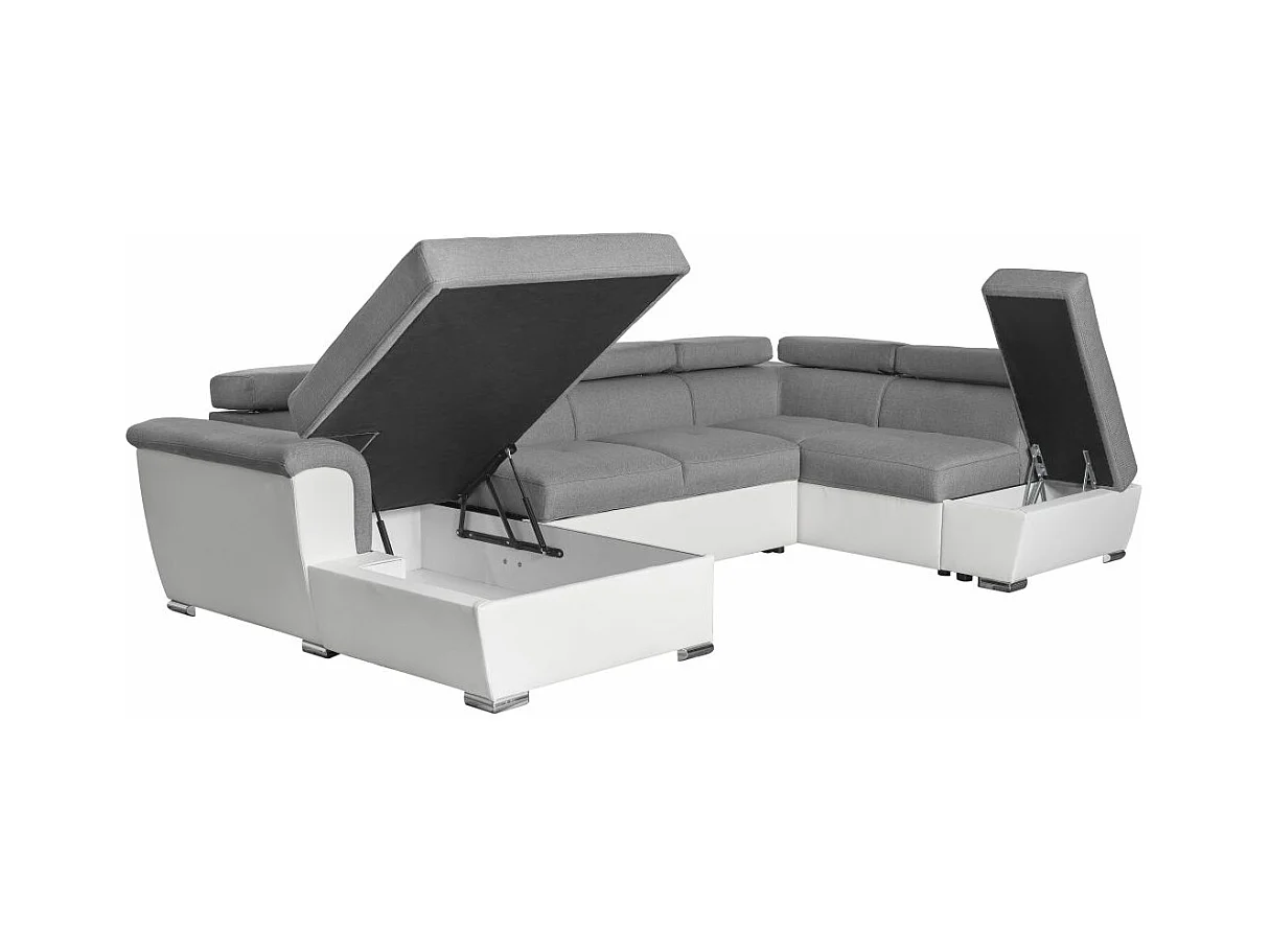 Canapé d'angle Panoramique 6 Places Paola Convertible en Simili/Tissu Avec Coffres - Blanc/Gris - L322 x P196 x H76cm - Loungitude