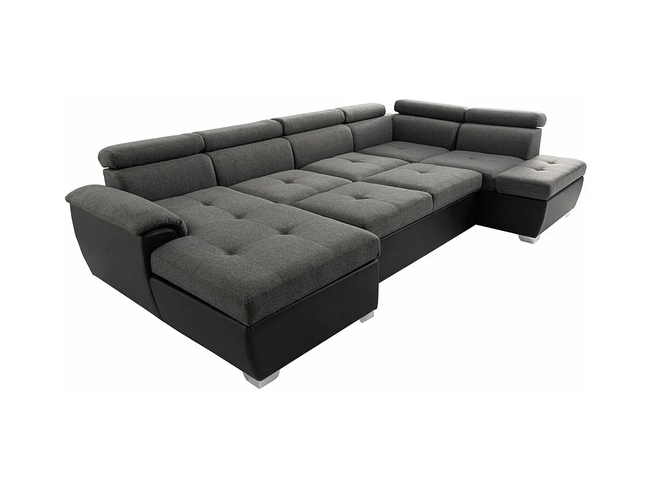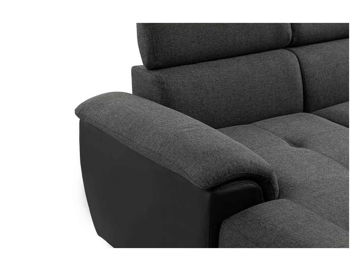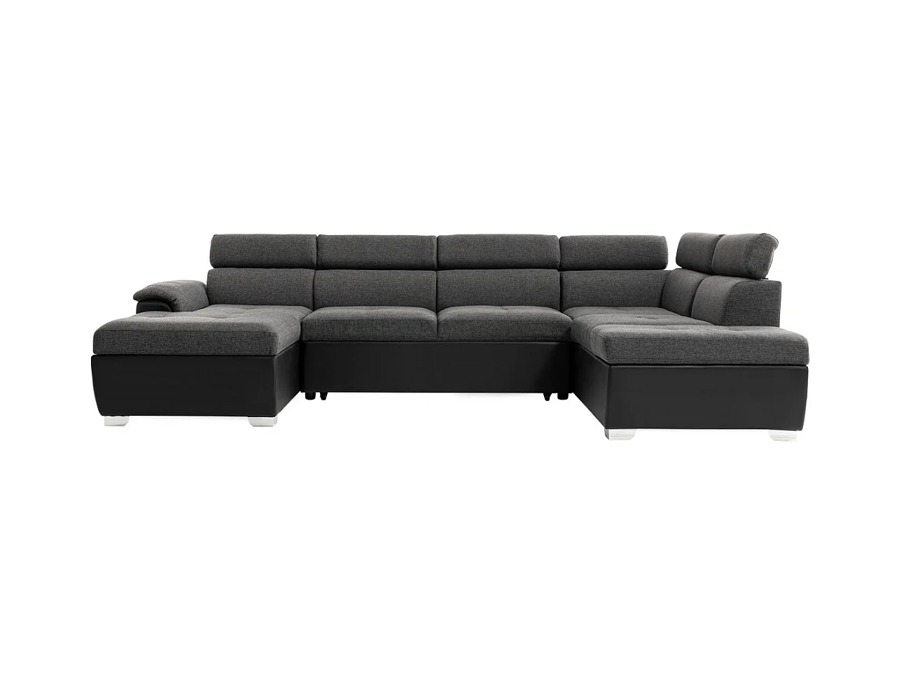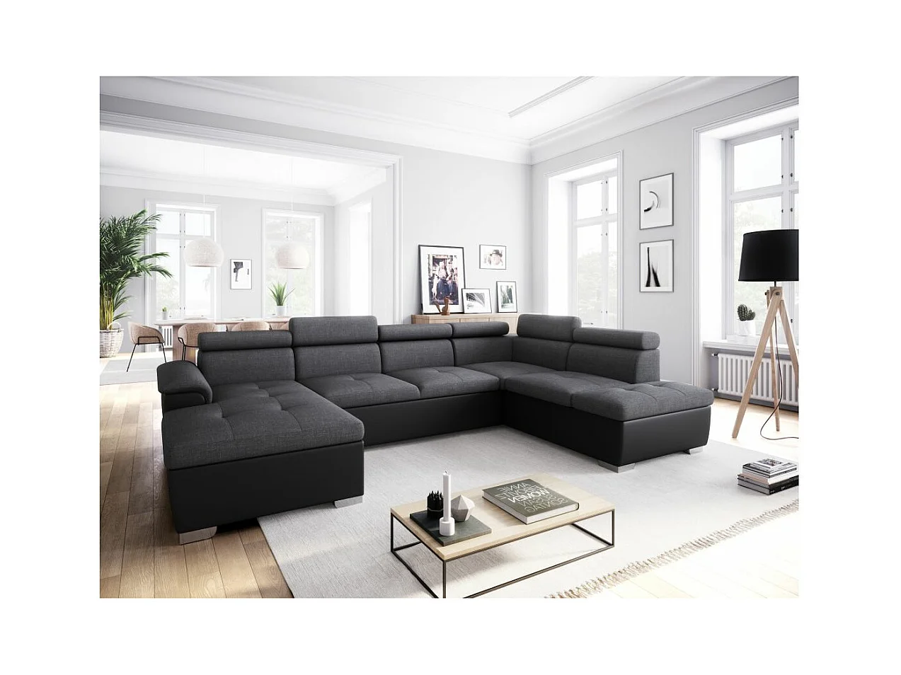 Canapé d'angle Panoramique 6 Places Paola Convertible en Simili et Tissu Avec Coffres - Gris/Noir - L322 x P196 x H76cm - Loungitude
