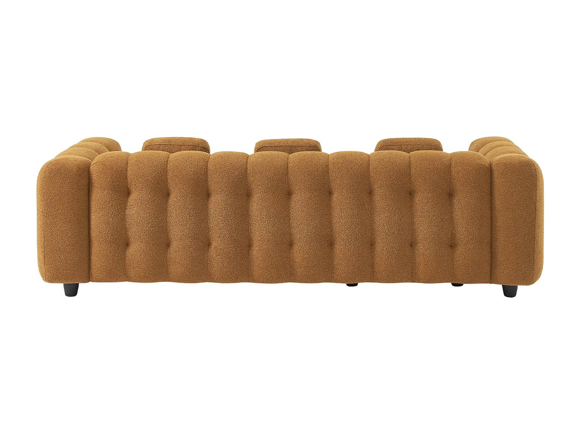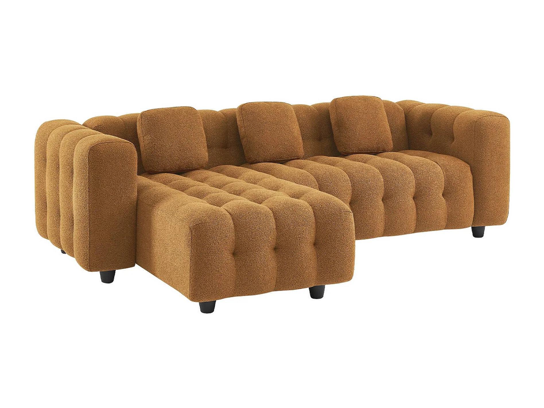 Canapé d'angle réversible 3-4 places bouclette texturée. moutarde. capitonné structure bois d'eucalyptus et contreplaqué