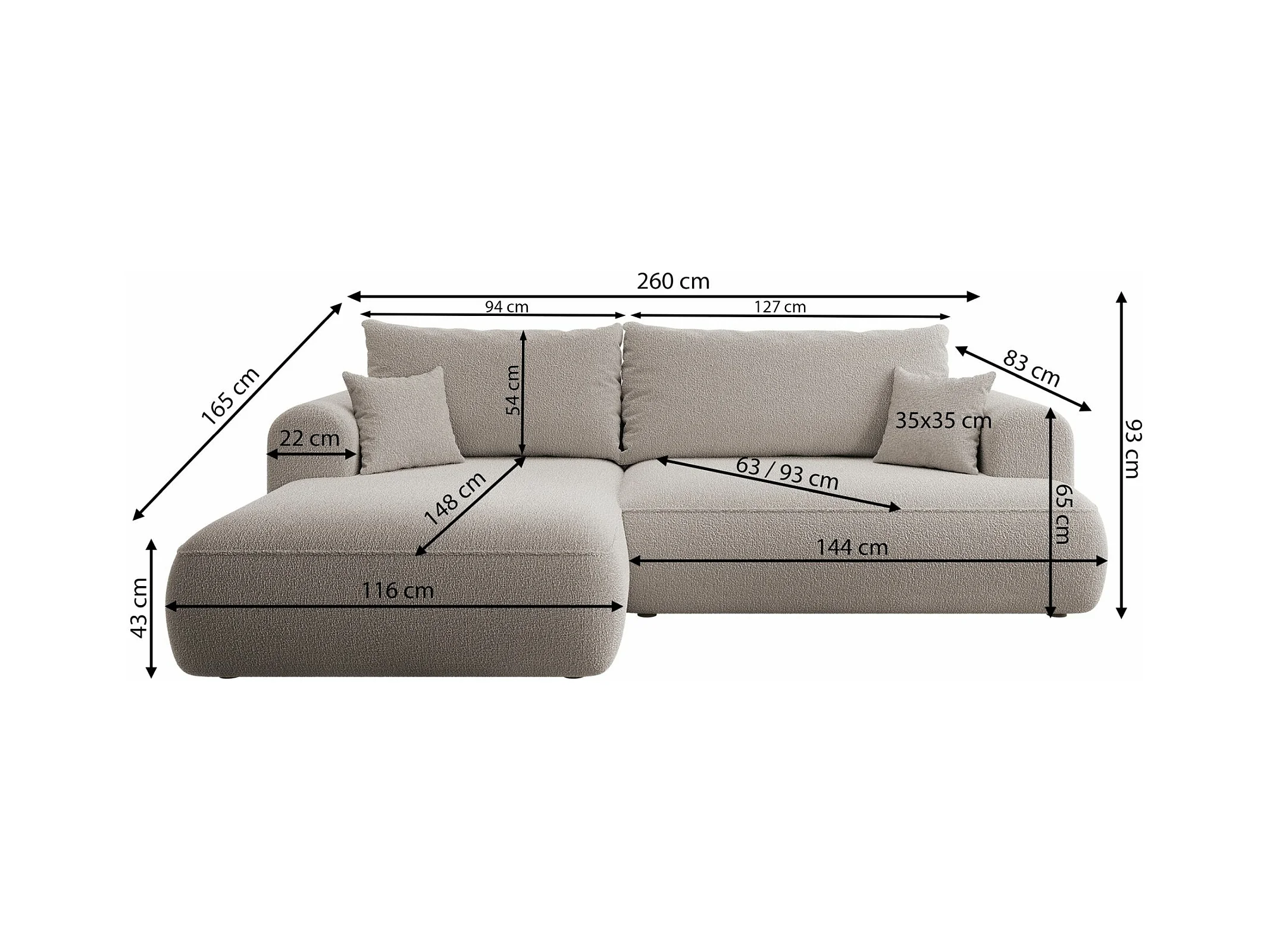 Canapé d'angle réversible - en velours gris- côté gauche - OVO L