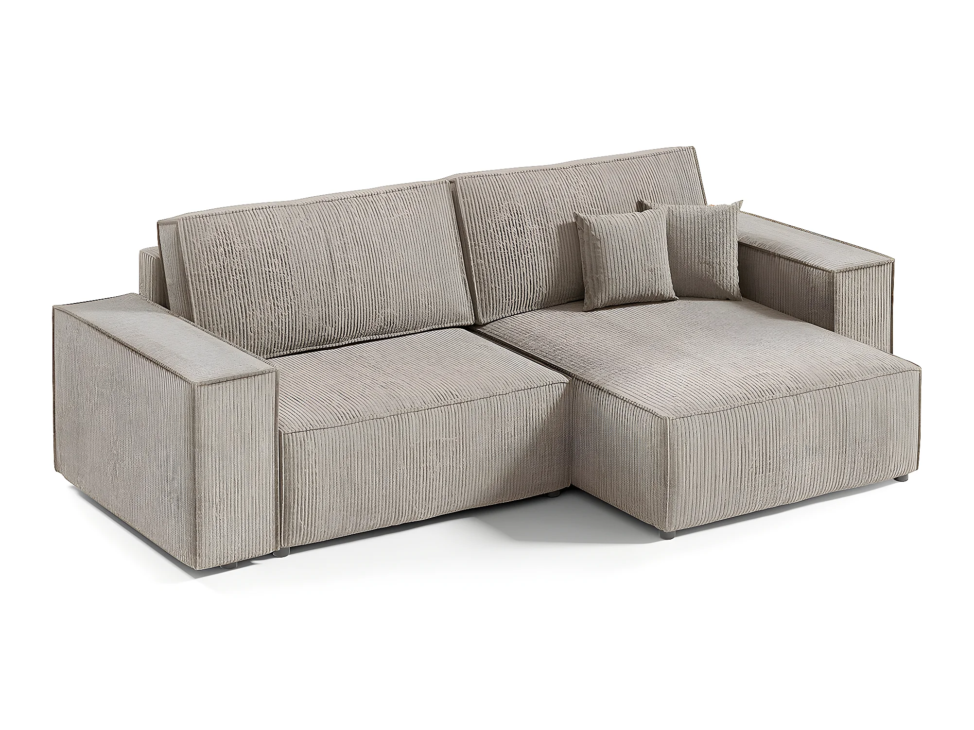 Canapé d'angle réversible et convertible 3 places avec coffre Isaac Mini velours côtelé Taupe
