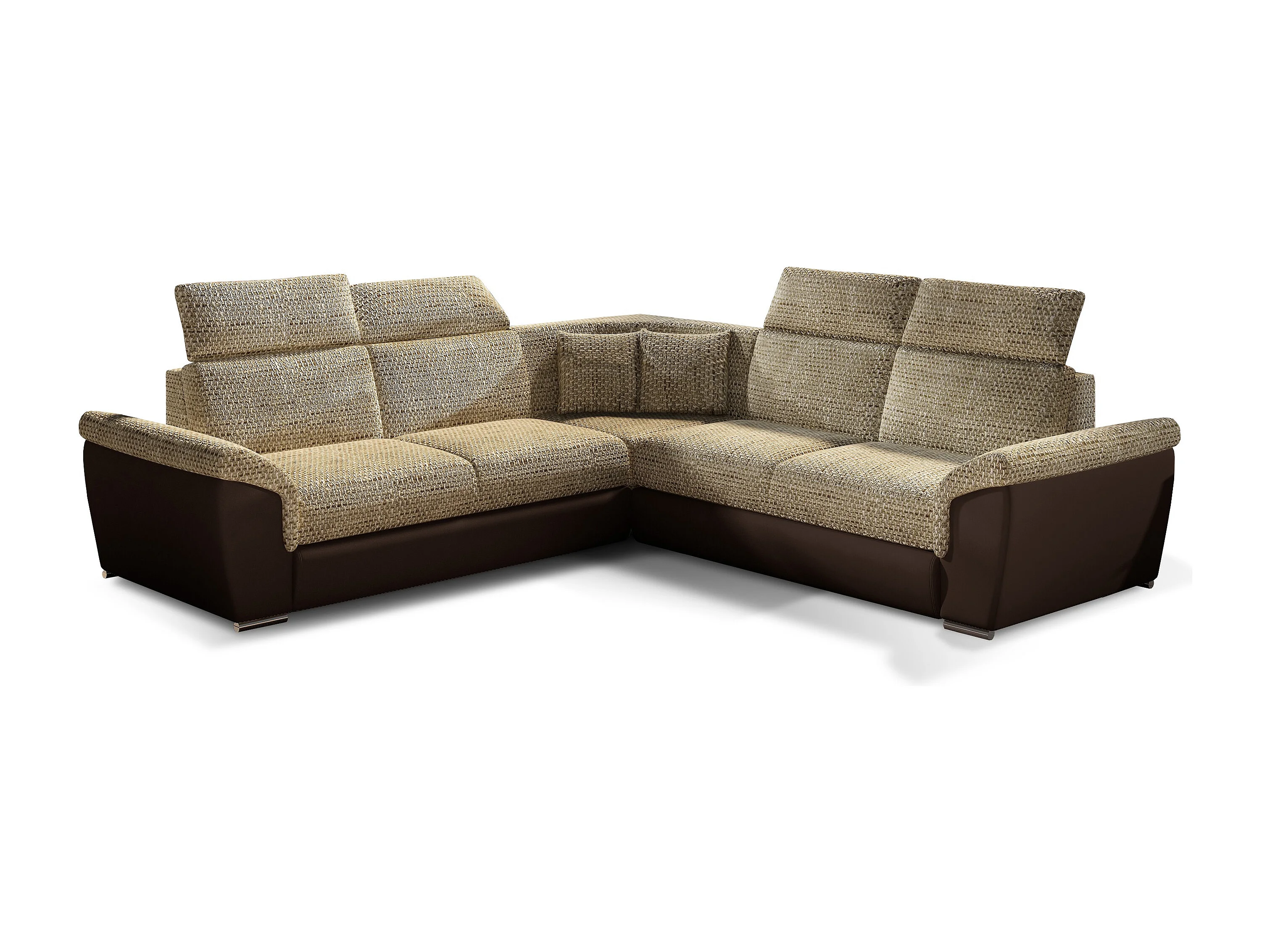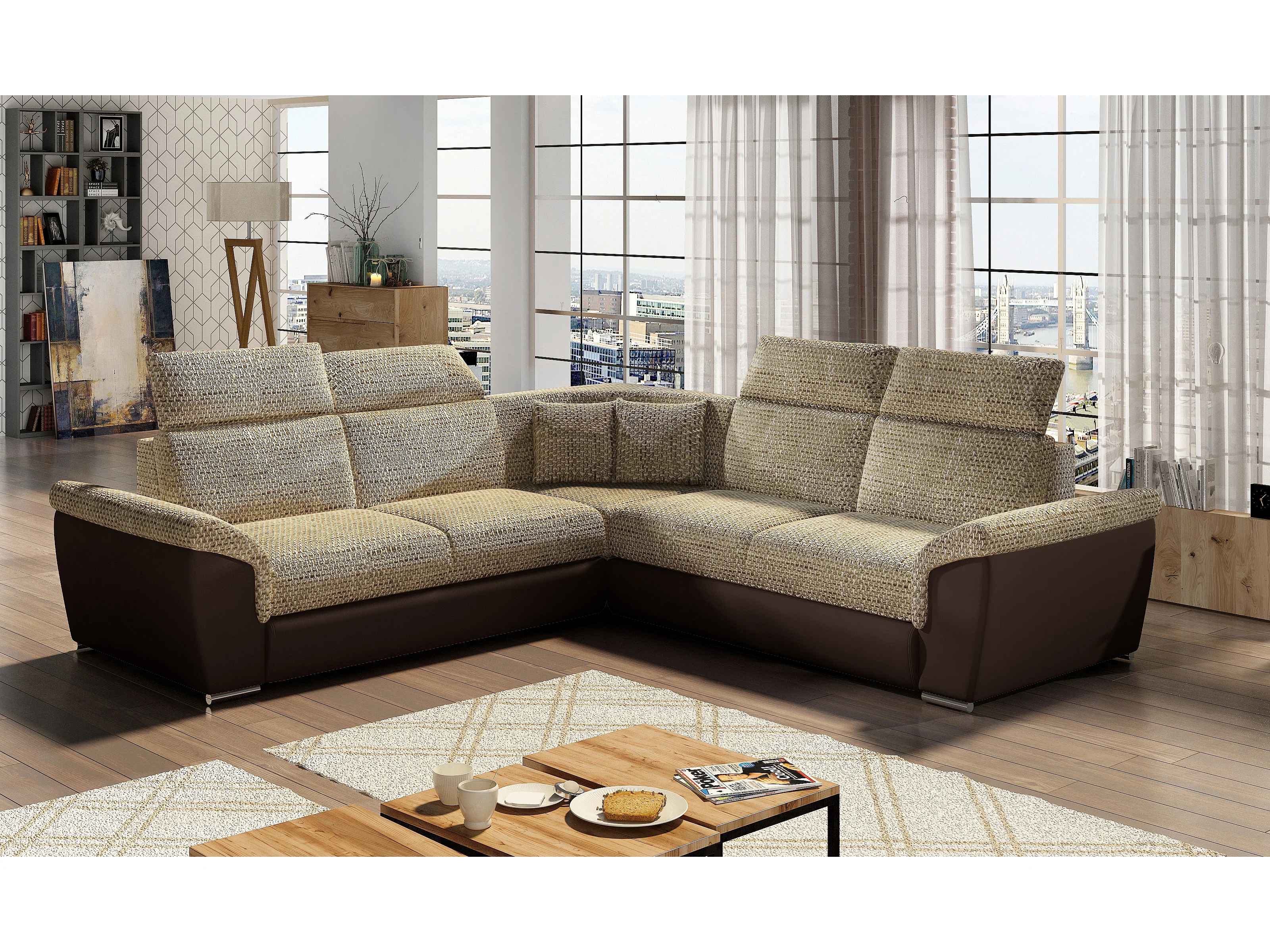 Canapé d'angle réversible et convertible bi-matières Neo - Pieds acier chromé-Marron/Beige chiné