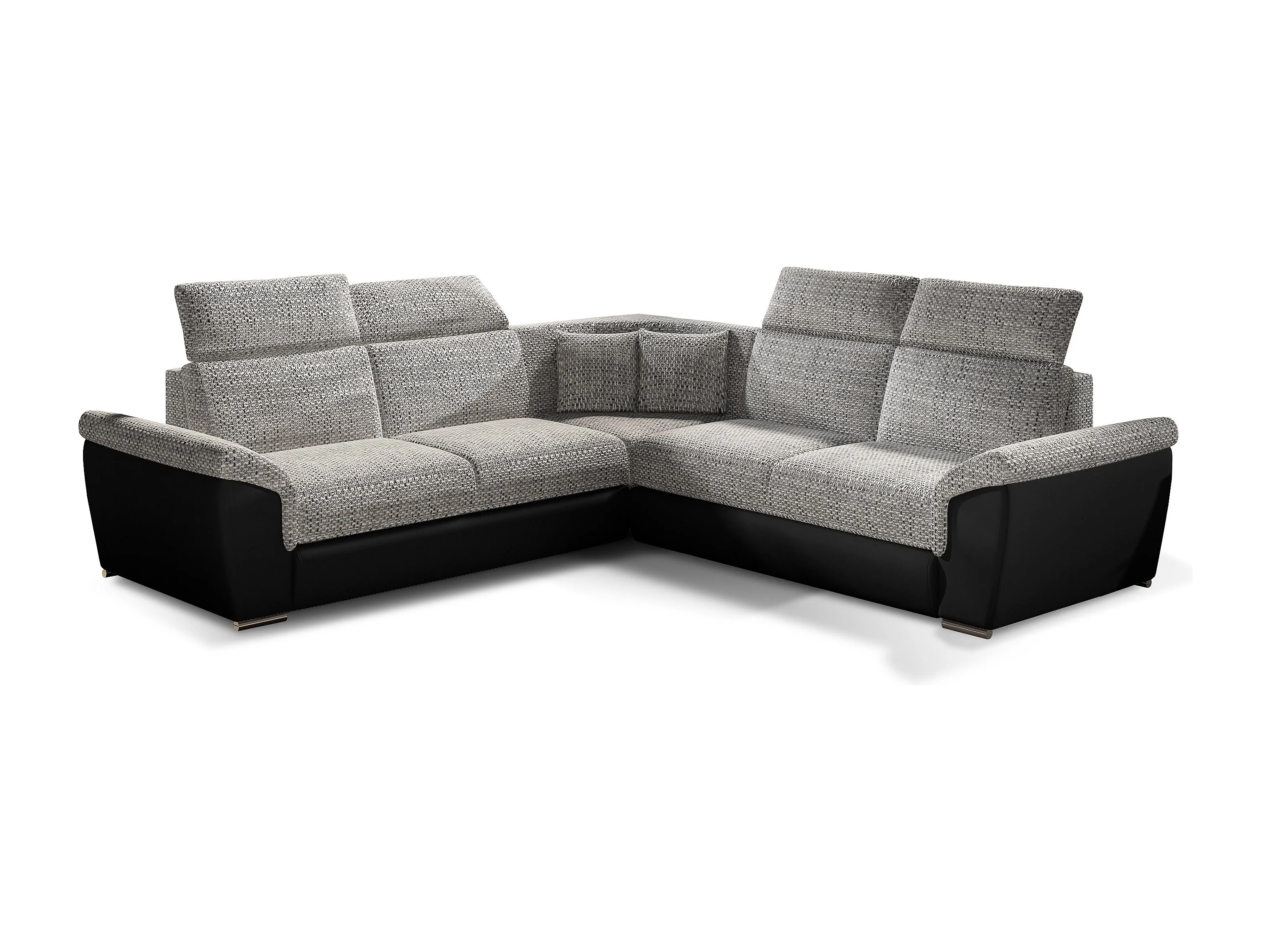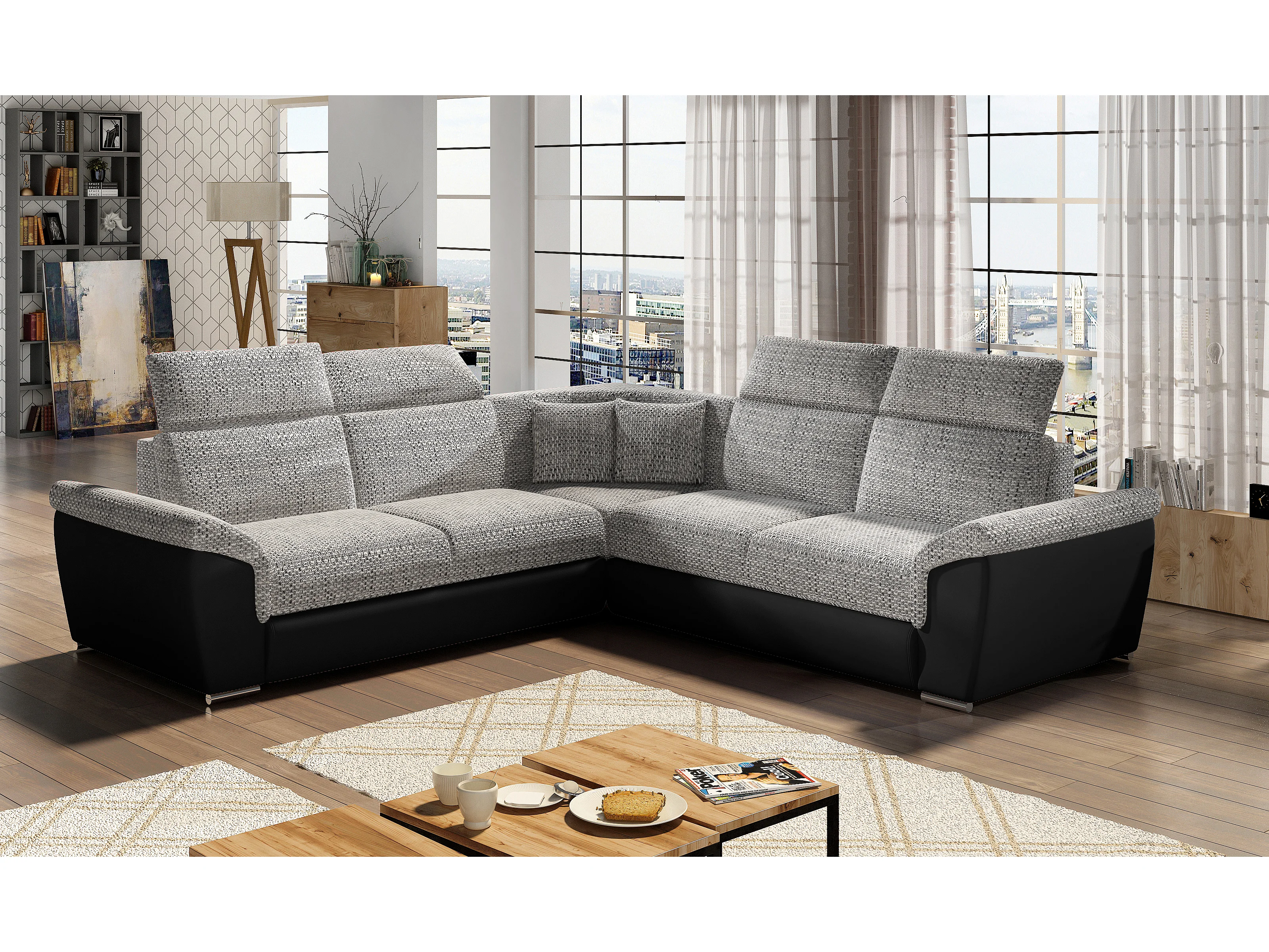 Canapé d'angle réversible et convertible bi-matières Neo - Pieds acier chromé-Noir/Gris chiné