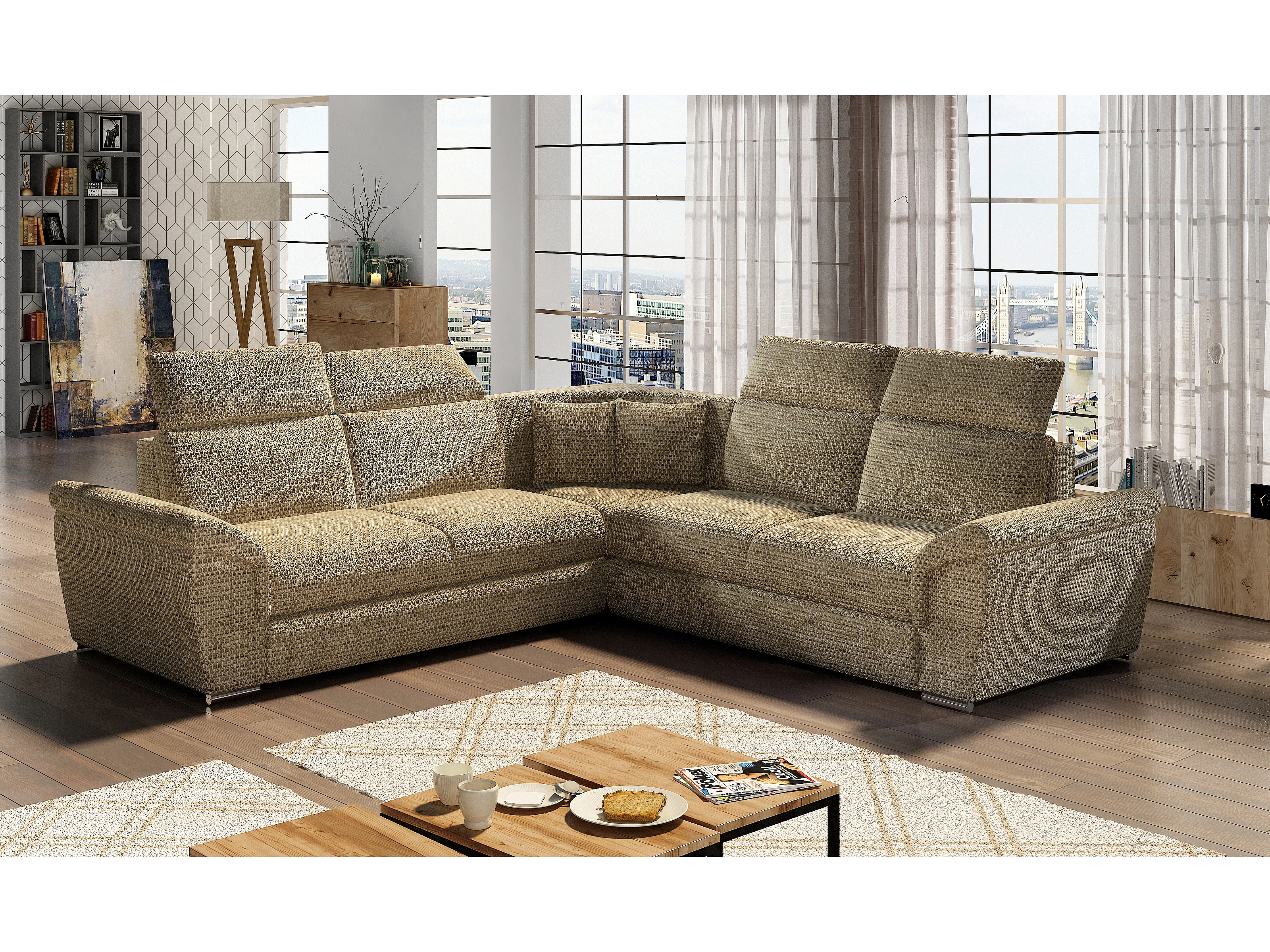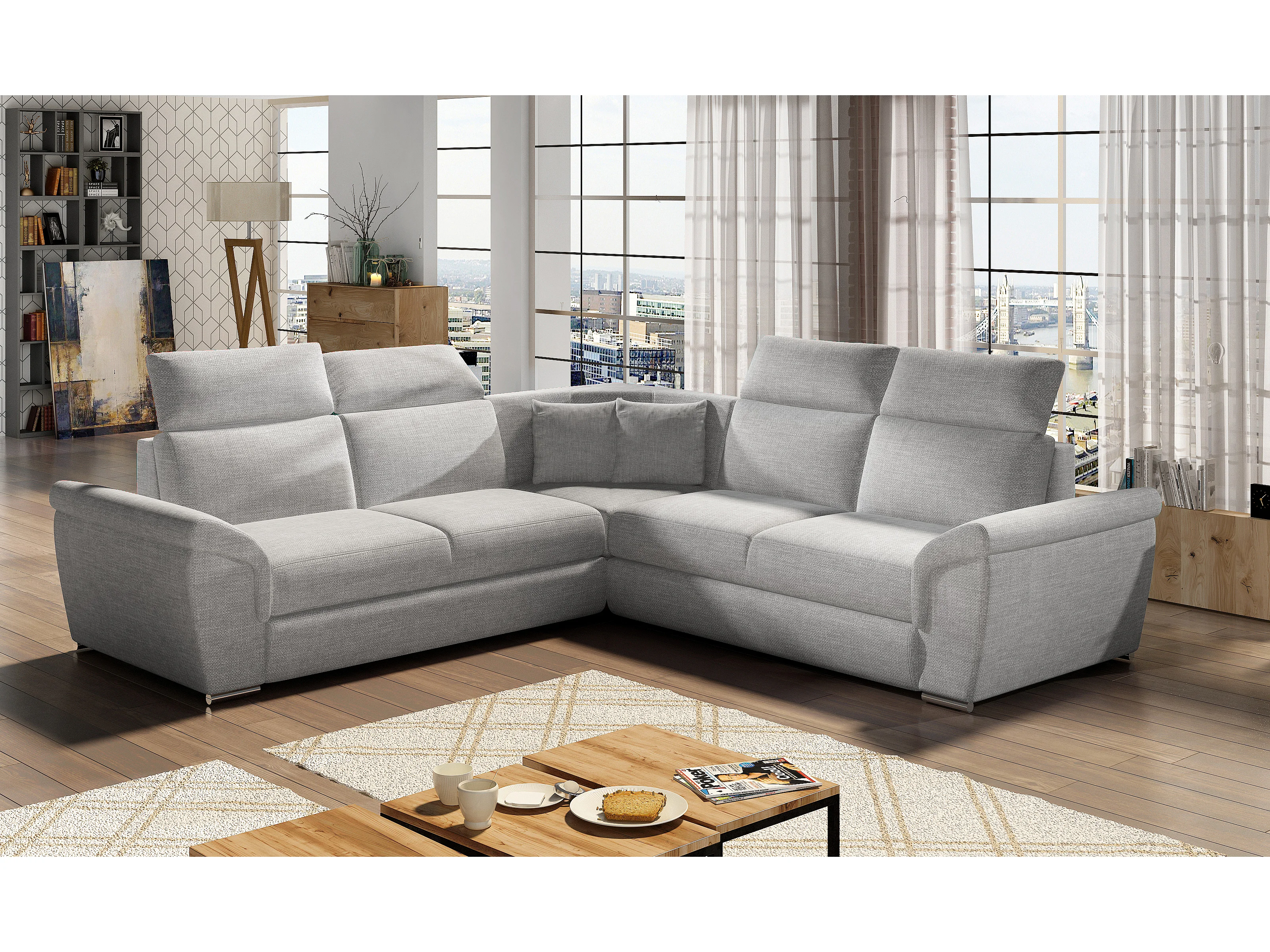 Canapé d'angle réversible et convertible tissu Neo - Pieds acier chromé-Gris clair