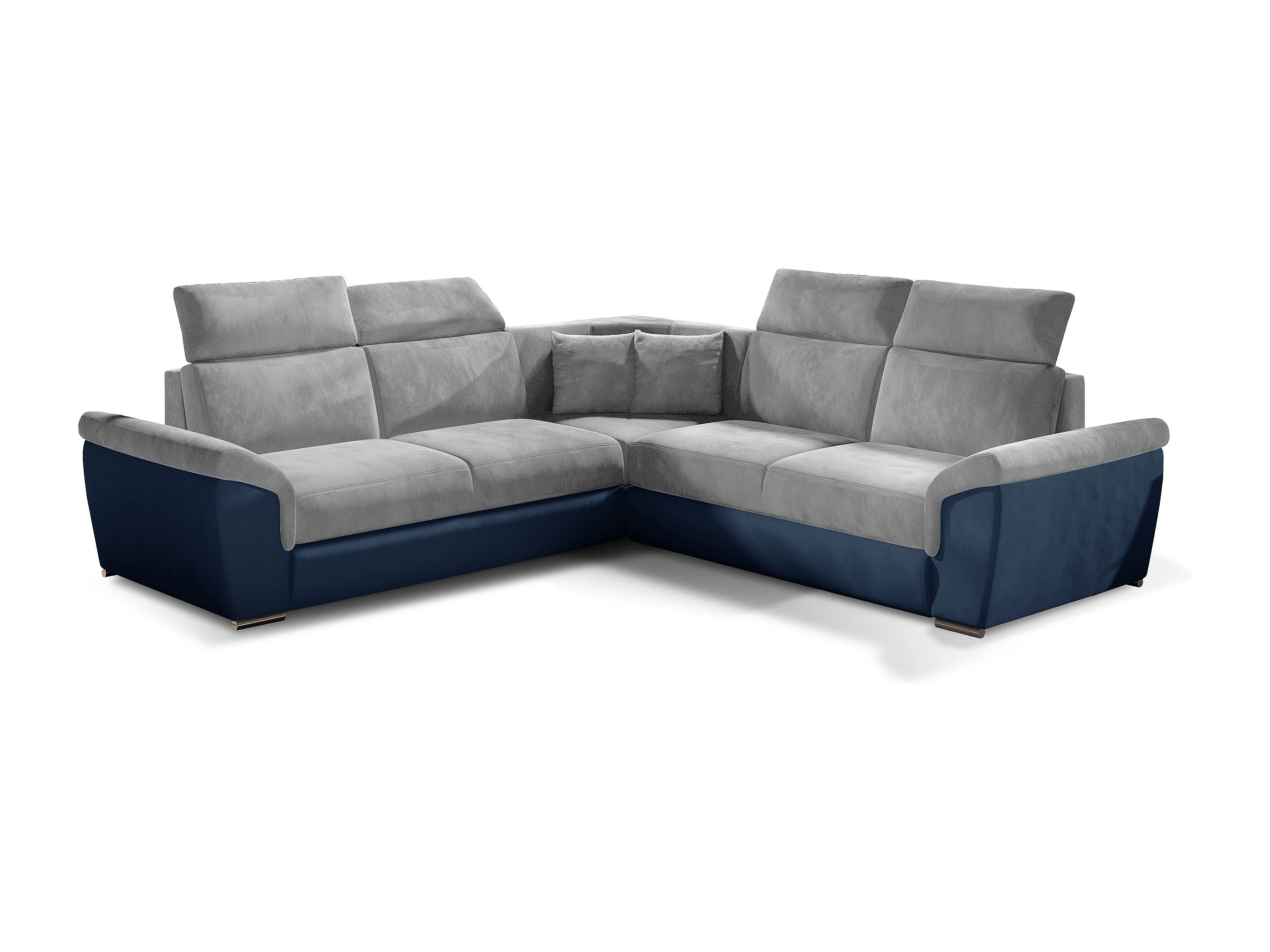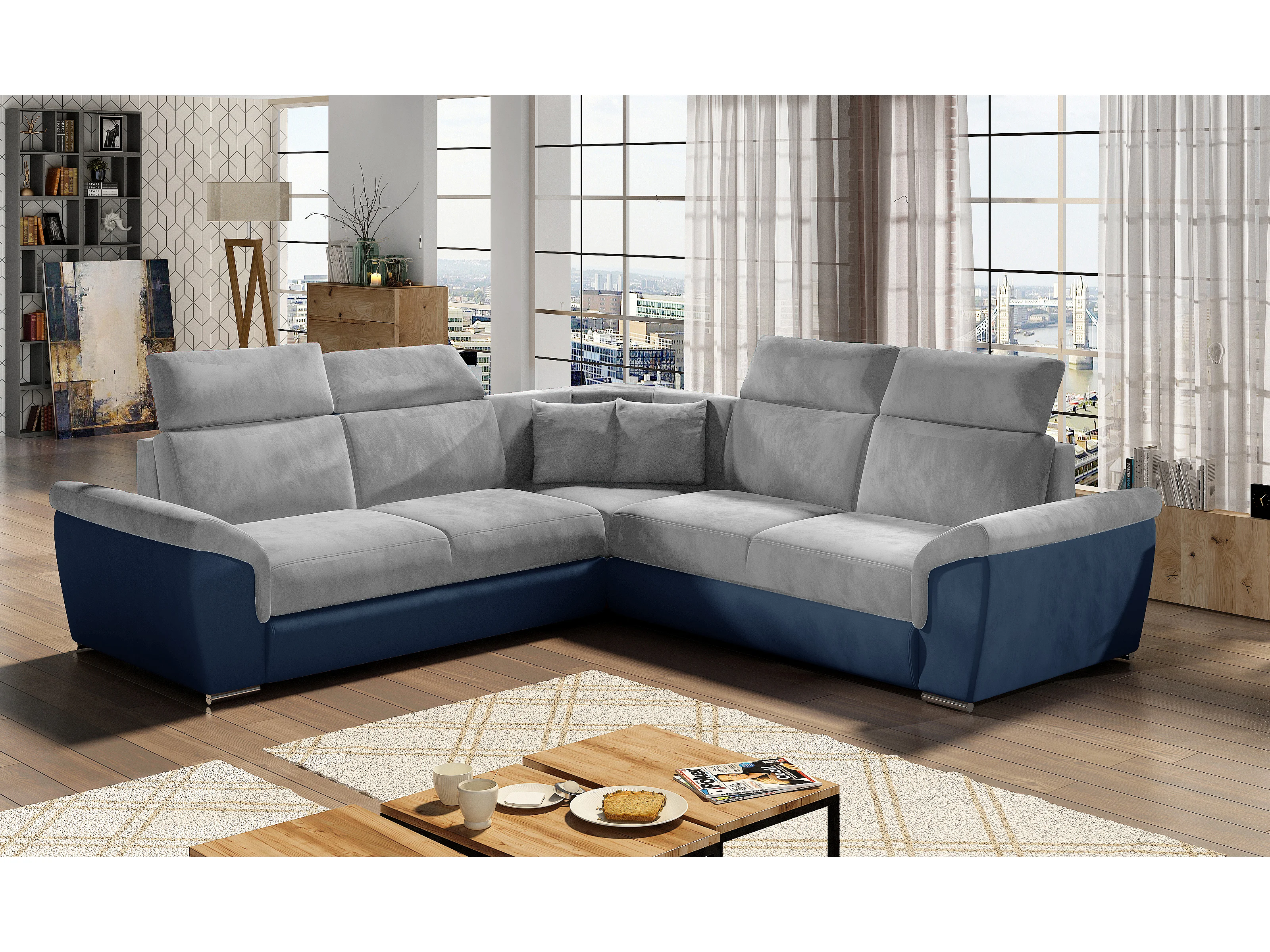 Canapé d'angle réversible et convertible velours Neo - Pieds acier chromé-Bleu/Gris clair