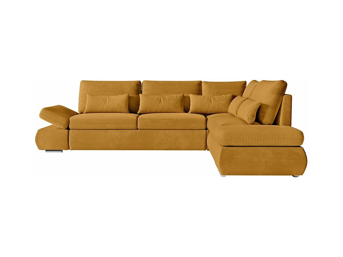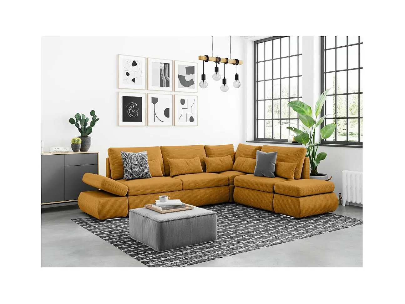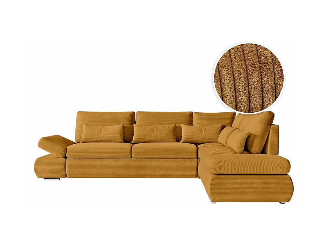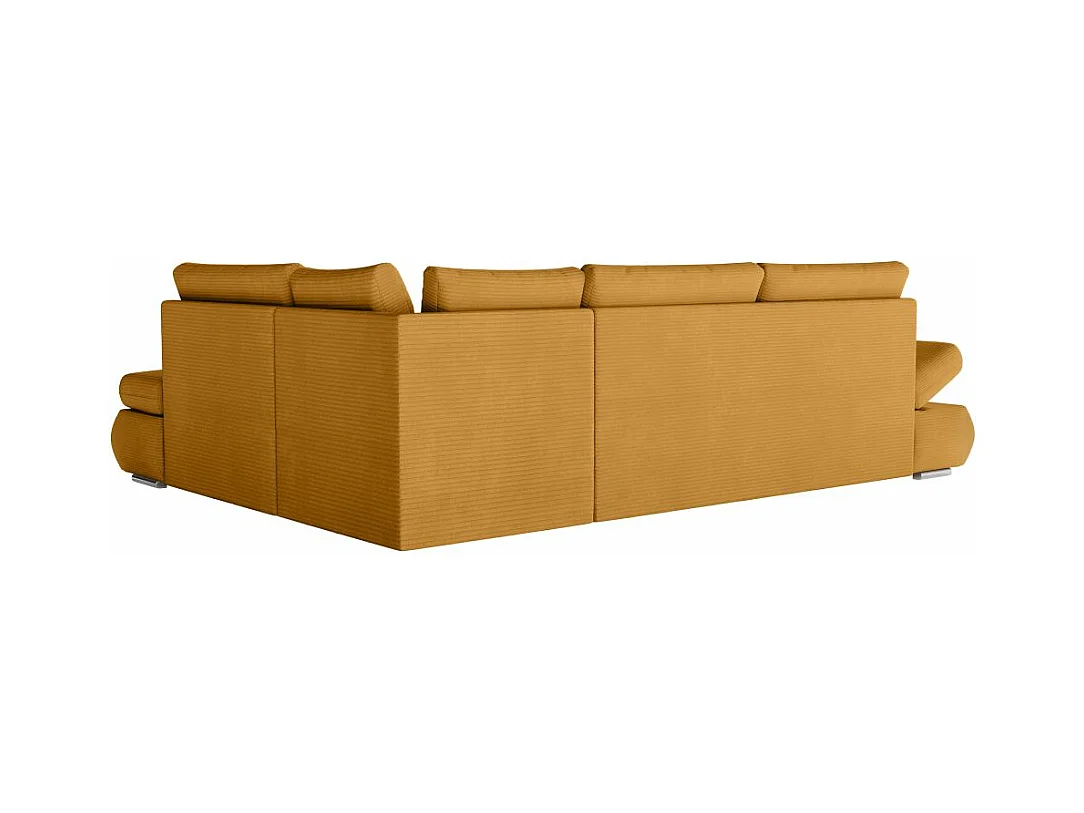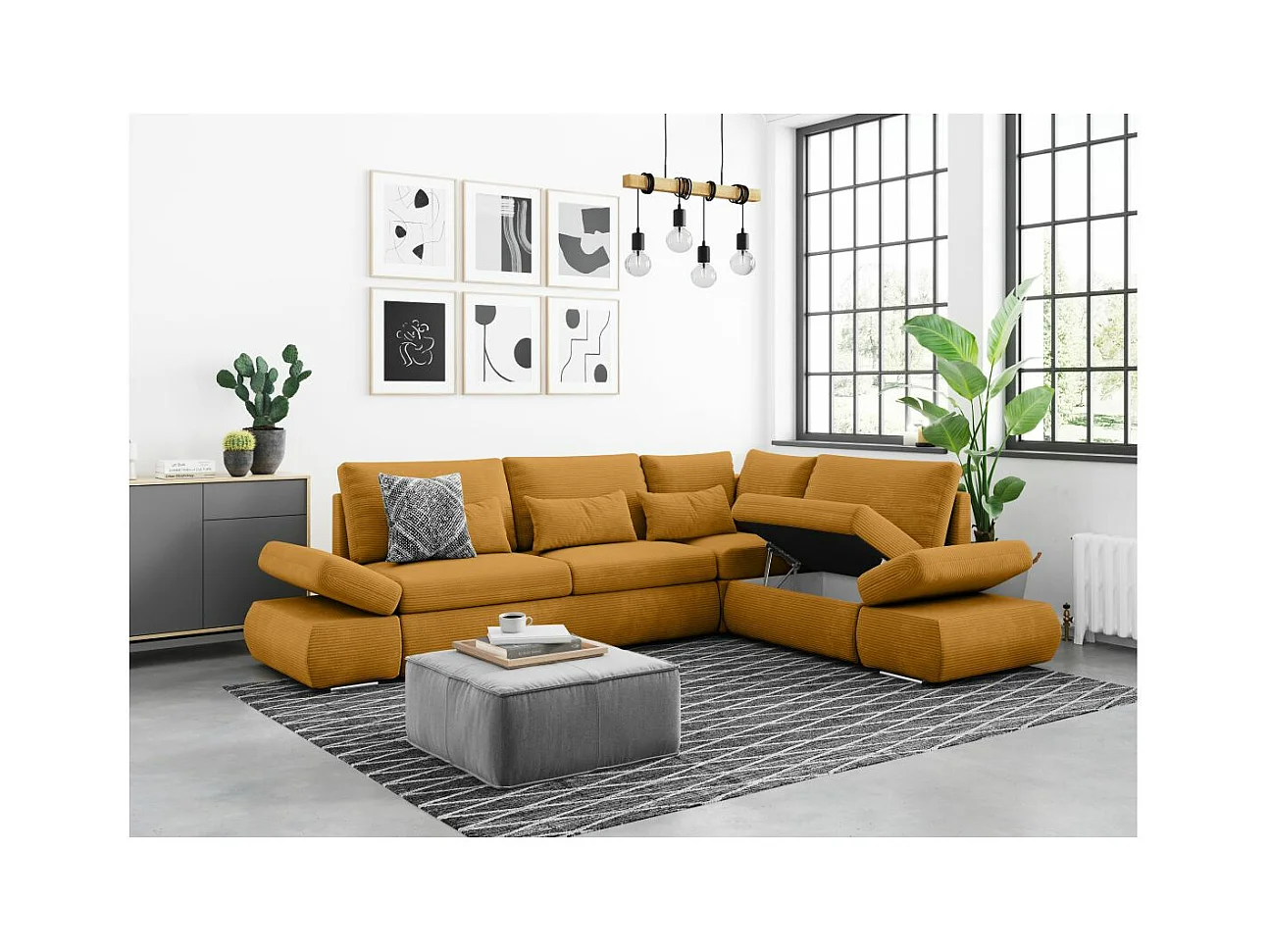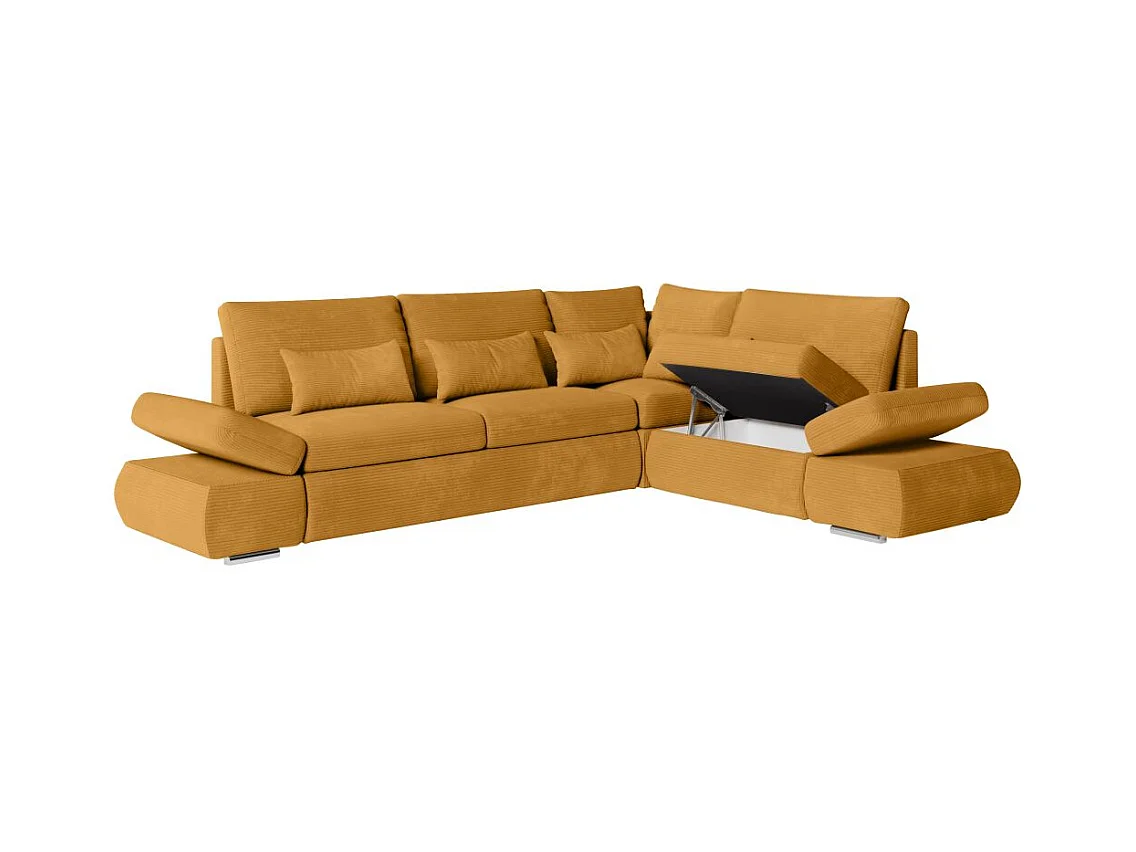 Canapé d'angle 4 places réversible Sebastian convertible avec coffre en velours côtelé - Jaune - L267 x P200 x H90cm - Loungitude