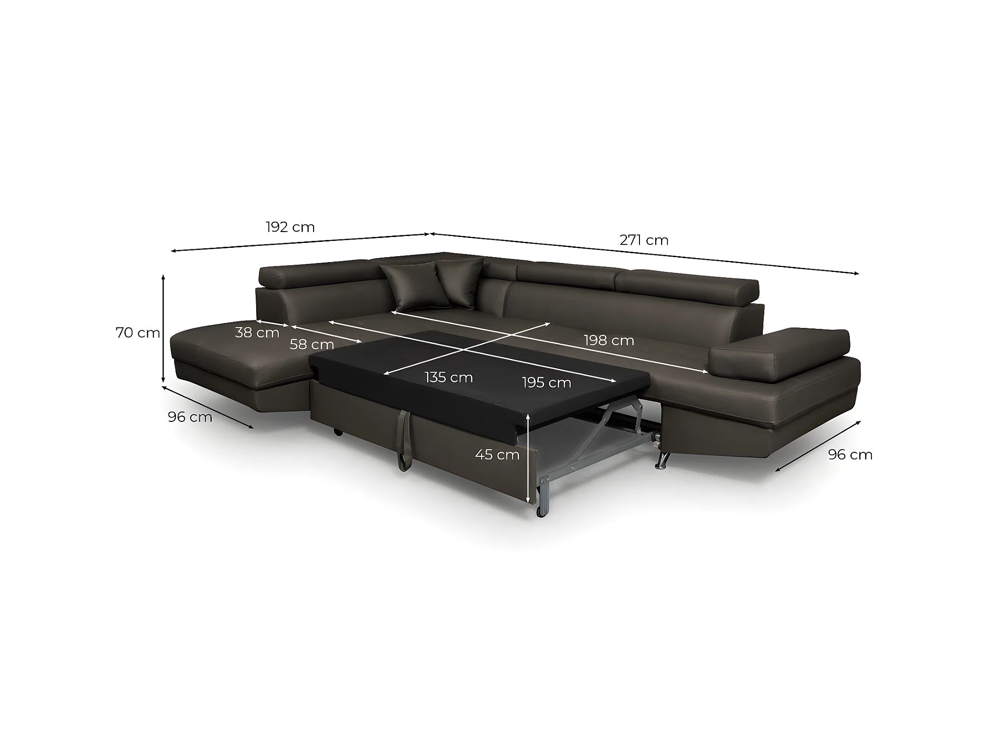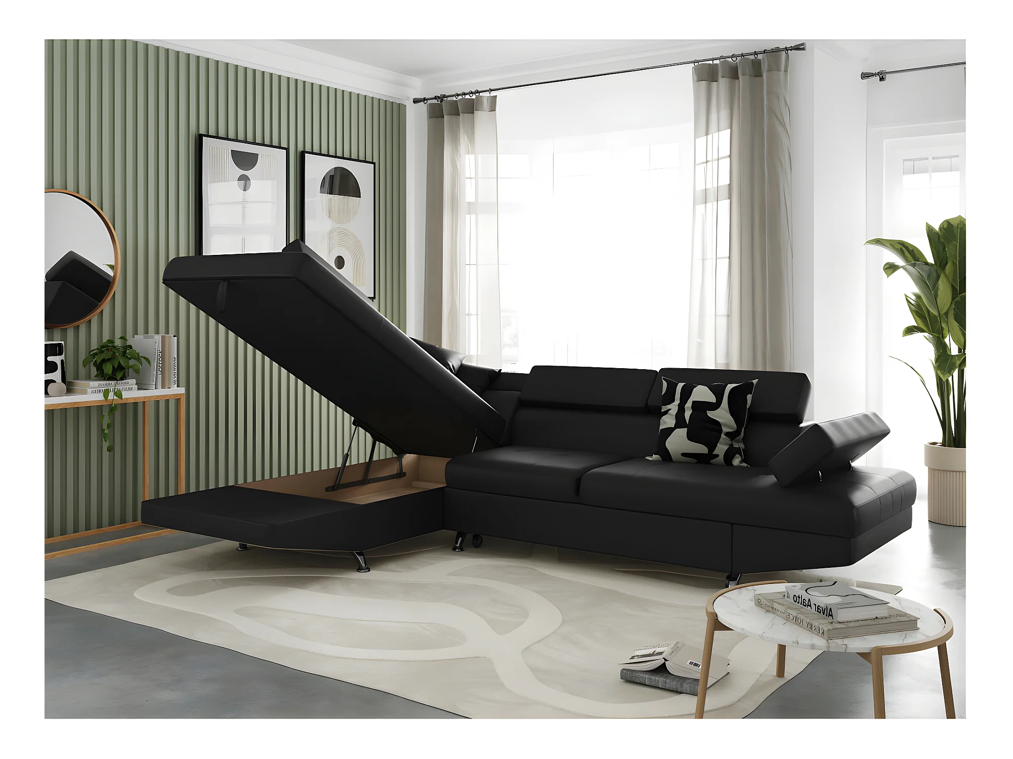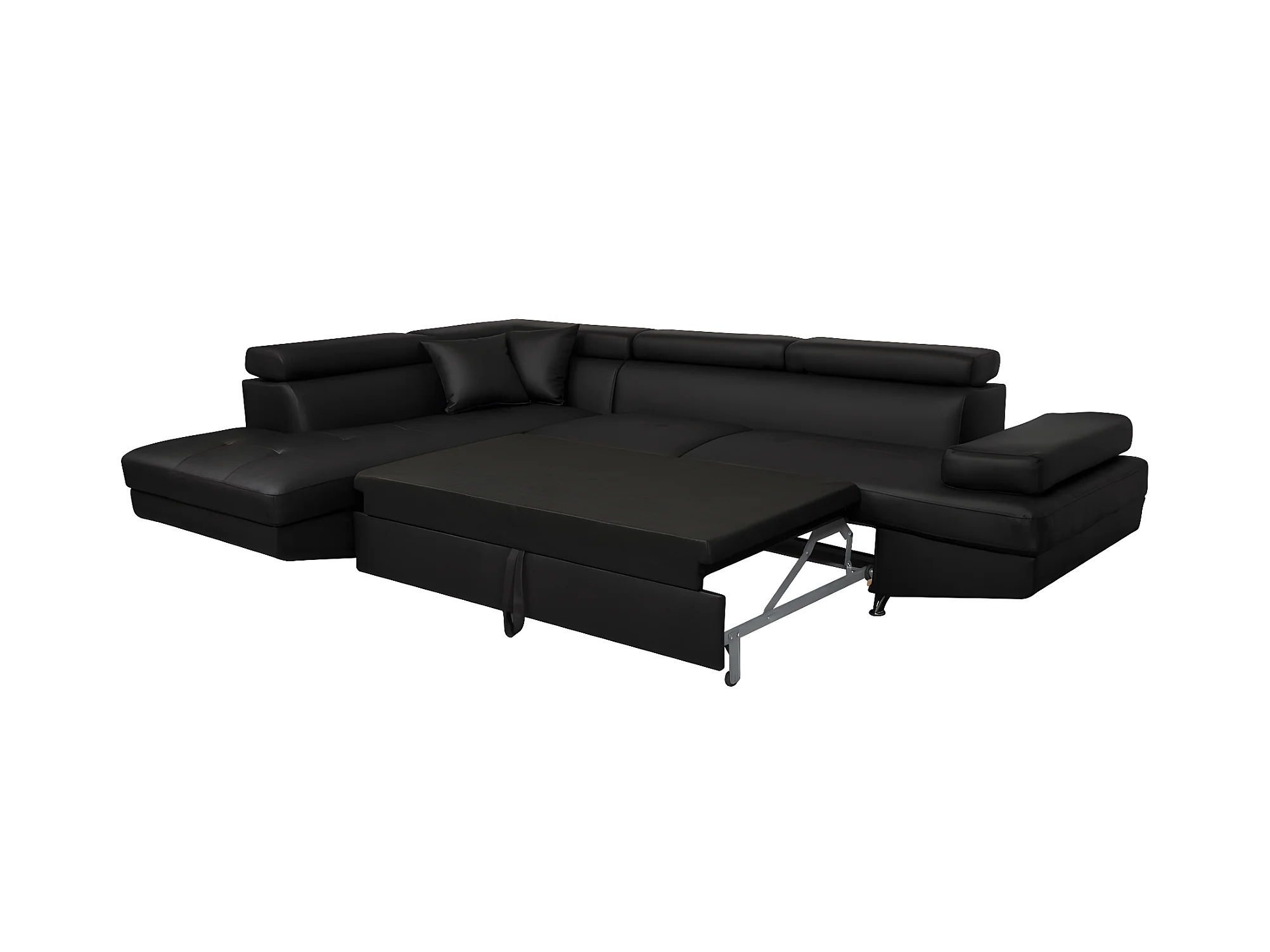 Canapé d'angle gauche 5 places Rio Convertible avec coffre en simili - Noir - L271 x P192 x H70cm - Loungitude