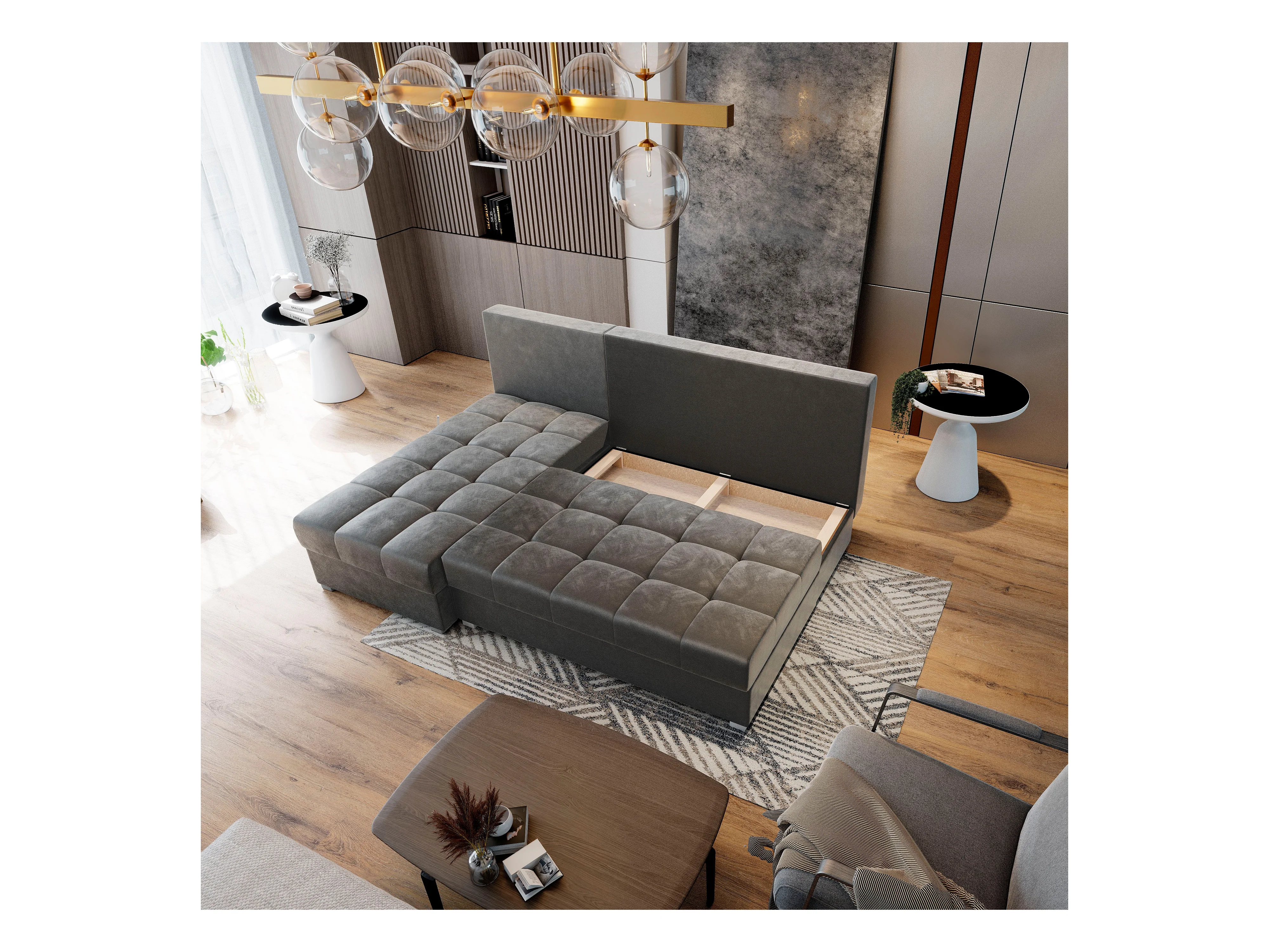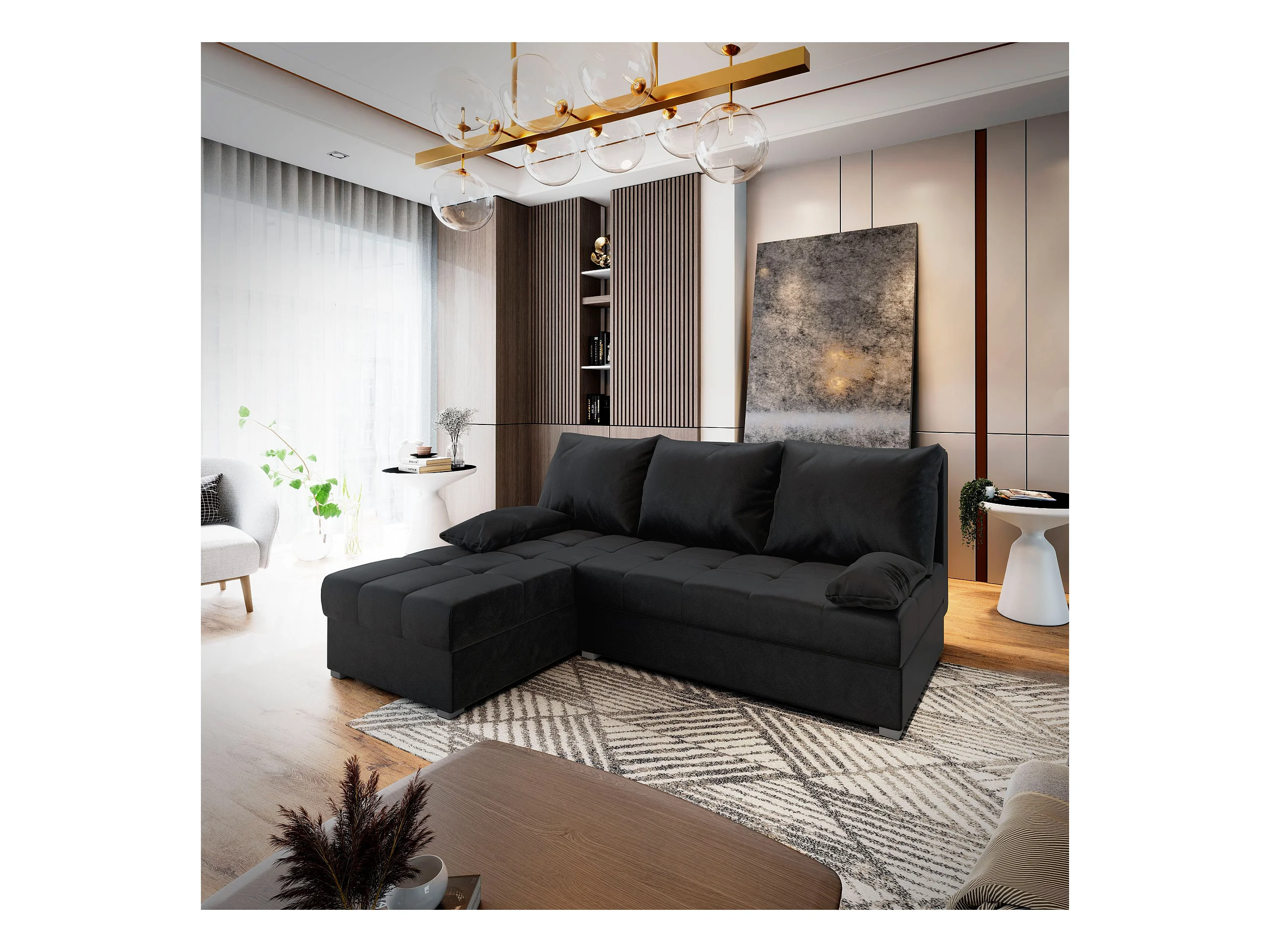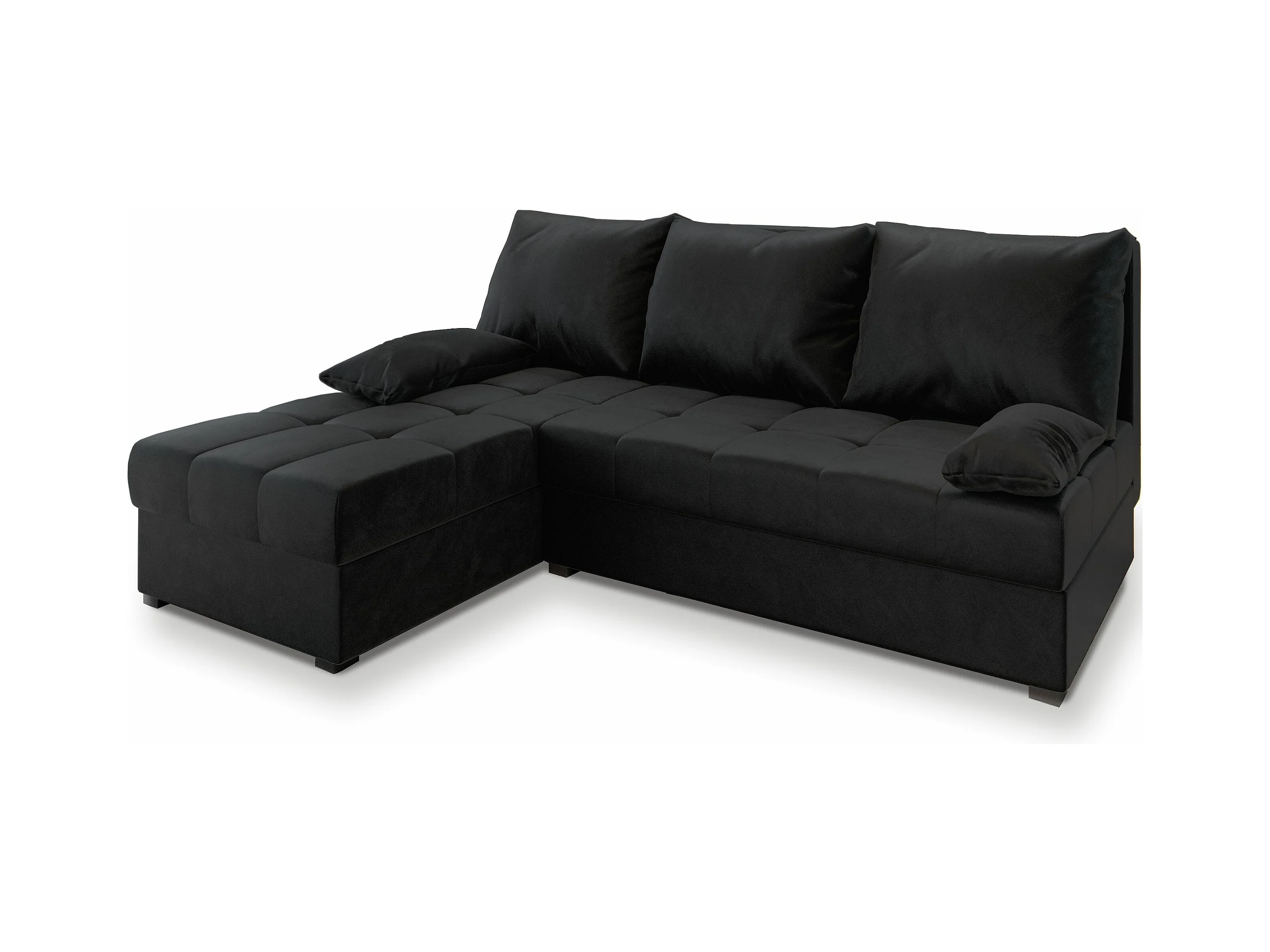 Canapé d'angle RITA Noir en peluche avec fonction de couchage