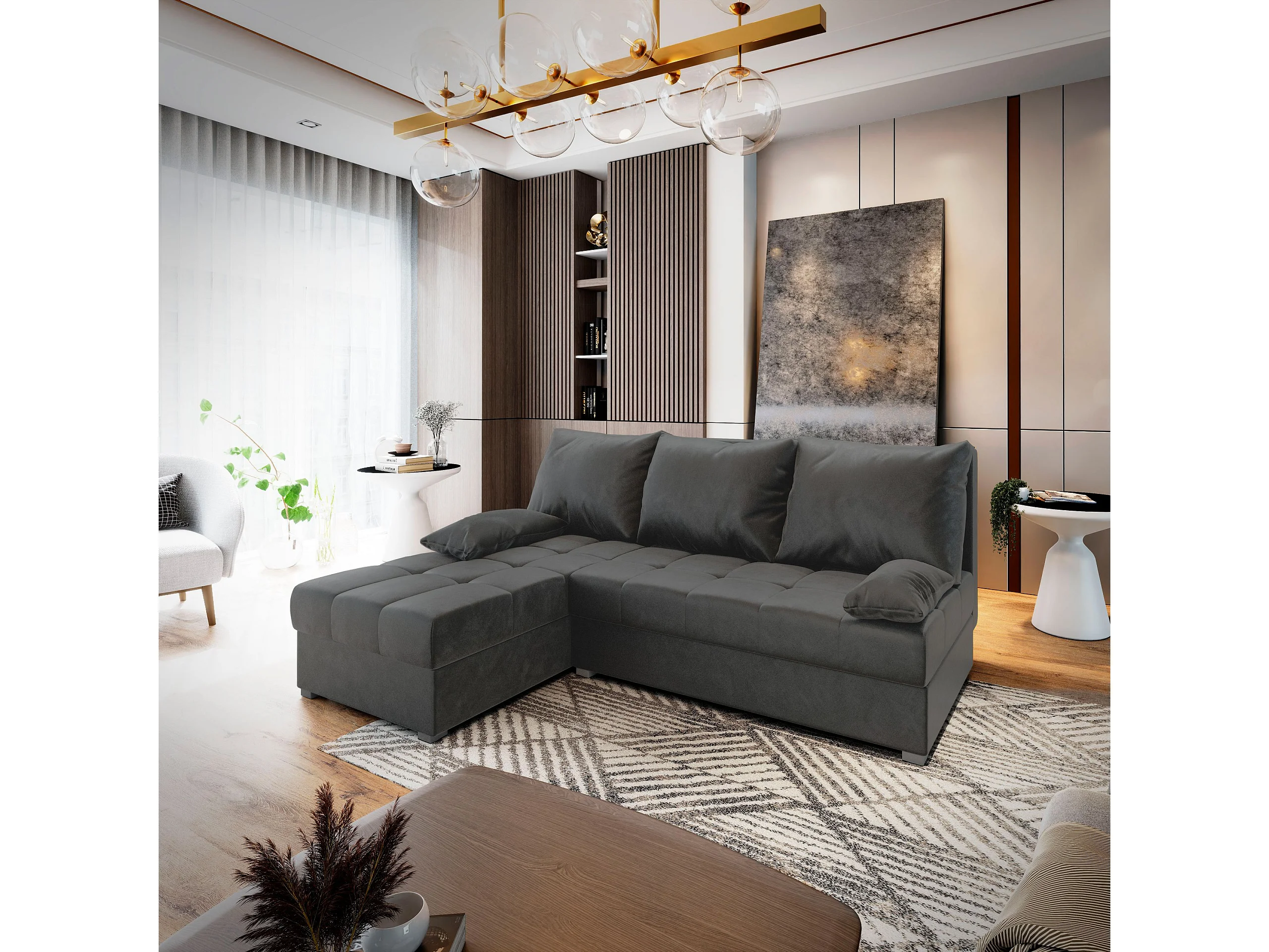 Canapé d'angle RITA Gris en peluche avec fonction de couchage