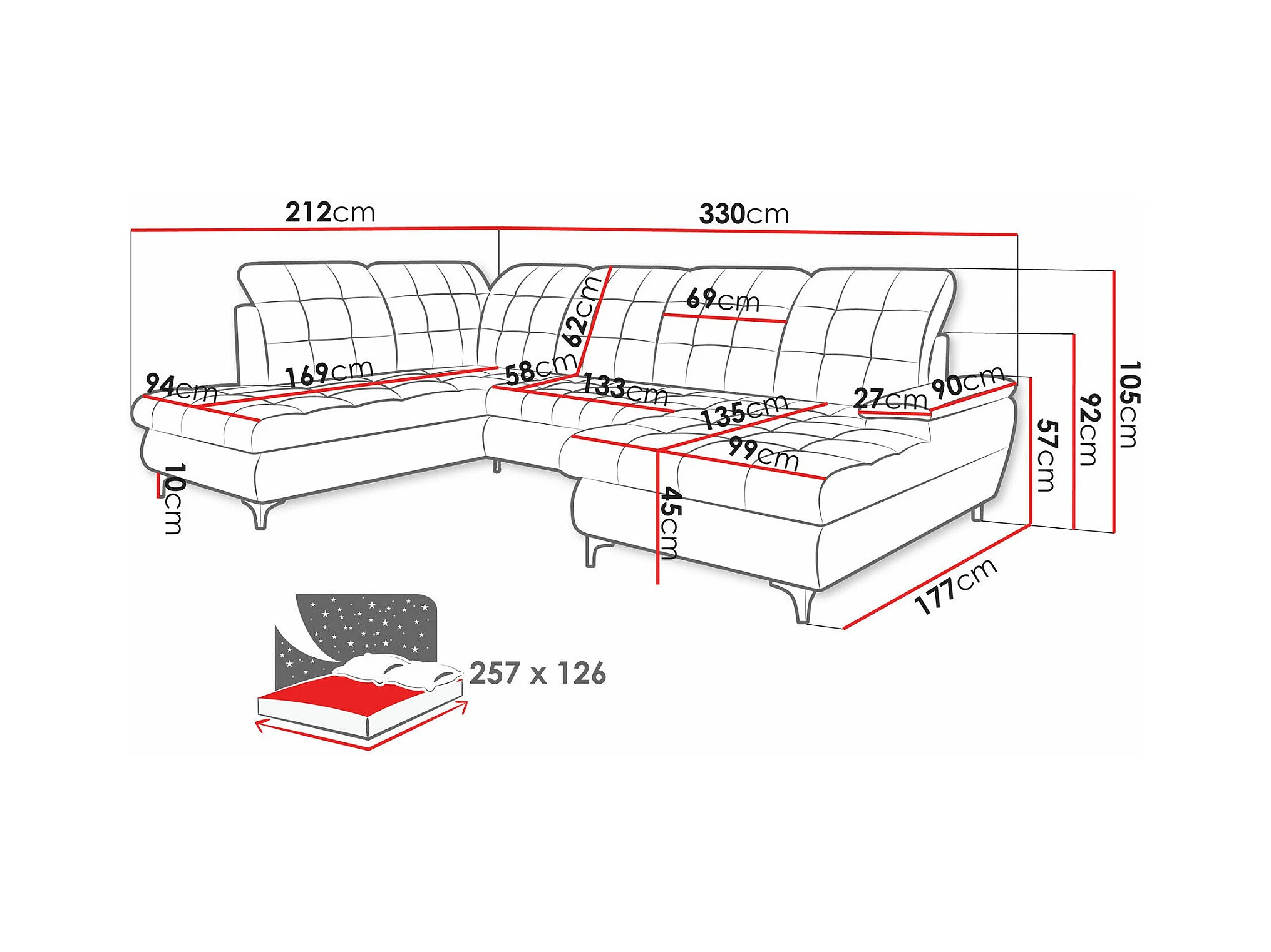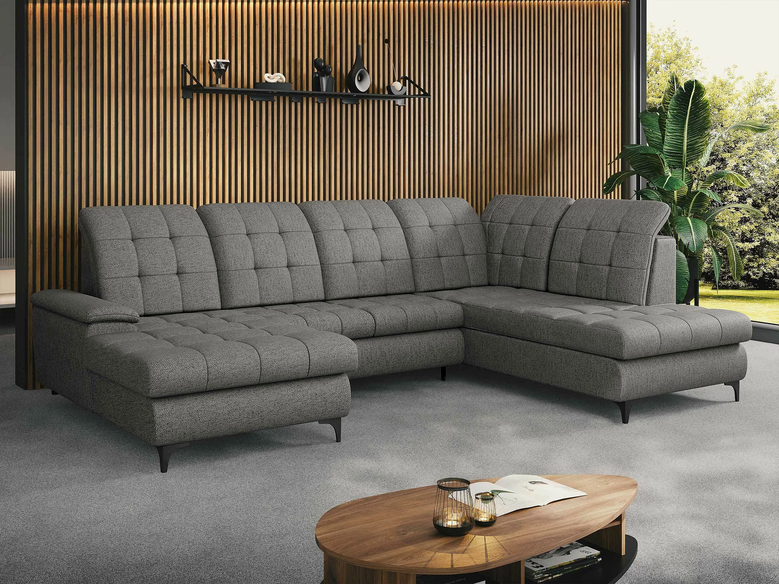 Canapé d'angle Sanford 100, Gris, Fonction de couchage, Boîte de literie, 330x212x105cm
