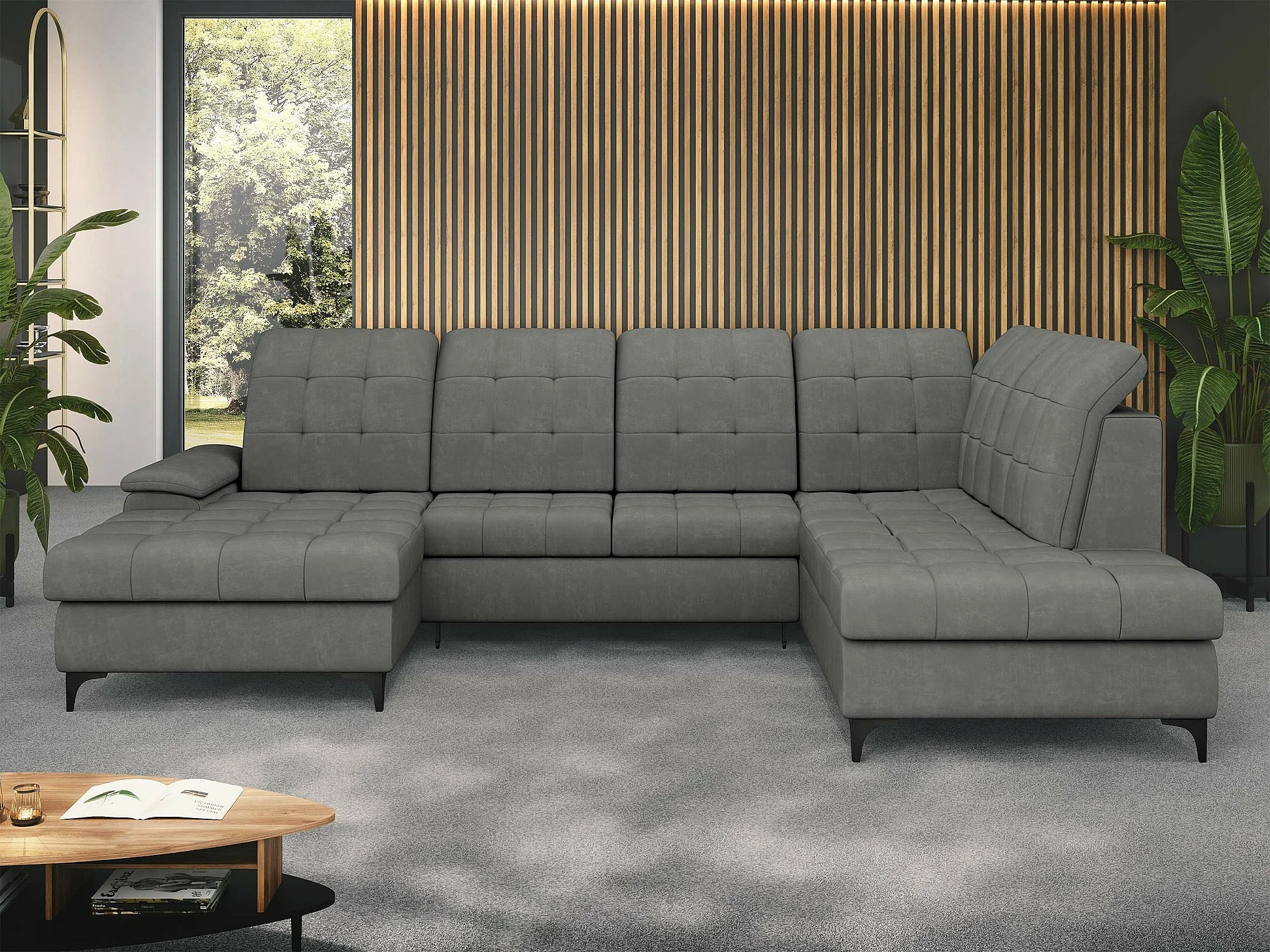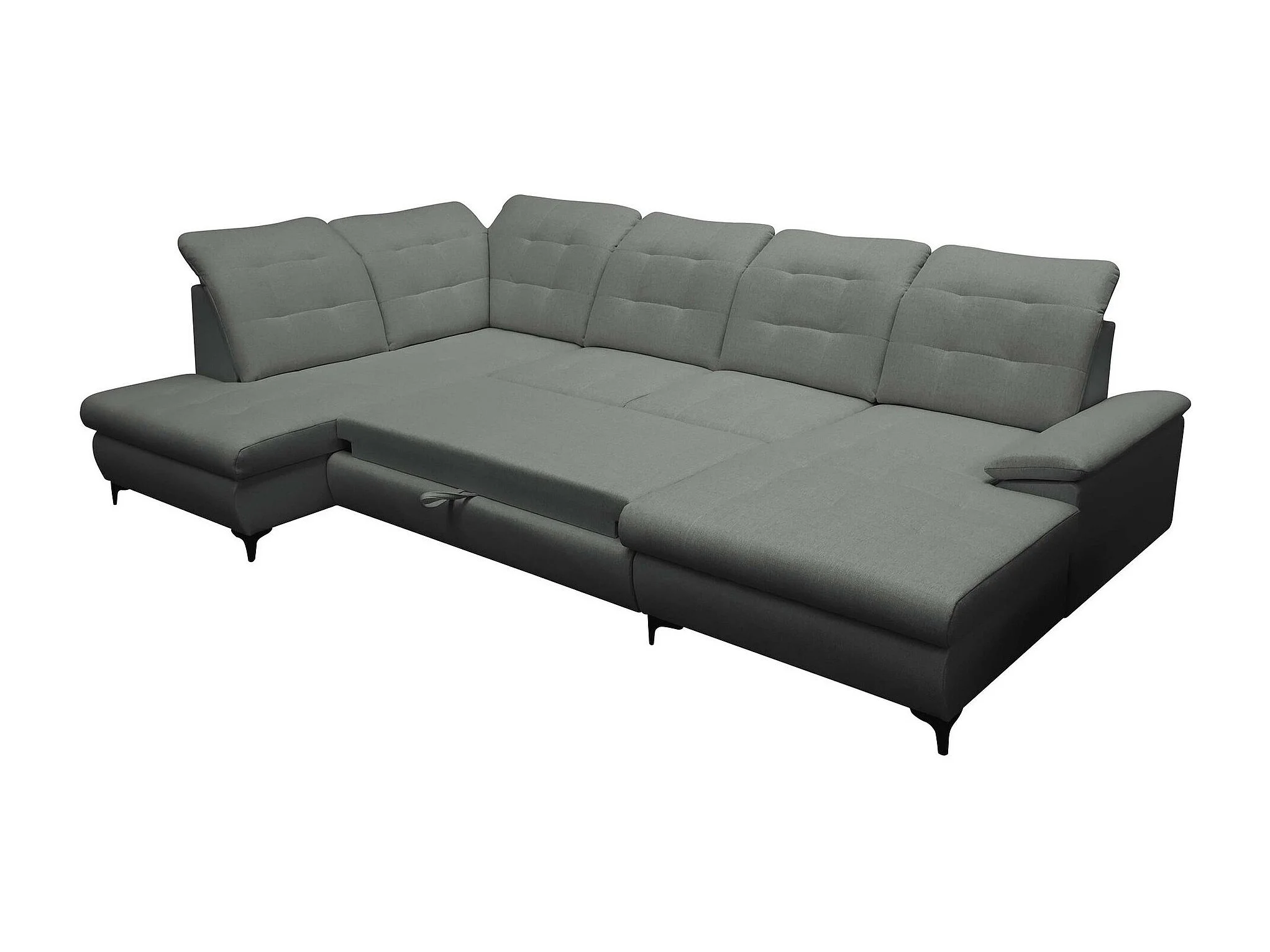 Canapé d'angle Sanford 100, Gris, Fonction de couchage, Boîte de literie, 330x212x105cm