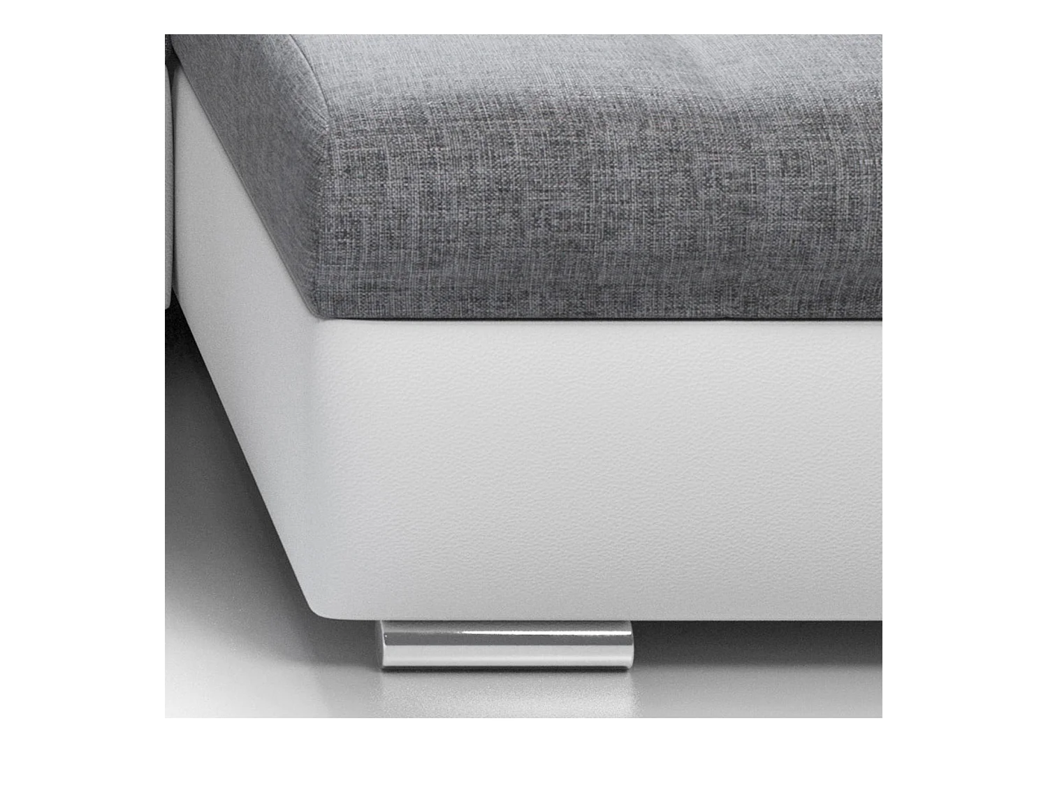 Canapé d'angle Simon 255 cm - convertible et réversible avec coffre - 3 Places - simili blanc / tissu gris + 2 poufs