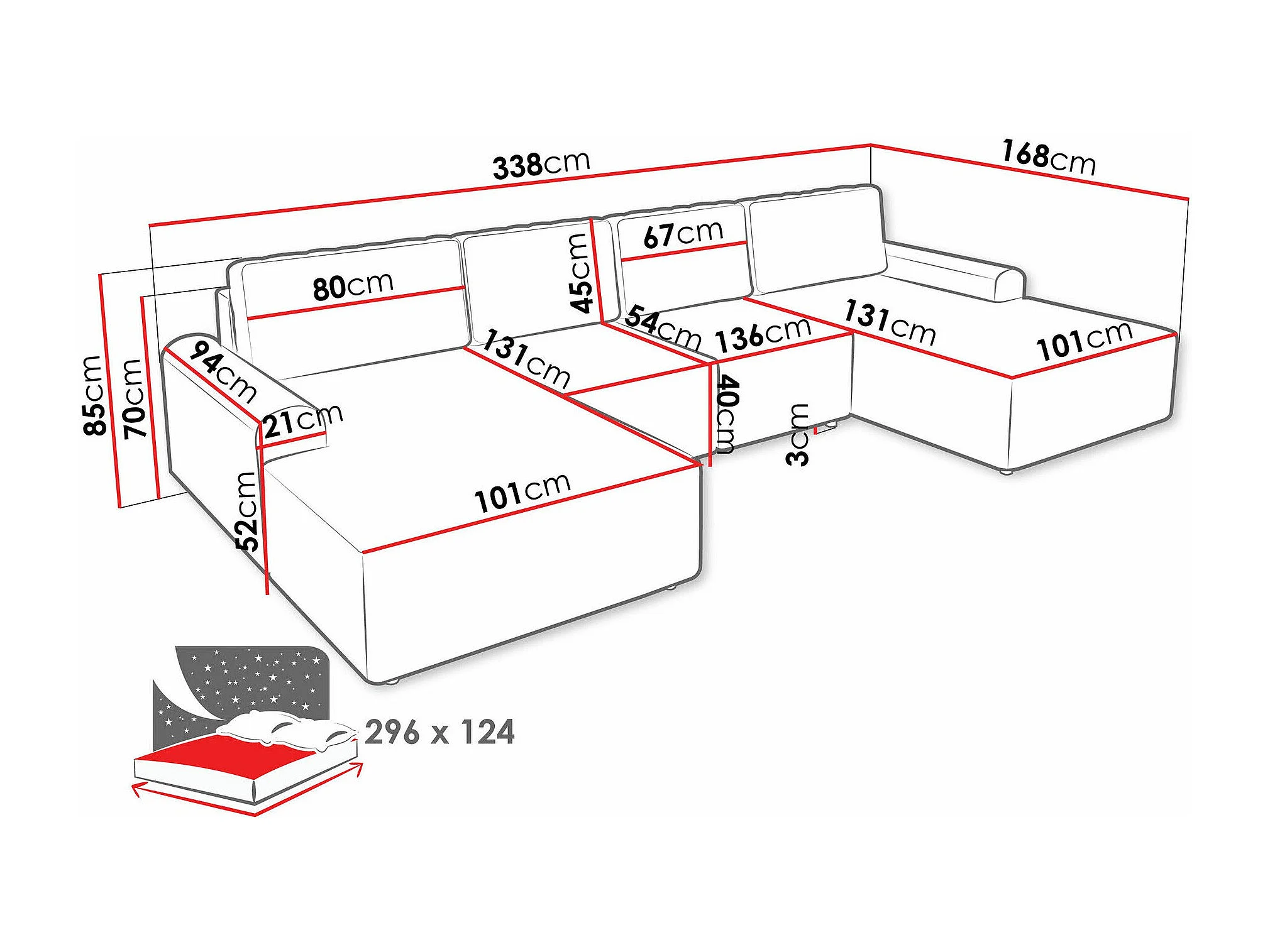 Canapé d'angle Stonecrest 106, Bleu, Fonction de couchage, Boîte de literie, 338x168x85cm