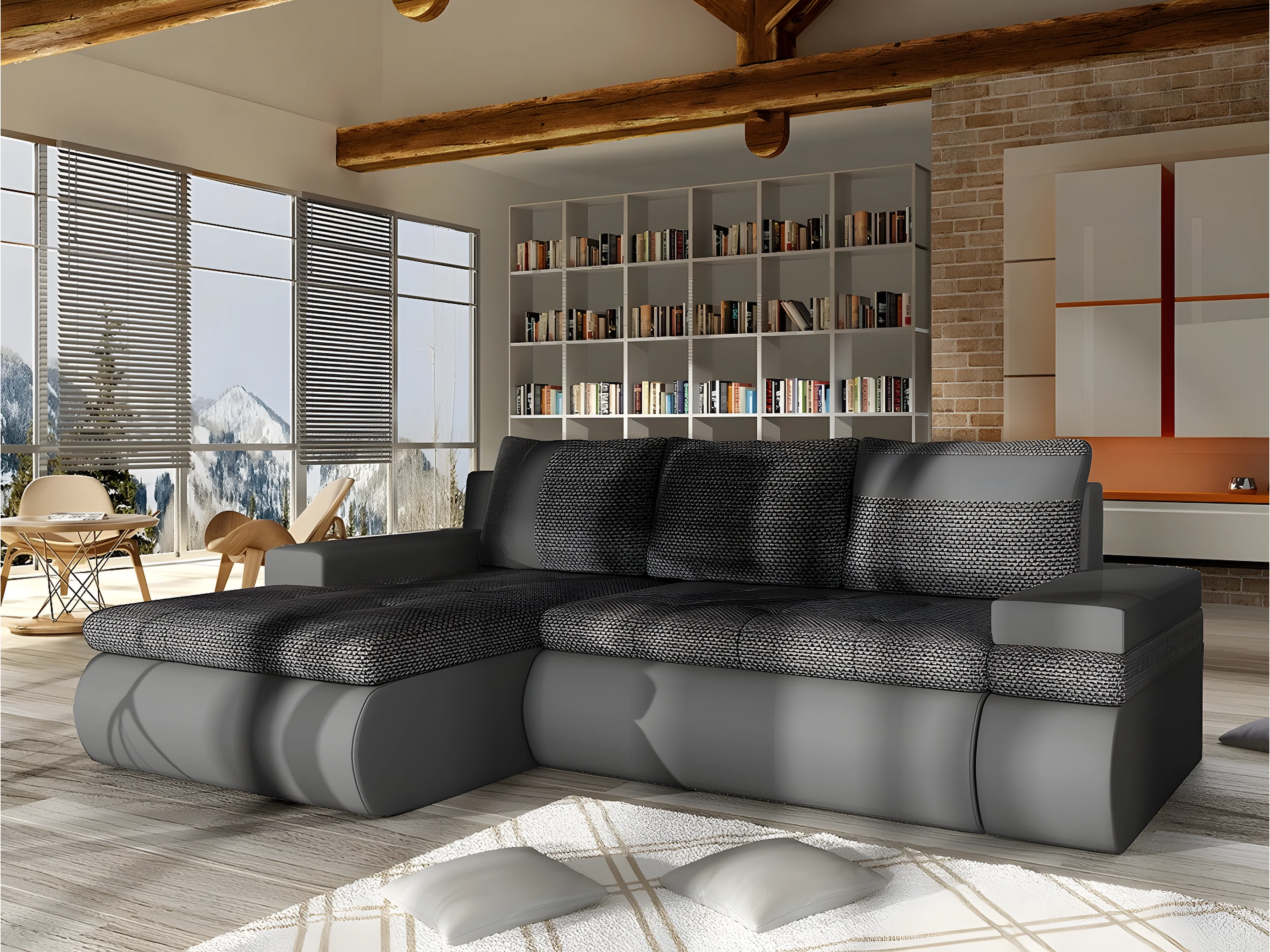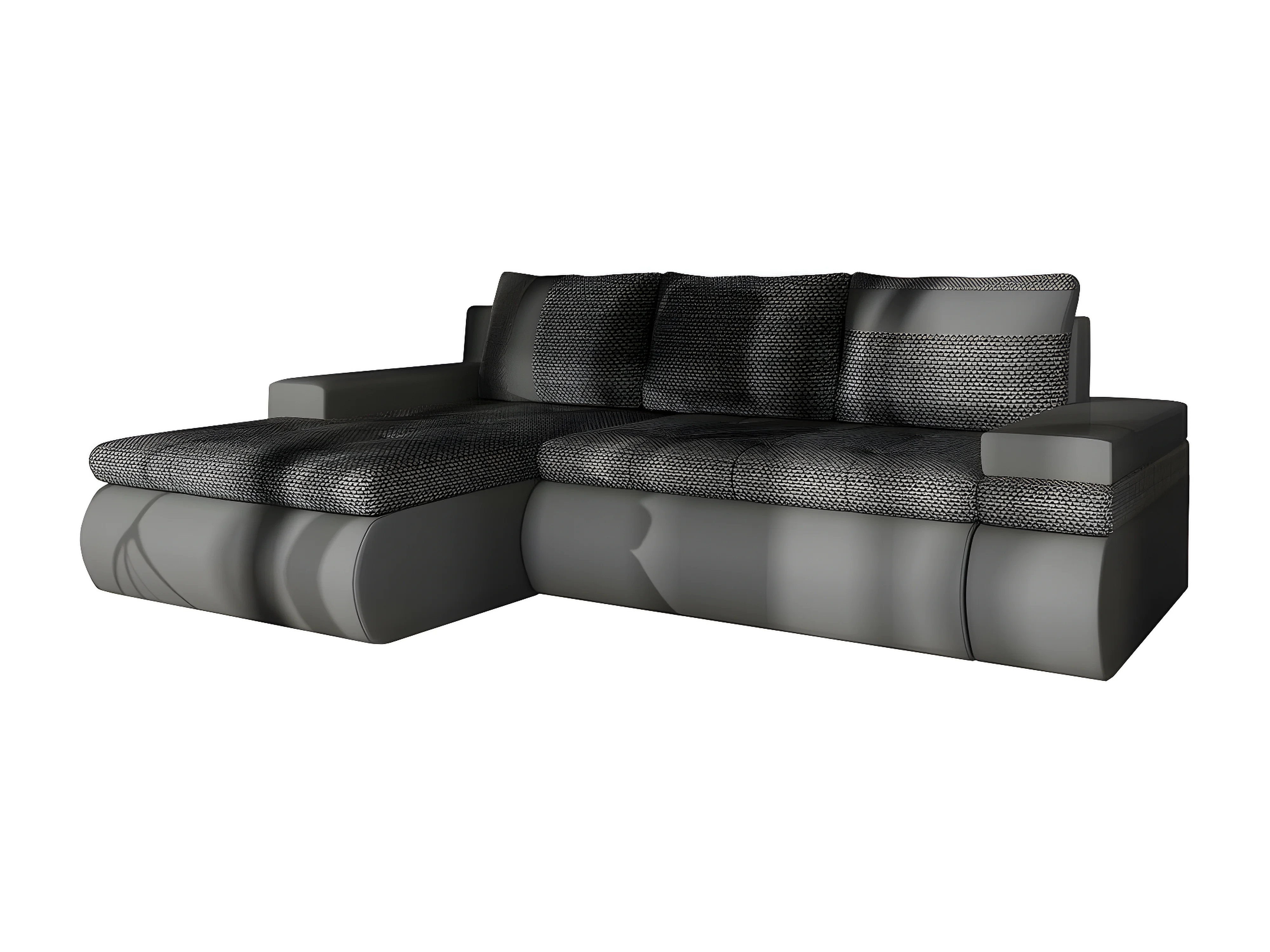Canapé d'angle Temple 101, Gris, Fonction de couchage, Boîte de literie, 245x182x90cm