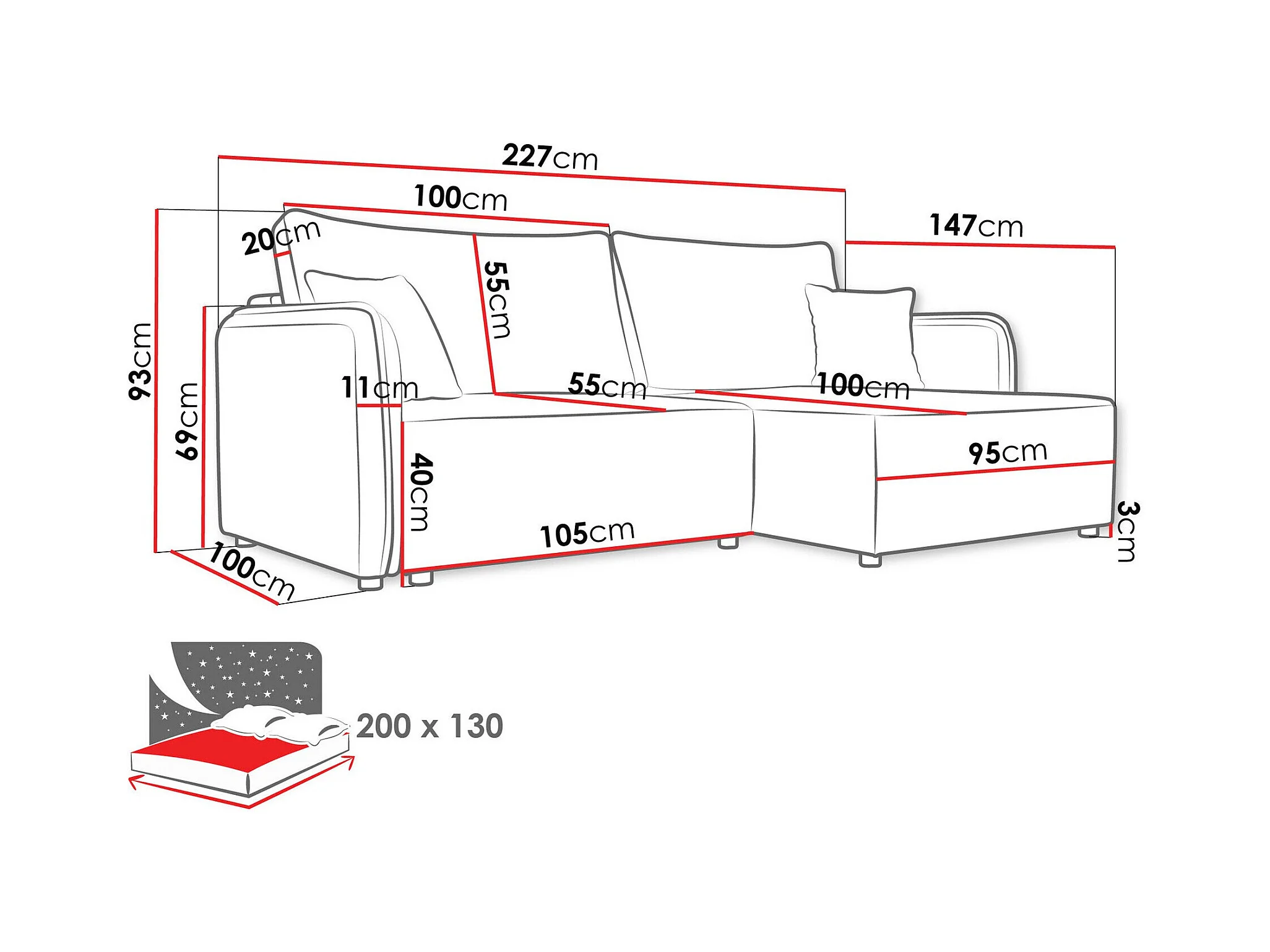 Canapé d'angle TrendyNest 111, Brun clair, Fonction de couchage, Boîte de literie, 227cm