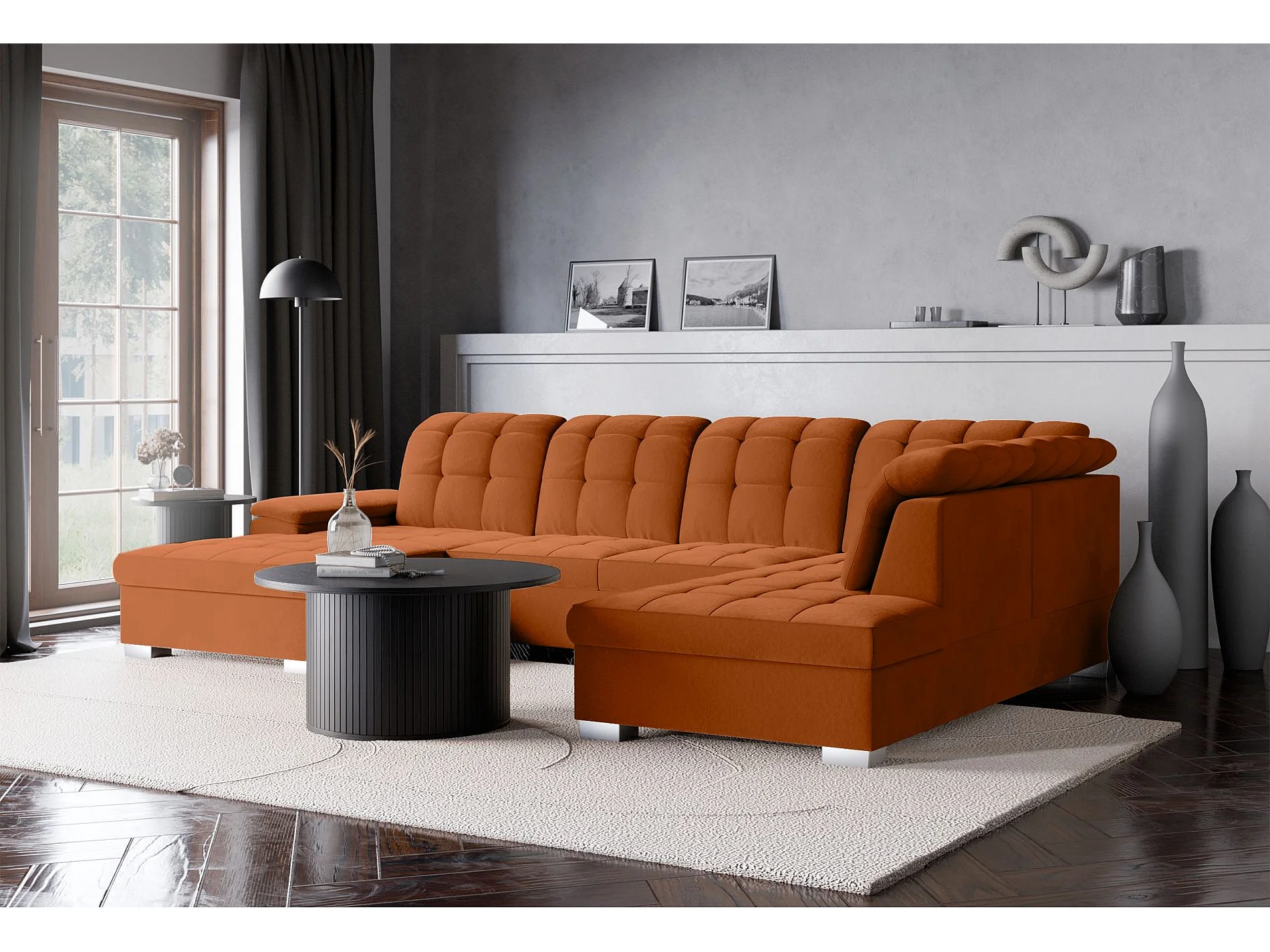 Canapé d'angle U convertible –couleur cuivre– côté gauche – JAMAAL