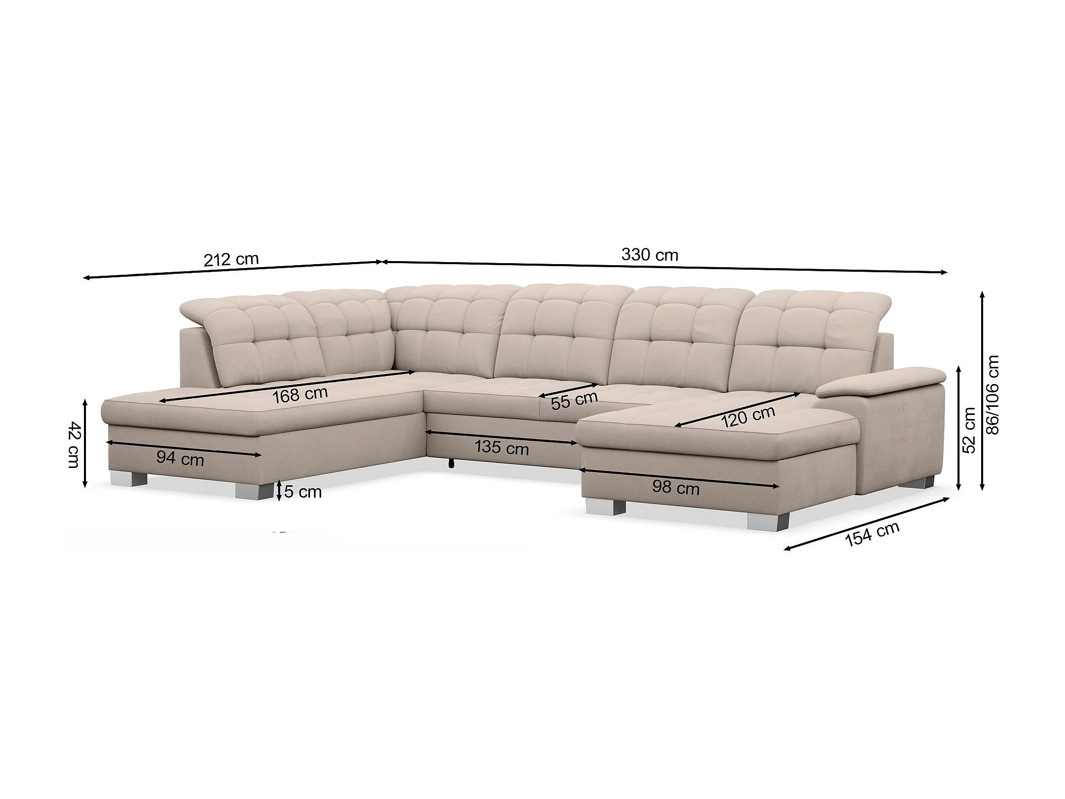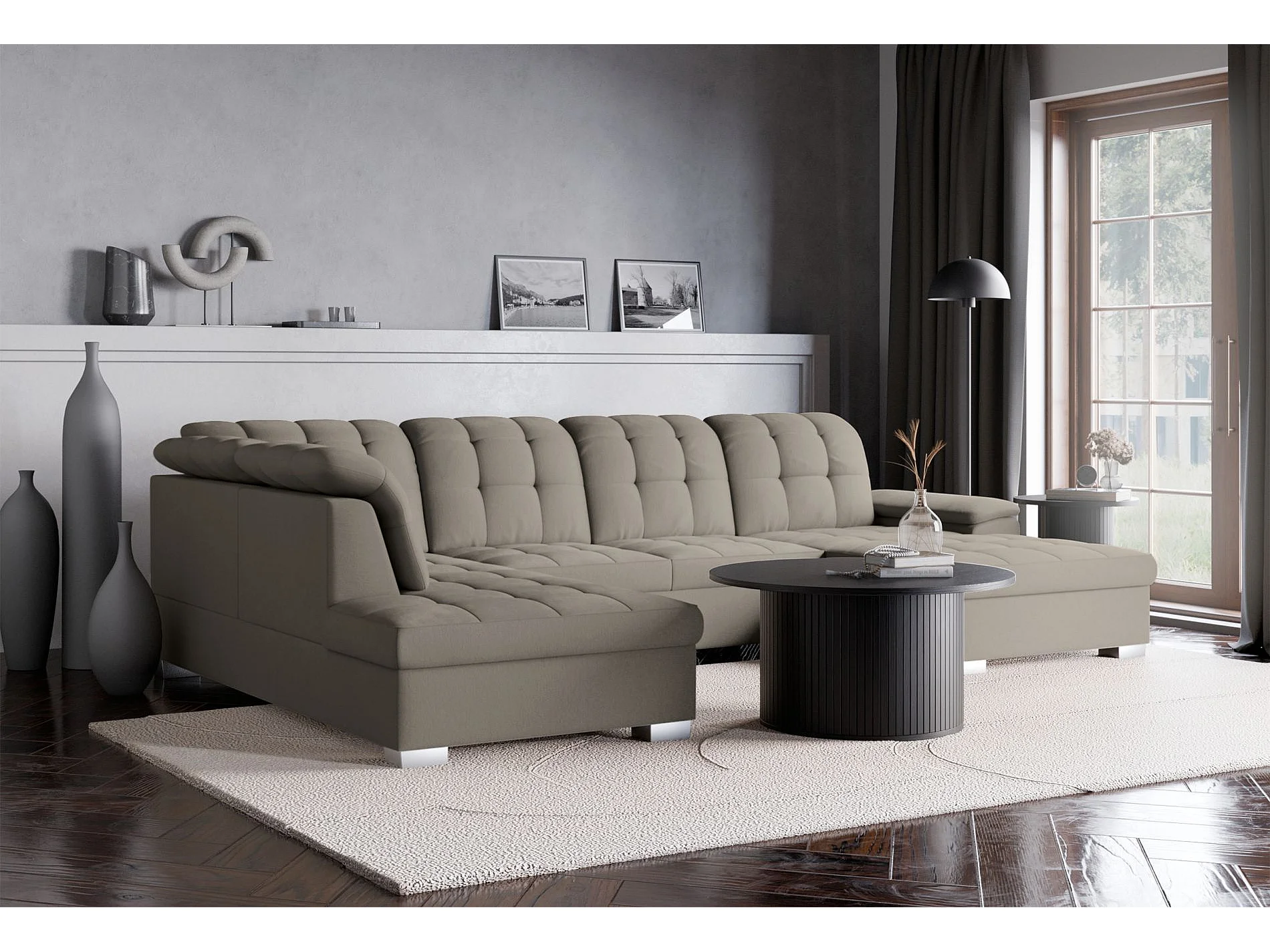 Canapé d'angle U convertible – grège tressé– côté droit – JAMAAL