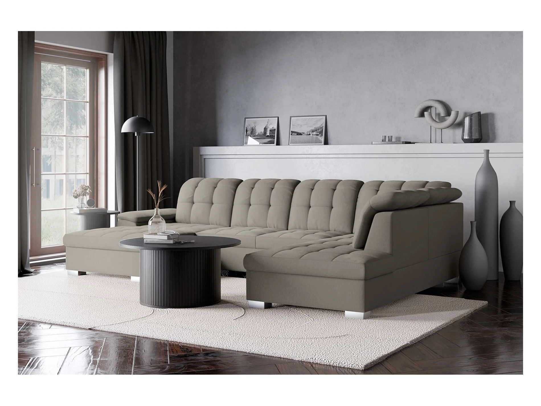 Canapé d'angle U convertible – grège tressé– côté gauche – JAMAAL