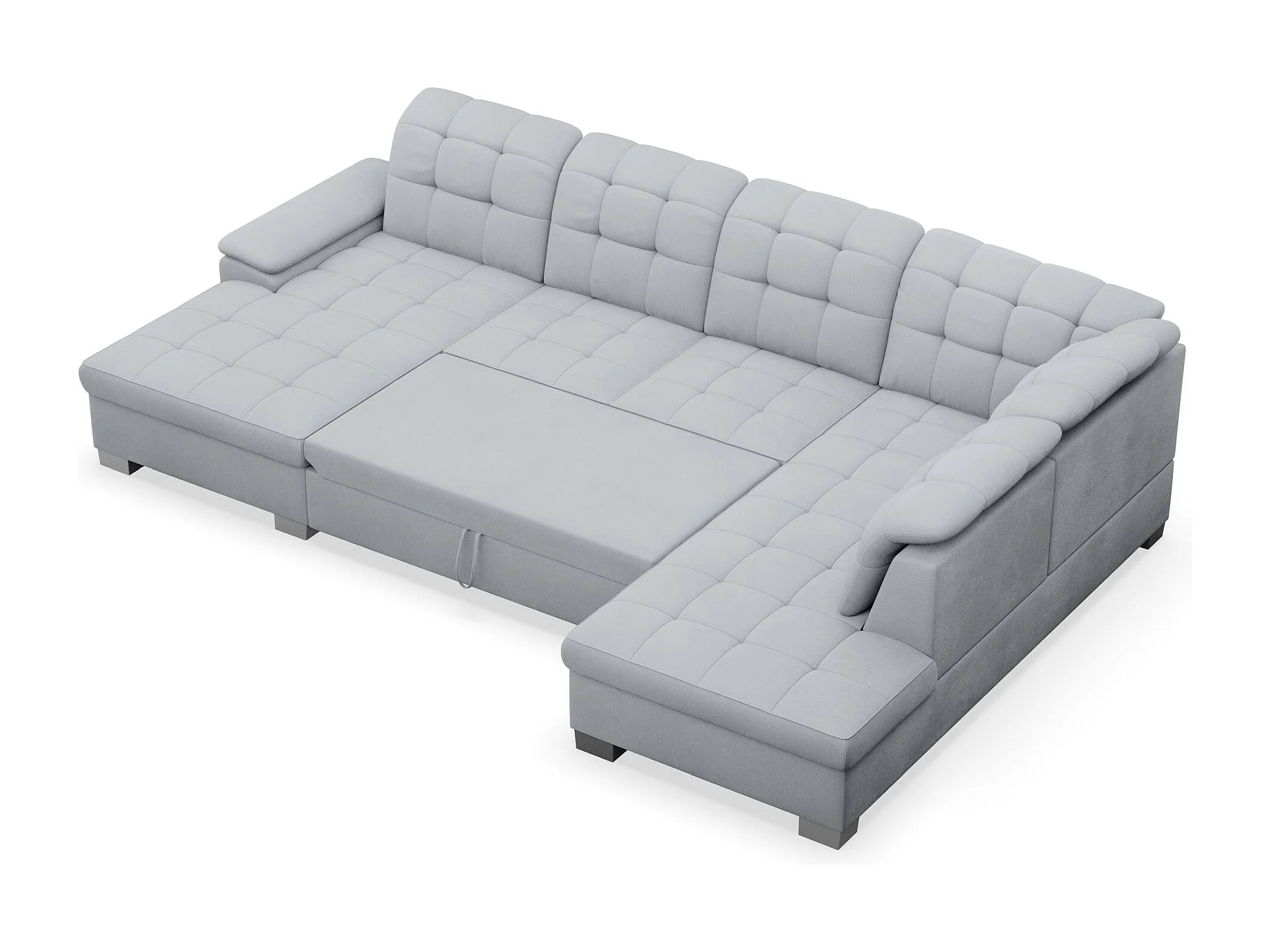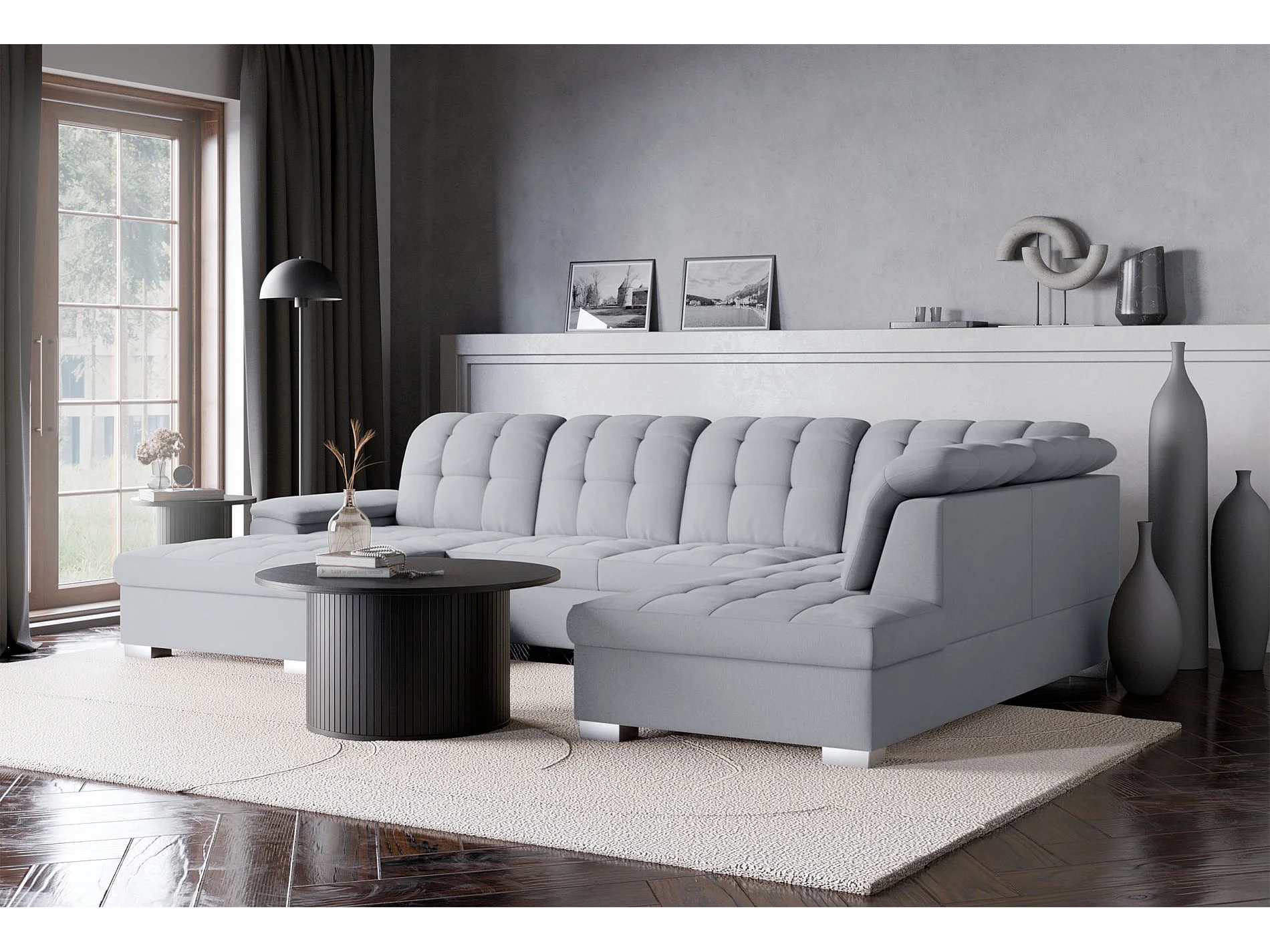 Canapé d'angle U convertible –gris clair tressé– côté gauche – JAMAAL