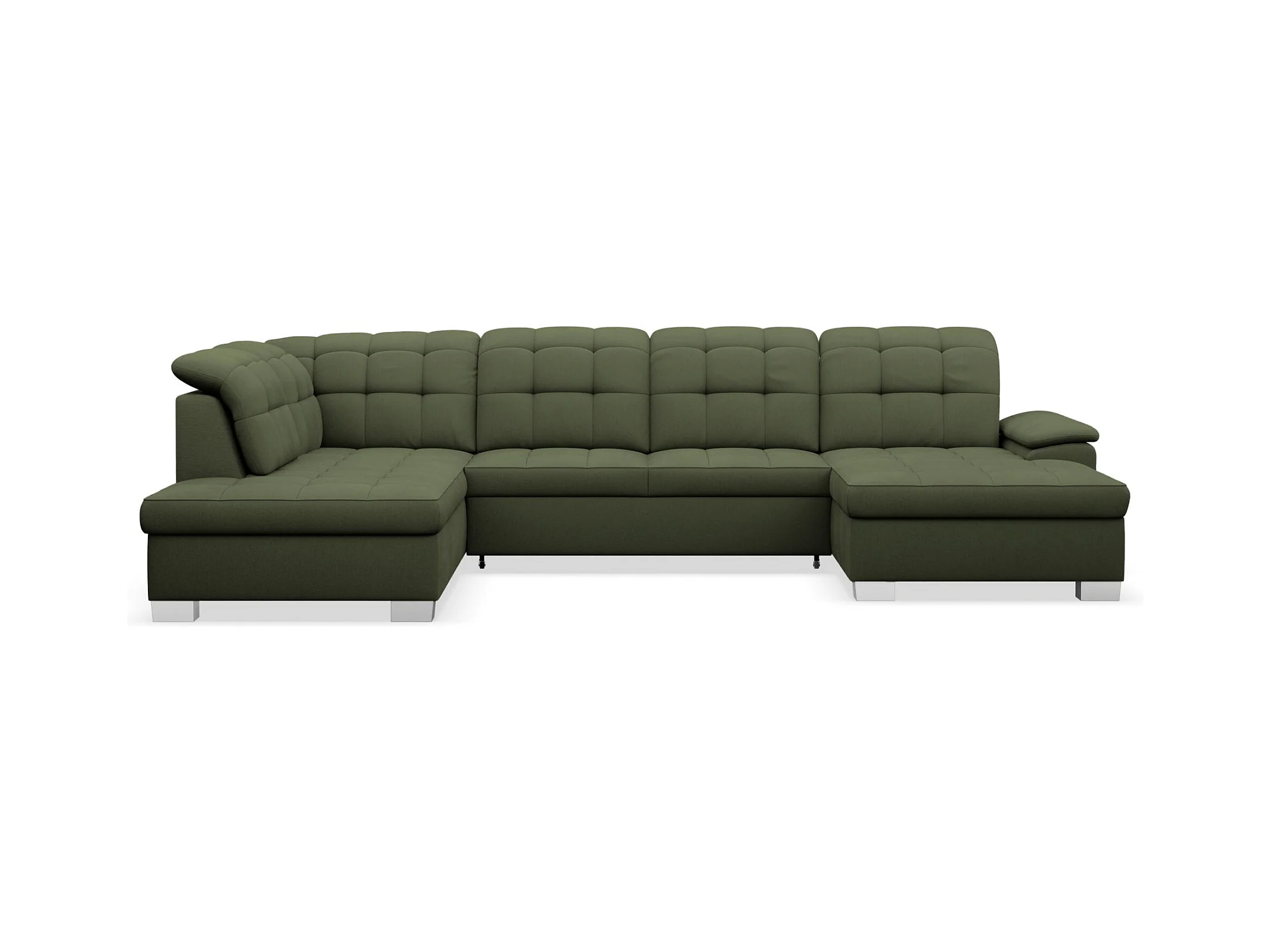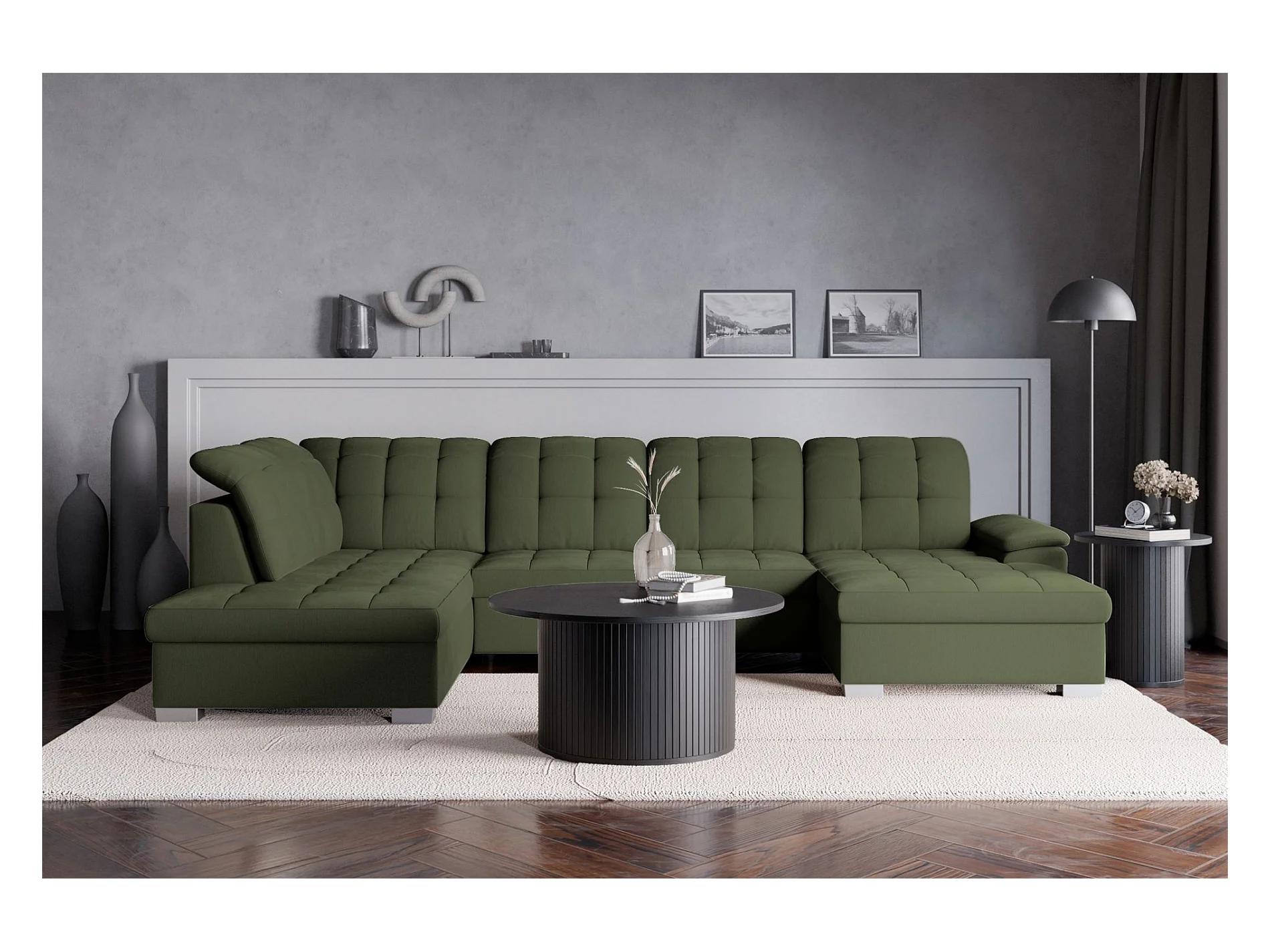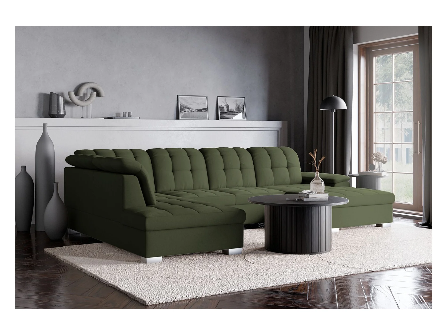 Canapé d'angle U convertible –vert olive tressé– côté droit – JAMAAL