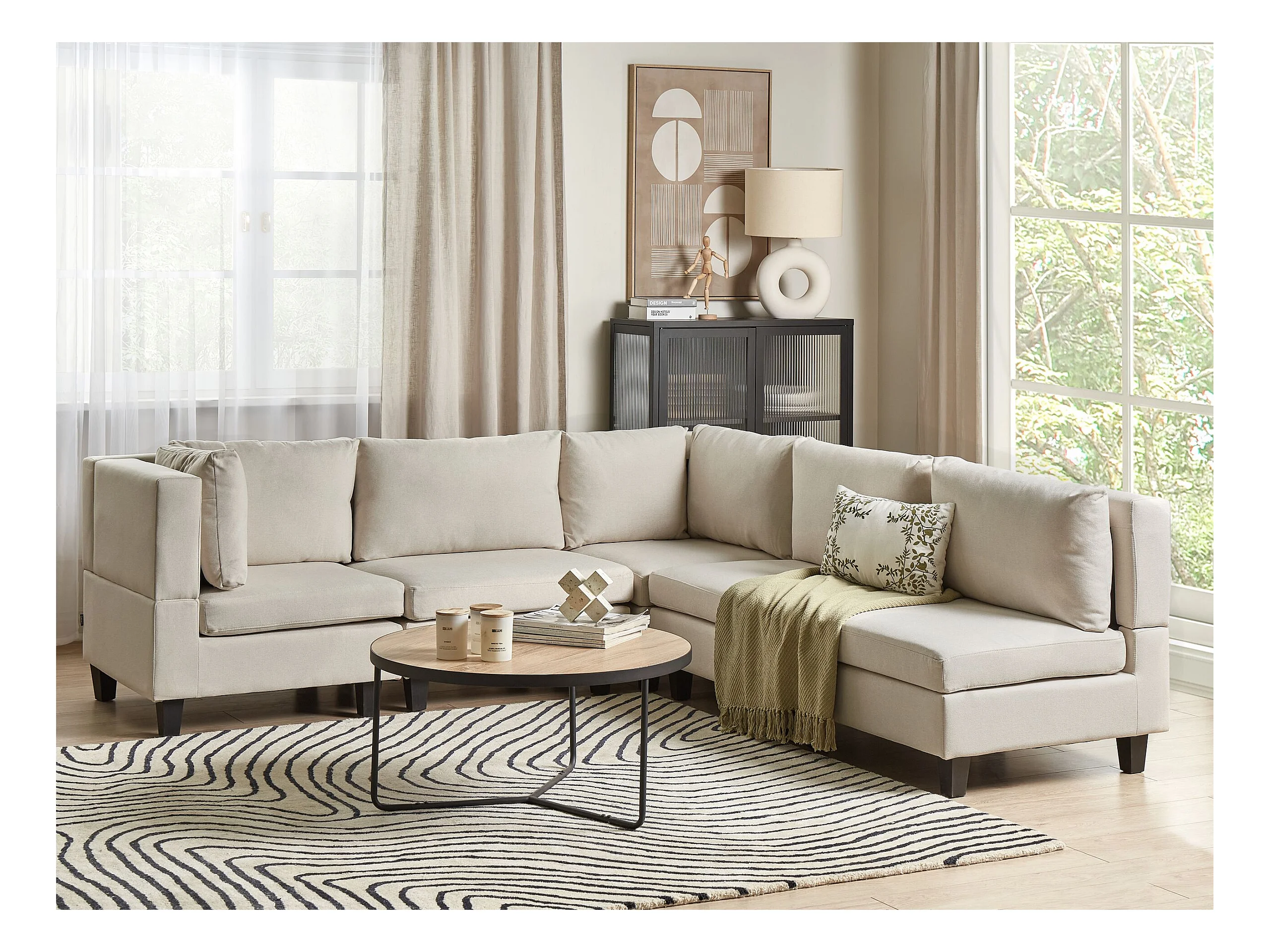 Canapé d'angle modulable 5 places UNSTAD Tissu Beige clair Côté droit