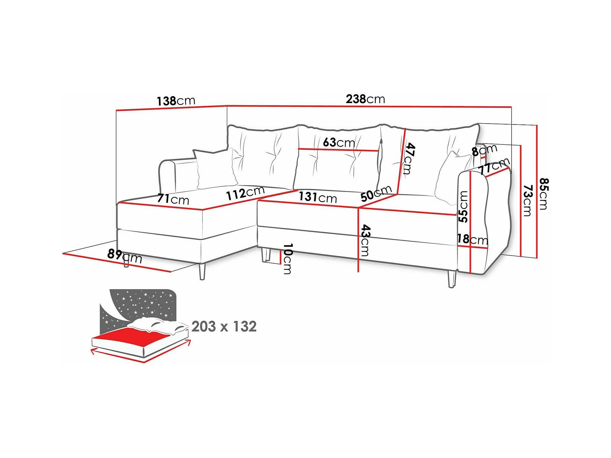 Canapé d'angle Veldala 102, Bleu, Fonction de couchage, Boîte de literie, 238x138x85cm