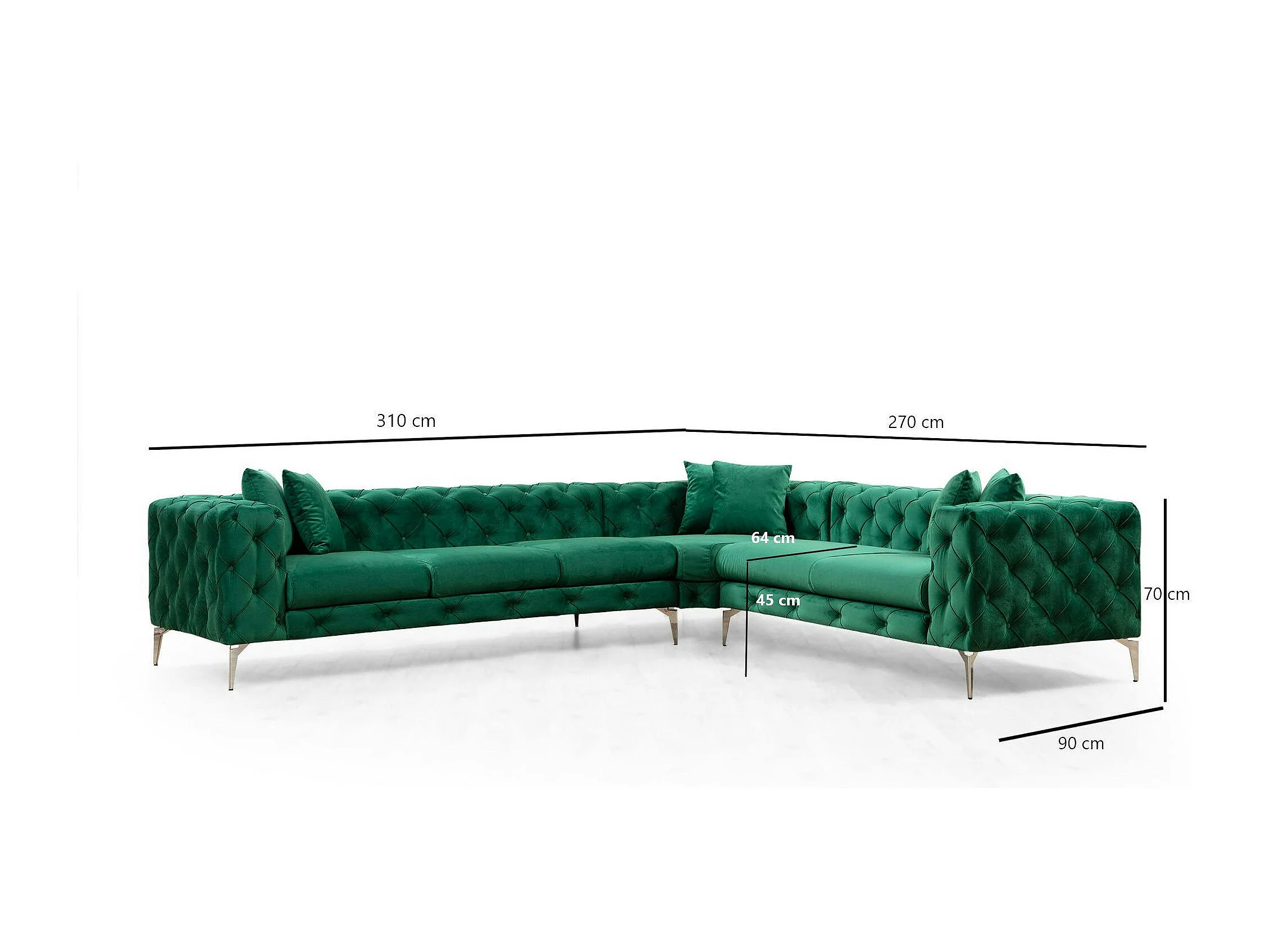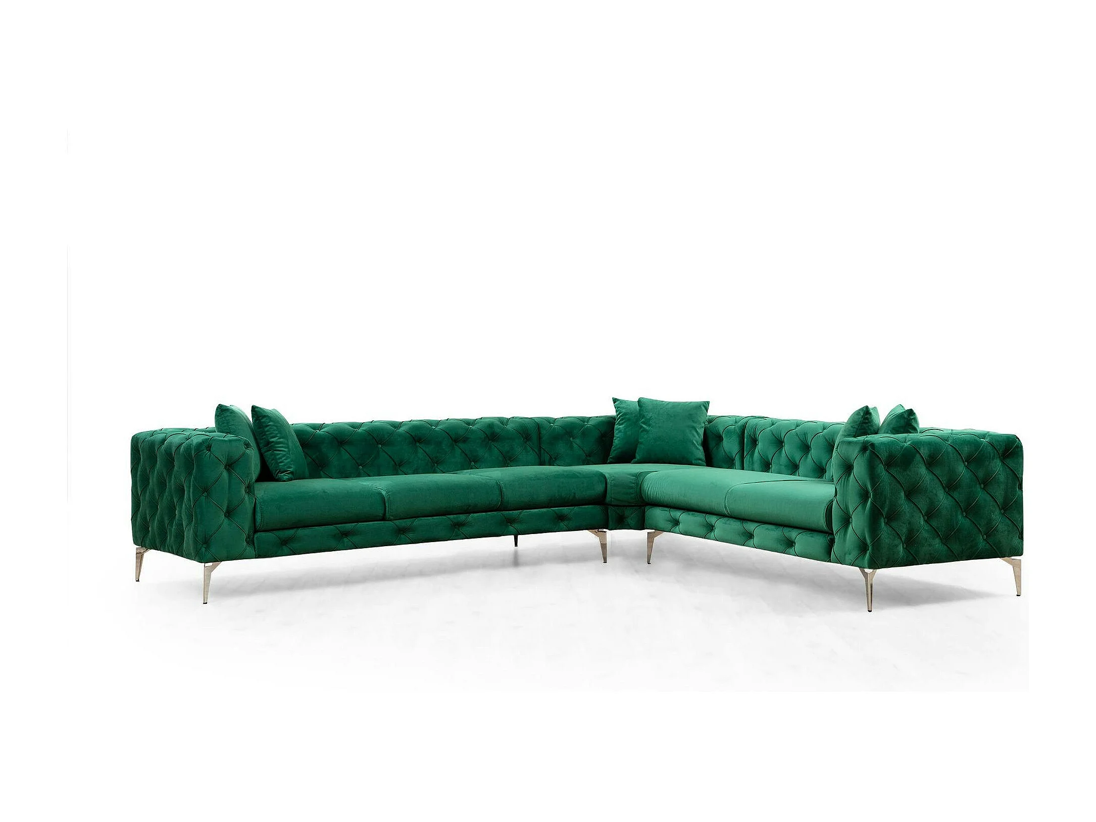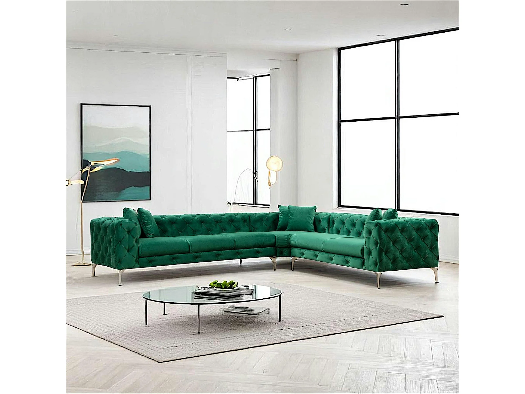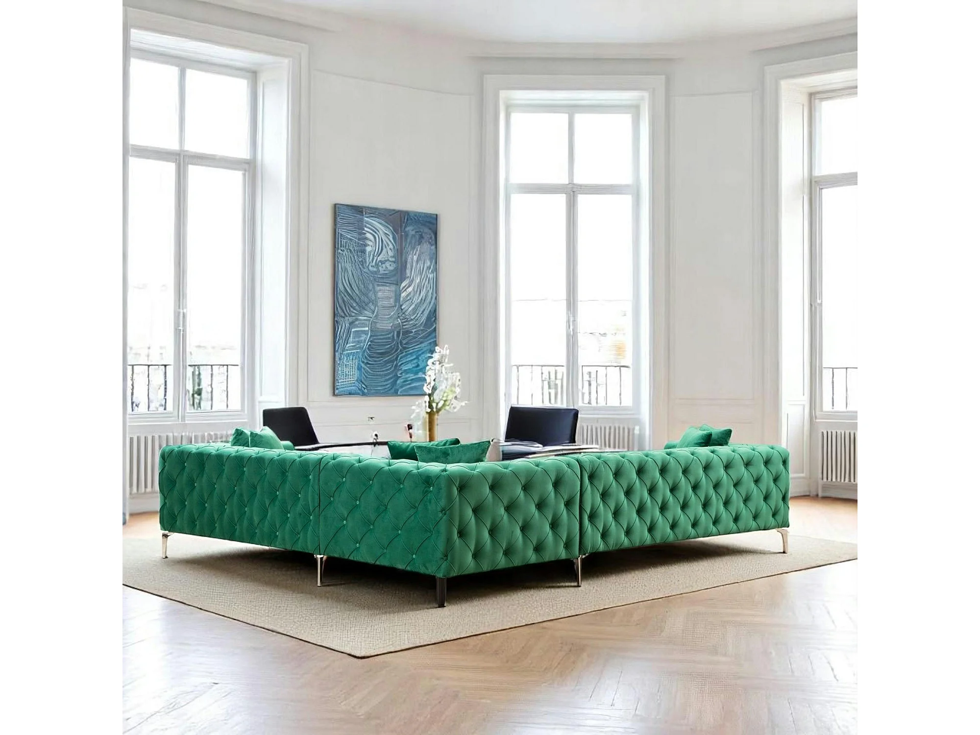 Canapé d'angle vert en velours capitonné - côté droit DOVER