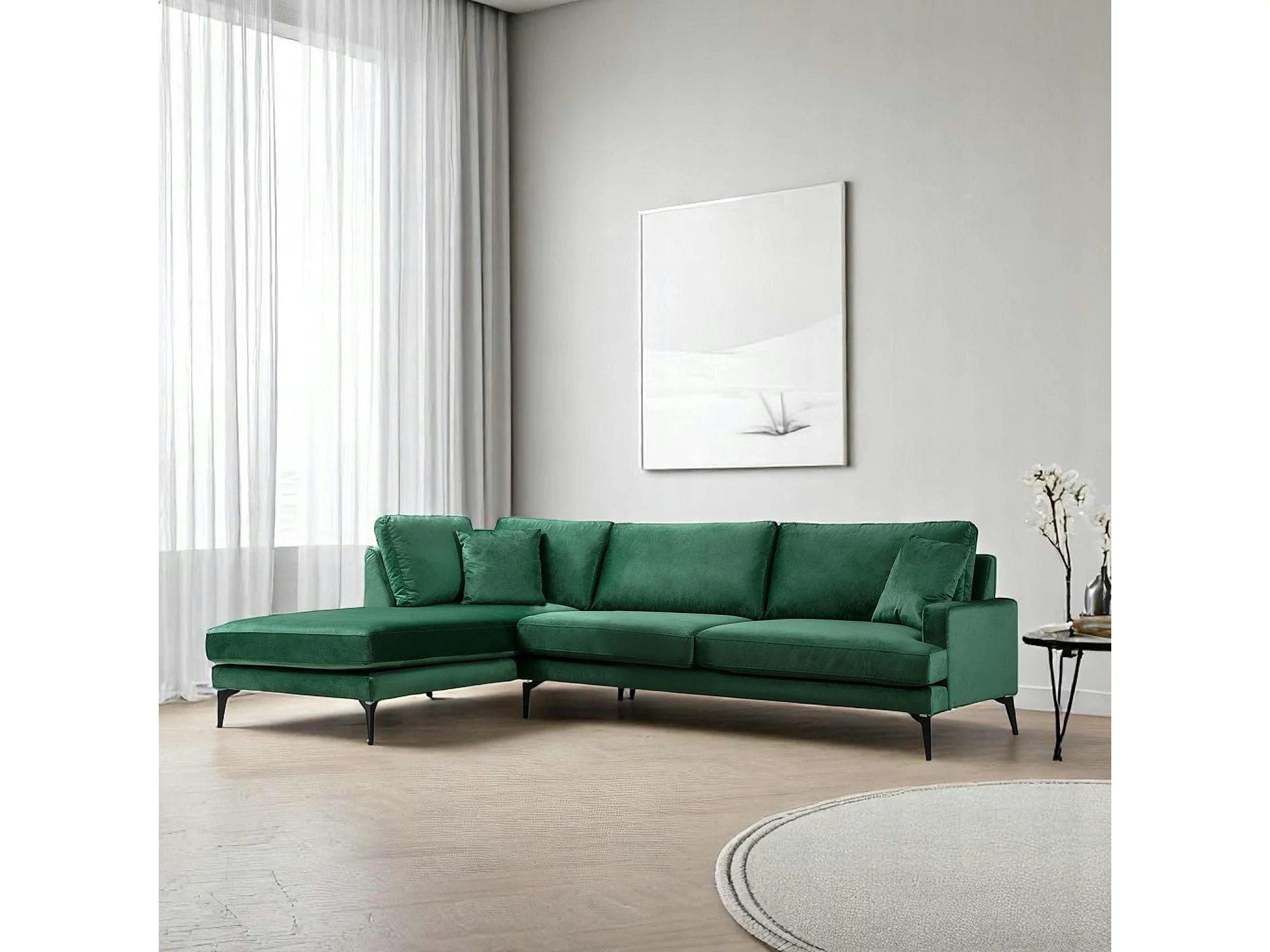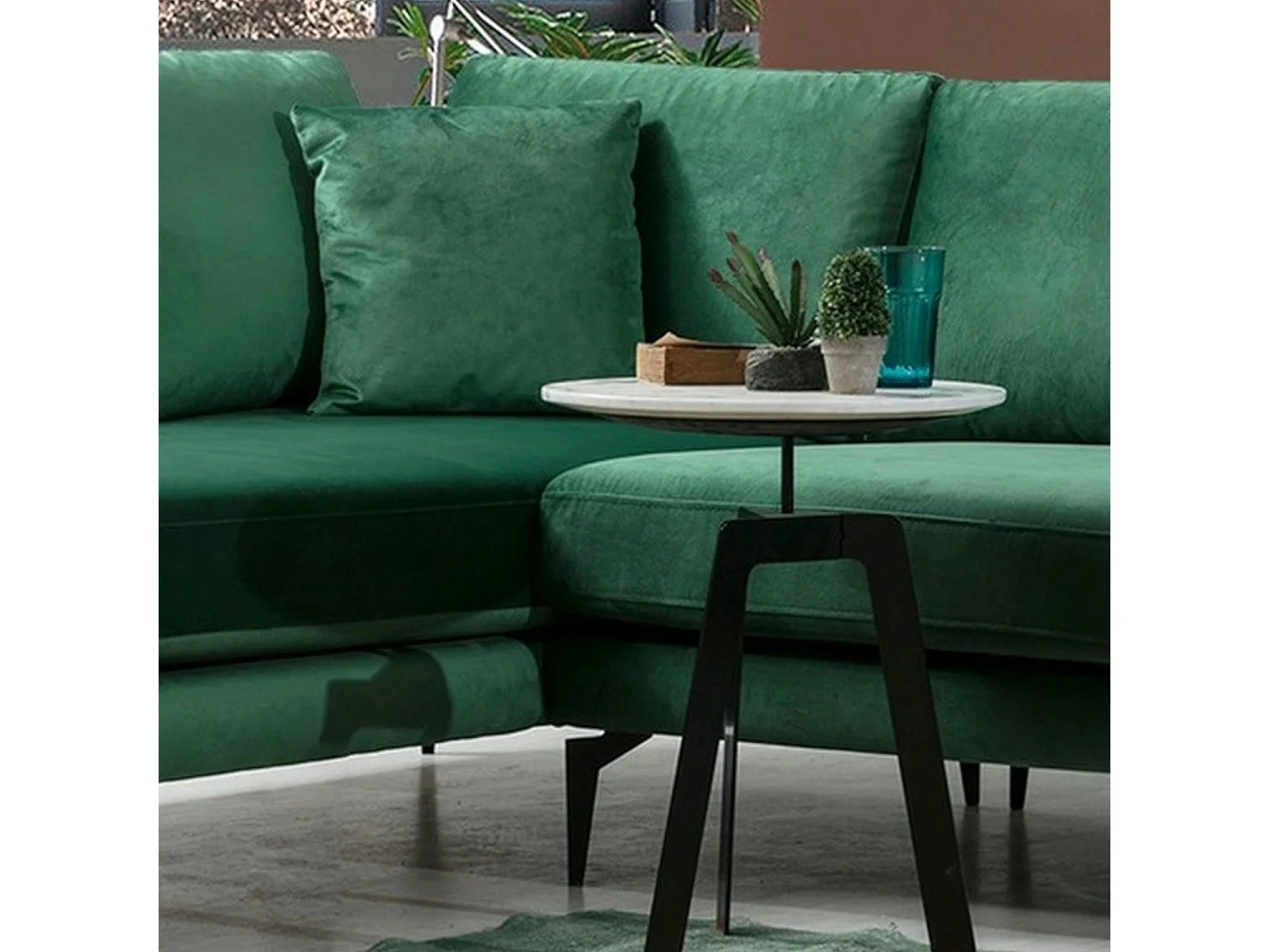 Canapé d'angle vert en velours - côté gauche SEATTLE