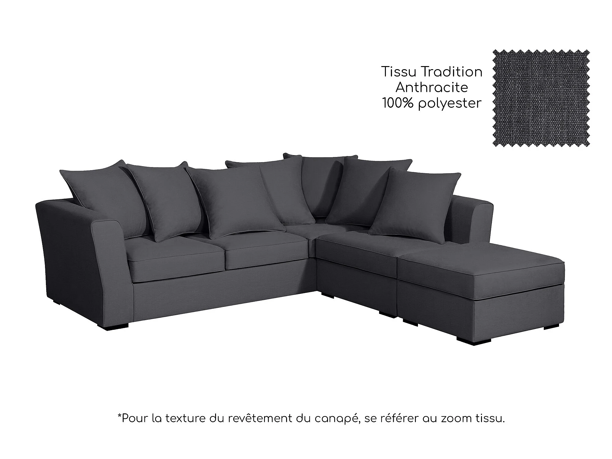 Canapé d'angle YSER fixe 240 x 236 cm Tradition Anthracite - 100% déhoussable - Fab. en France